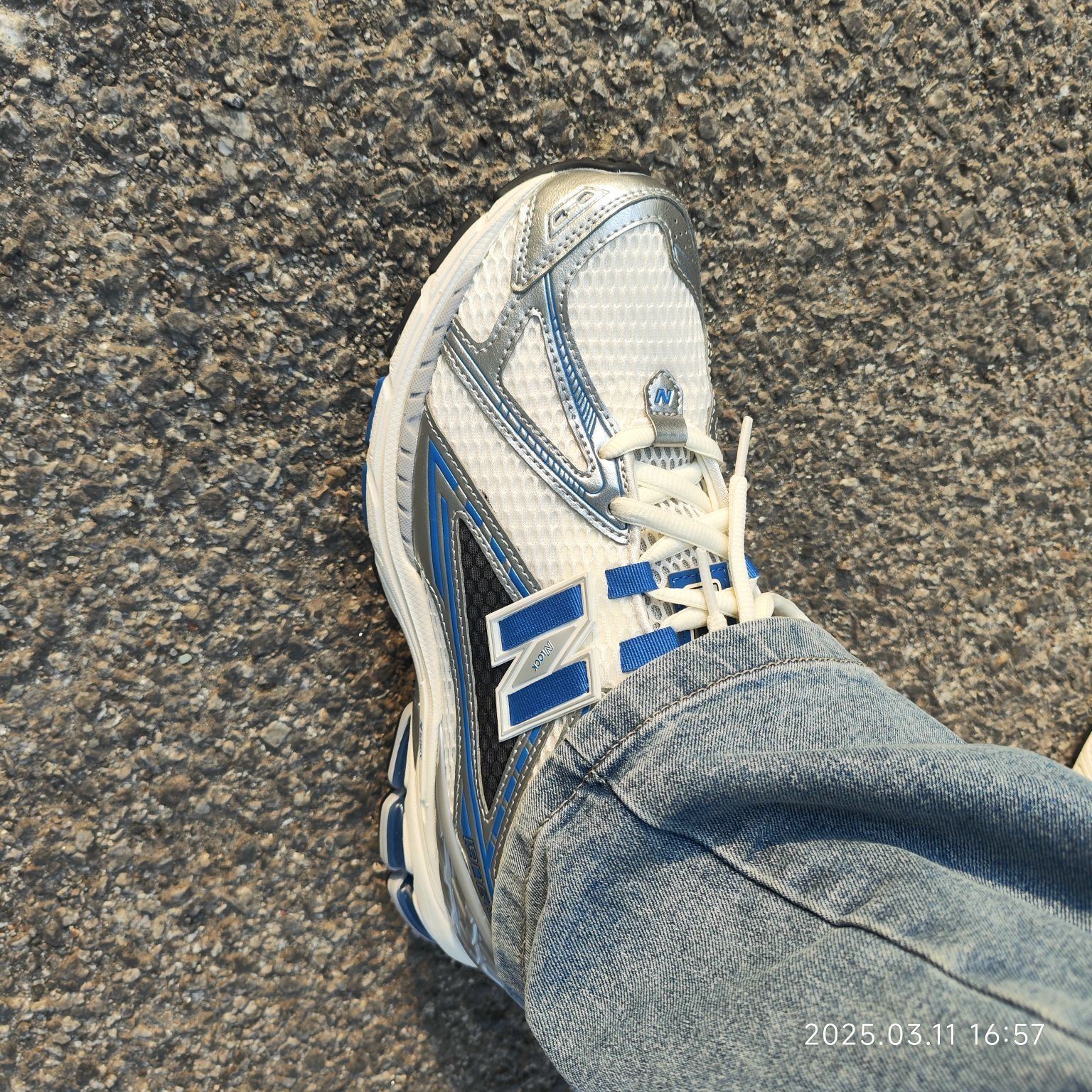 很高级的液态银蓝白配色,鞋子舒适度也属实不错。瘦脚正码,鞋子按尺码表选择就好