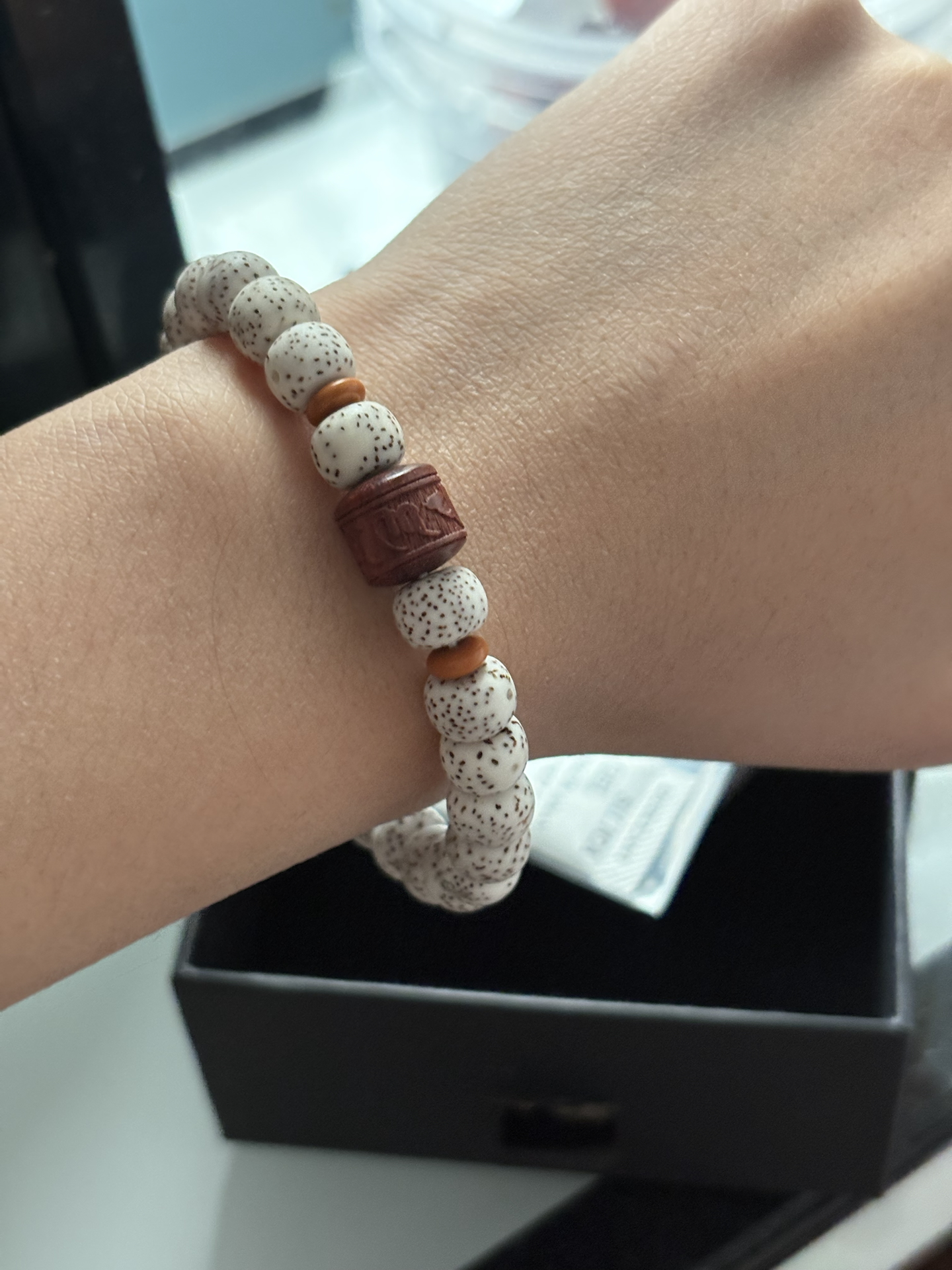 很米的一条新中式手串 没事盘一盘招财又进宝 很好搭配秋冬衣服也不突兀 快点下单吧~ 星月菩提颗颗油脂饱满 盘起来很顺滑 闲来无事就盘一盘 还可以修身养性 逐渐沉稳 还会越盘越亮 盘走烦恼 盘走忧伤