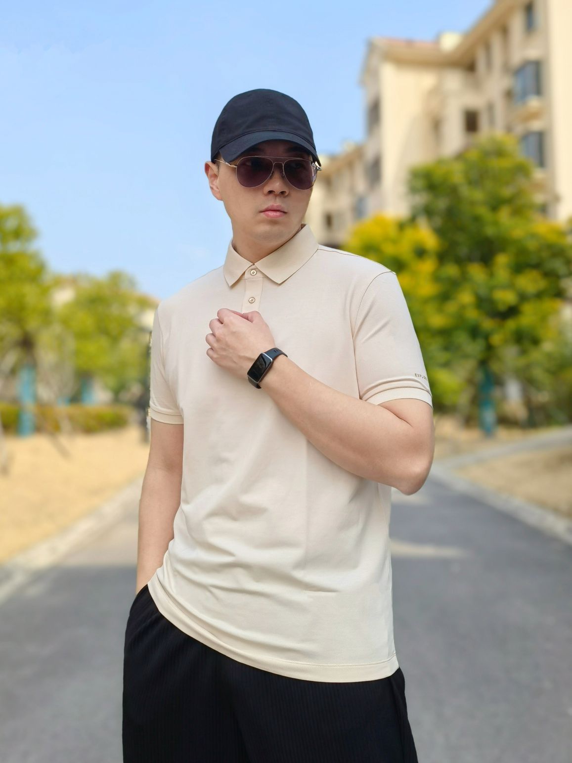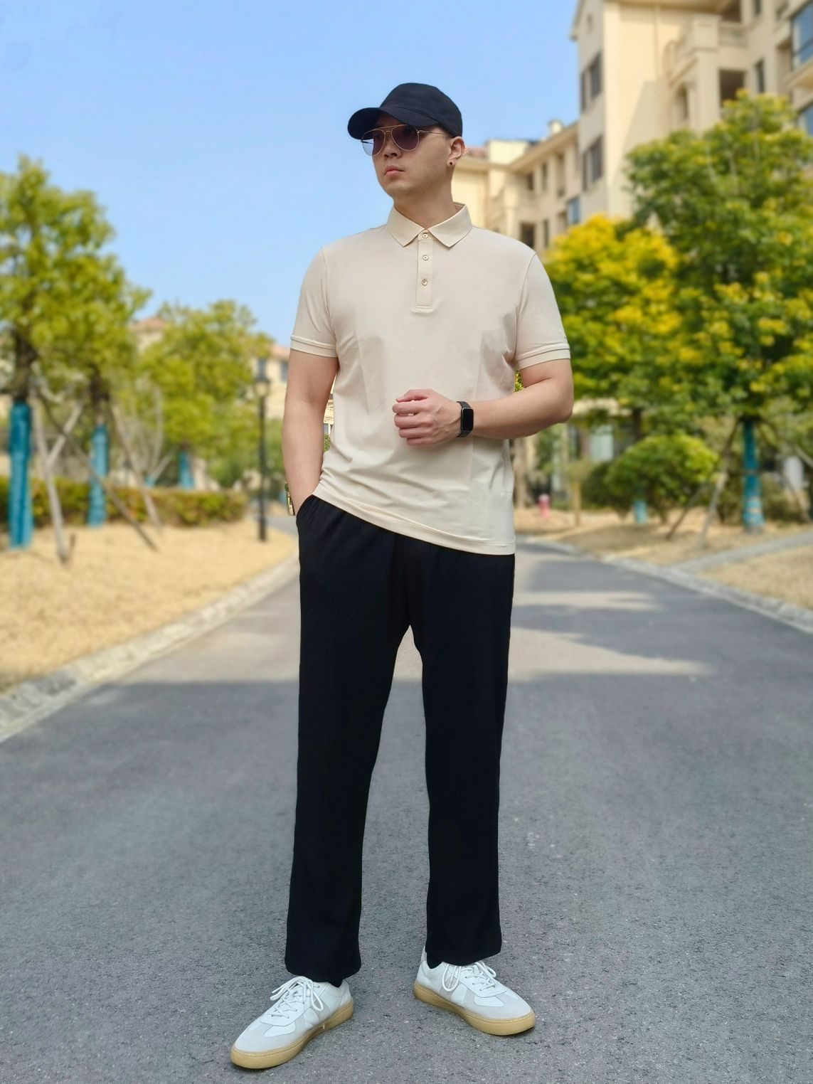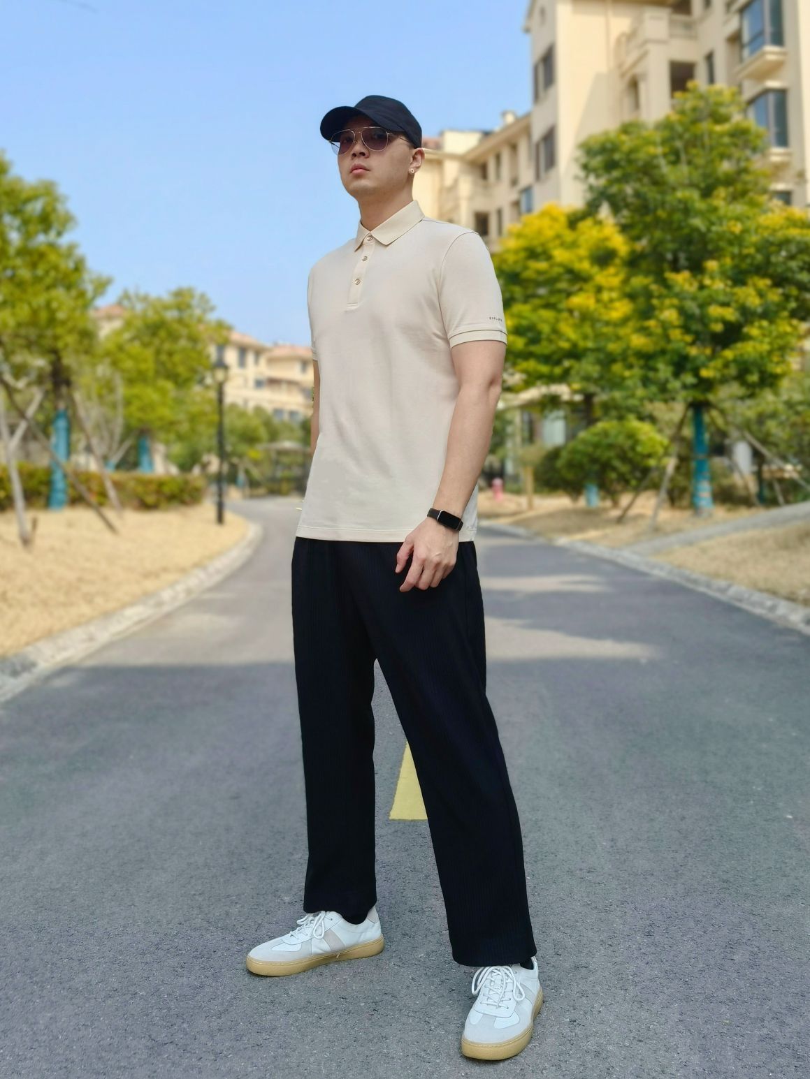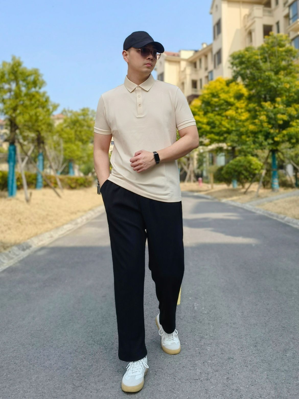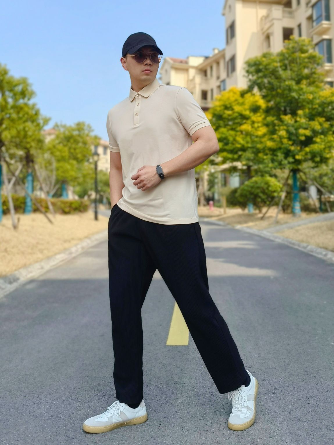 hello 大家好,这里是撒旦锅锅 💗179cm/80kg 🌞今日穿搭为商务休闲风格 搭配类型:POLO衫+休闲裤+德训鞋 上身搭配布先生短袖polo衫,搭配下身黑色休闲裤,鞋子选择一双德训鞋,整体搭配商务休闲风满满💞