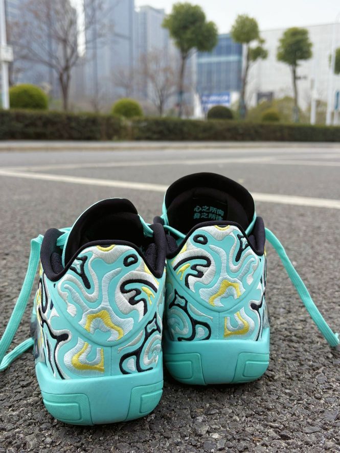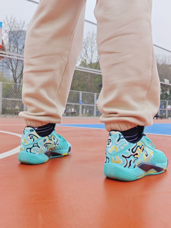 配色延续翡翠绿,外底升级为XDR耐磨橡胶,适配外场实战。整体最亮眼的就是后跟的刺绣部分,实实在在的感受到了工艺质感,细节部分也相当到位。