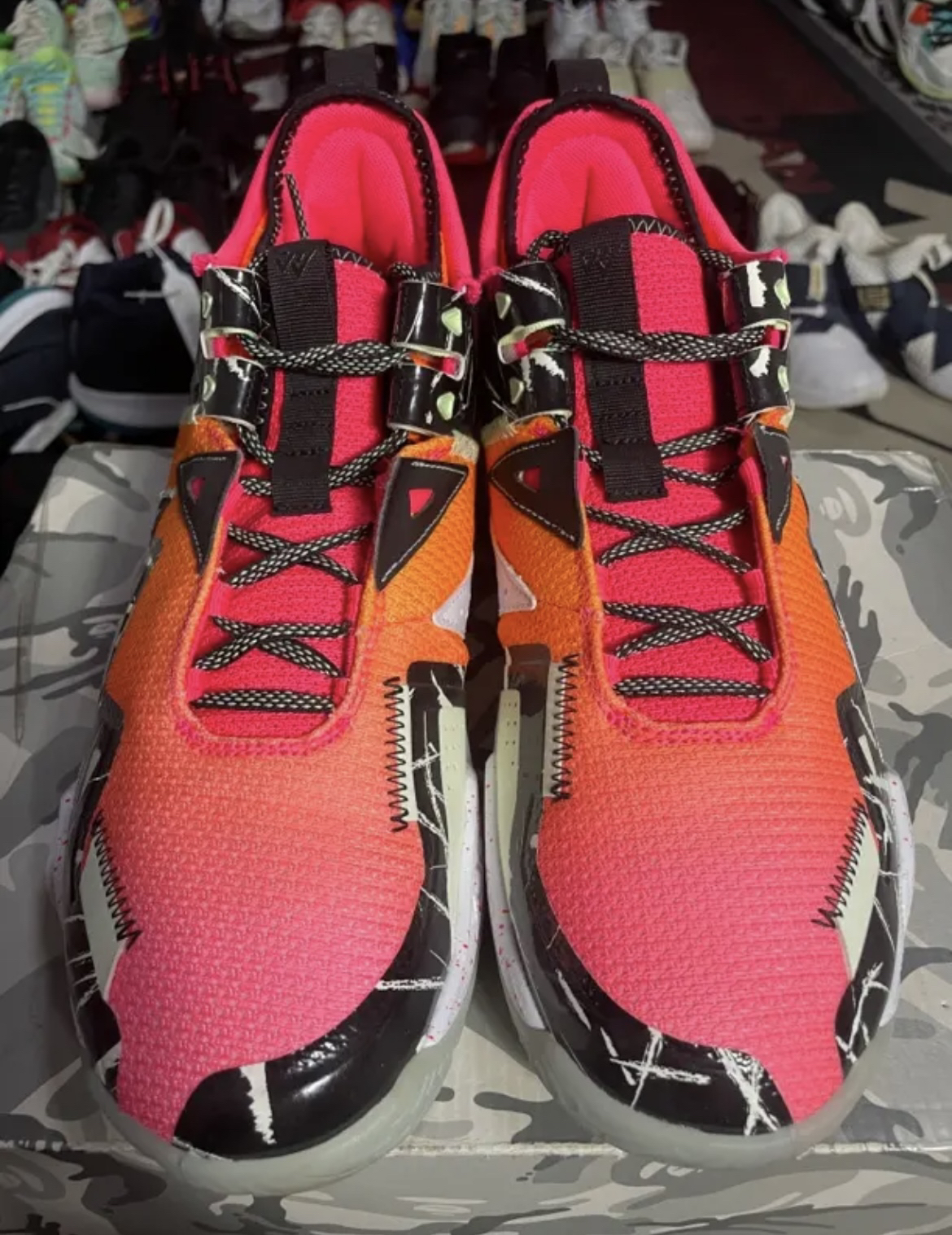 最近入手了威少1日落东单配色,给大家分享下穿着体验。 先说说外观,这双鞋的颜值真的没话说。黄橙渐变色调是它的主打,再加上黑白细节点缀,让人一眼就联想到日落时分的东单球场,充满了艺术感与潮流气息。天马行空的图案印花搭配中底泼墨元素,为整双鞋增添了独特的个性,无论是打球还是日常出街,都很吸睛。 实战方面,它的优点也比较突出。包裹感超棒,鞋面采用全掌内靴,外面还有热熔覆盖面料,一拉鞋带,就能紧紧裹住...