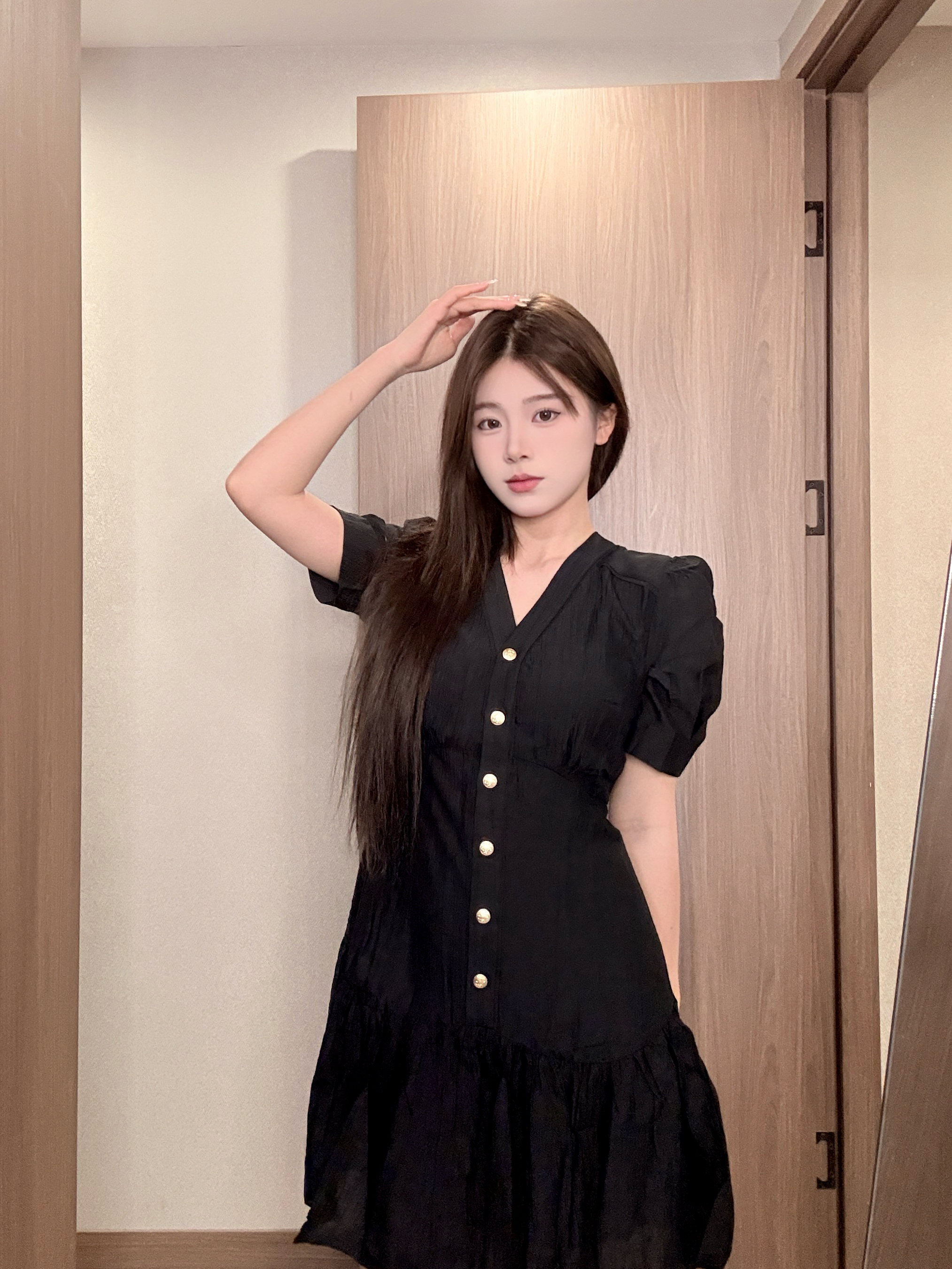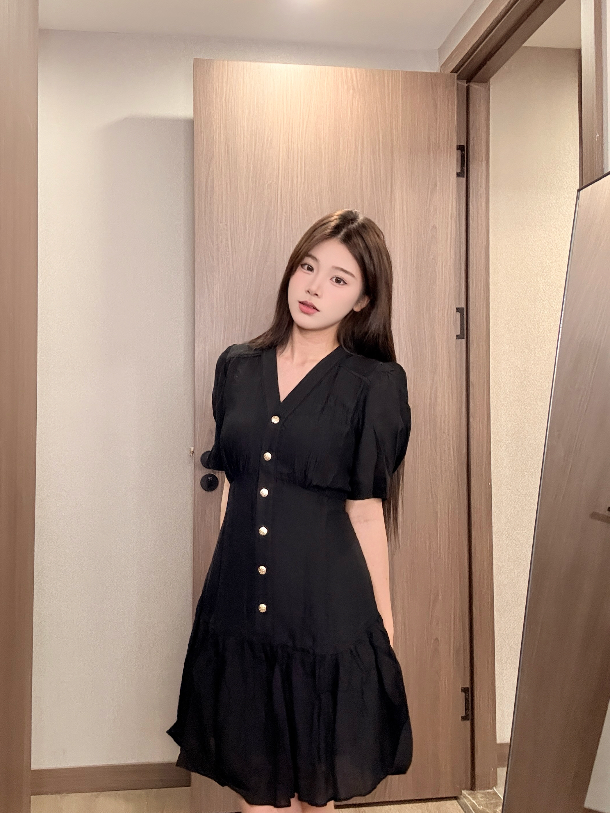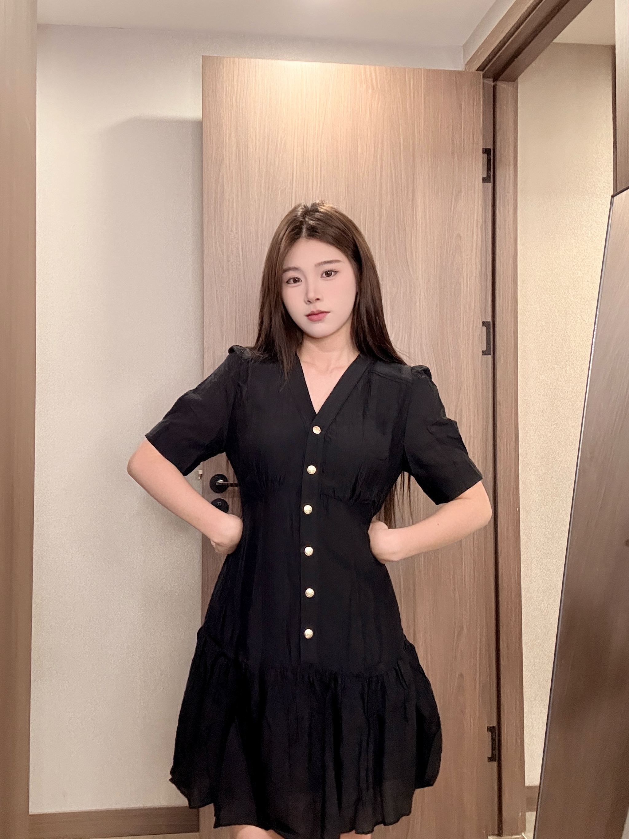 今天穿的 E.land的连衣裙 160 45kg 穿的s码 码数可以参考 这种气质款的小 每个贝贝的衣柜里都要有一条 平时真的很好穿啊一点都不挑场合 这件穿上很显瘦面料 是那种纱的很透气 夏天穿也不会热