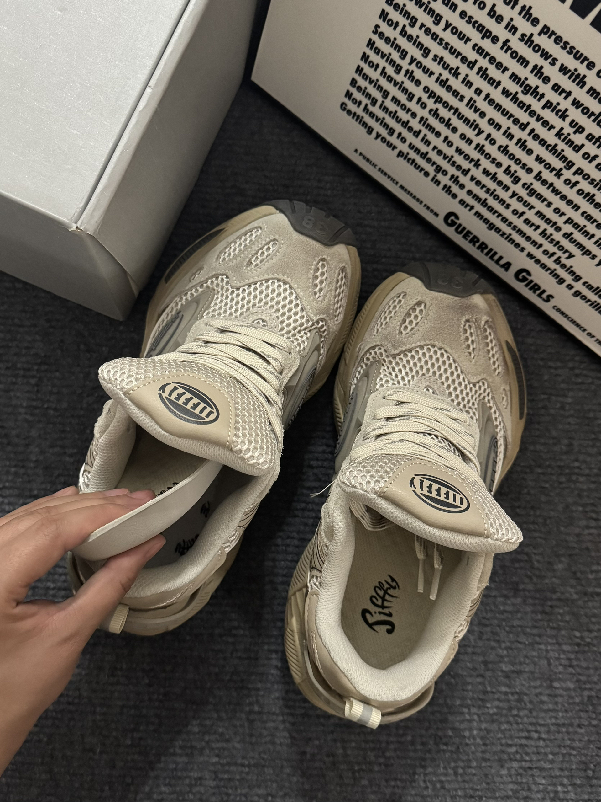本来对老爹鞋有点犹豫,觉得会不会显脚大.结果看到jifffily这双,直接入坑! 这鞋就像把潮流密码踩在脚下,复古网面,乍一看土里土气,上脚却帅到飞起,回头率爆棚.穿着它走路,感觉自己是街头最靓的仔 别管了,我要和它锁死,爱鞋清单又添一员猛将!🥹