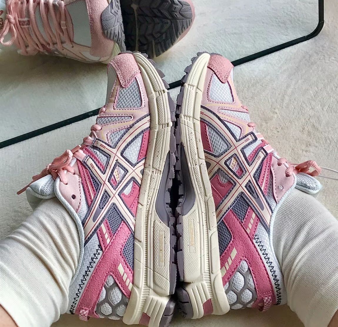 春天就很适合穿粉色耶 看中这双 Asics 运动鞋 我吼喜欢 网面和樱花粉皮革的搭配 我觉得复古休闲 又少女感满满 鞋底蛮防滑的 穿它爬山暴走都OK