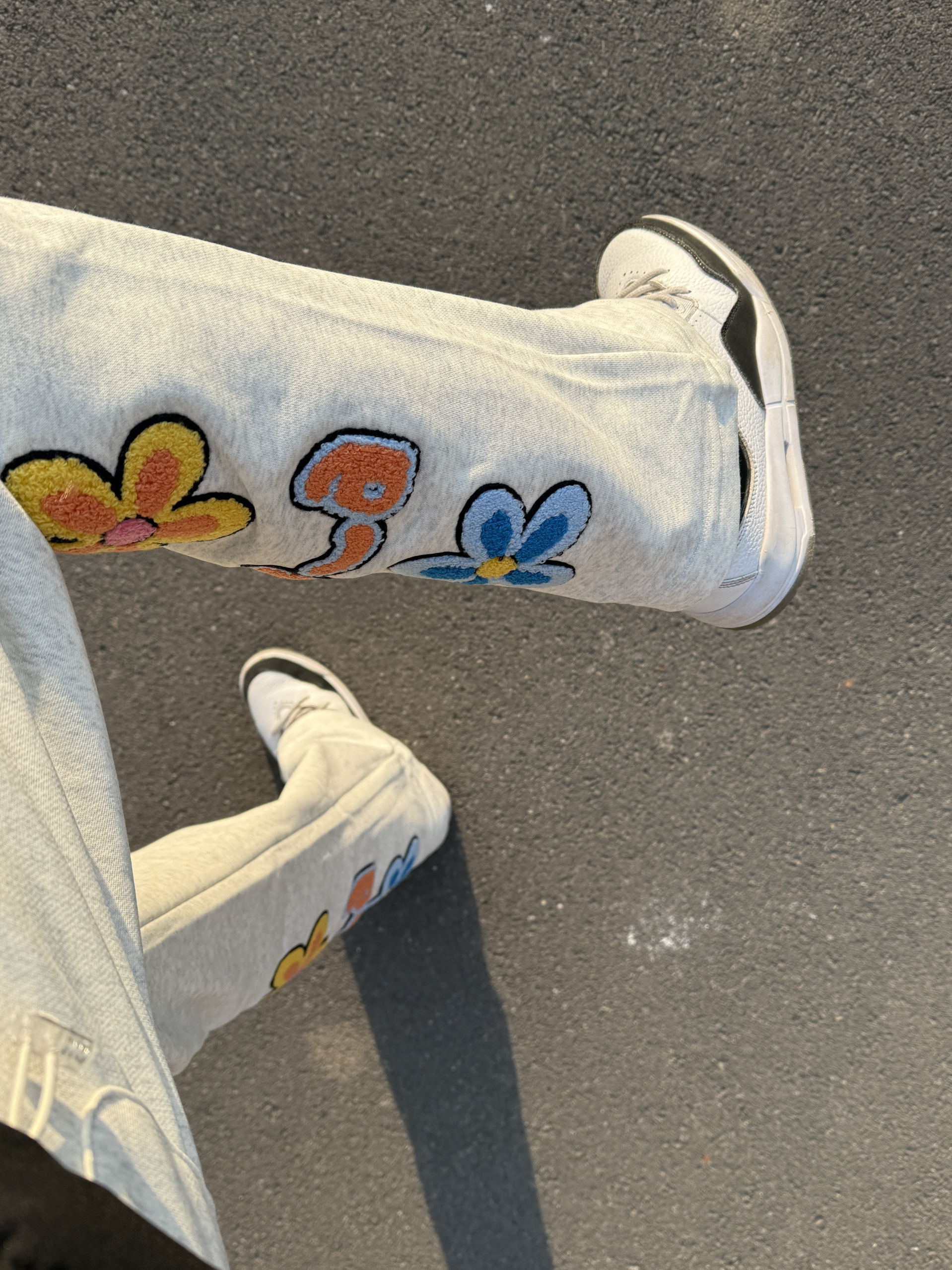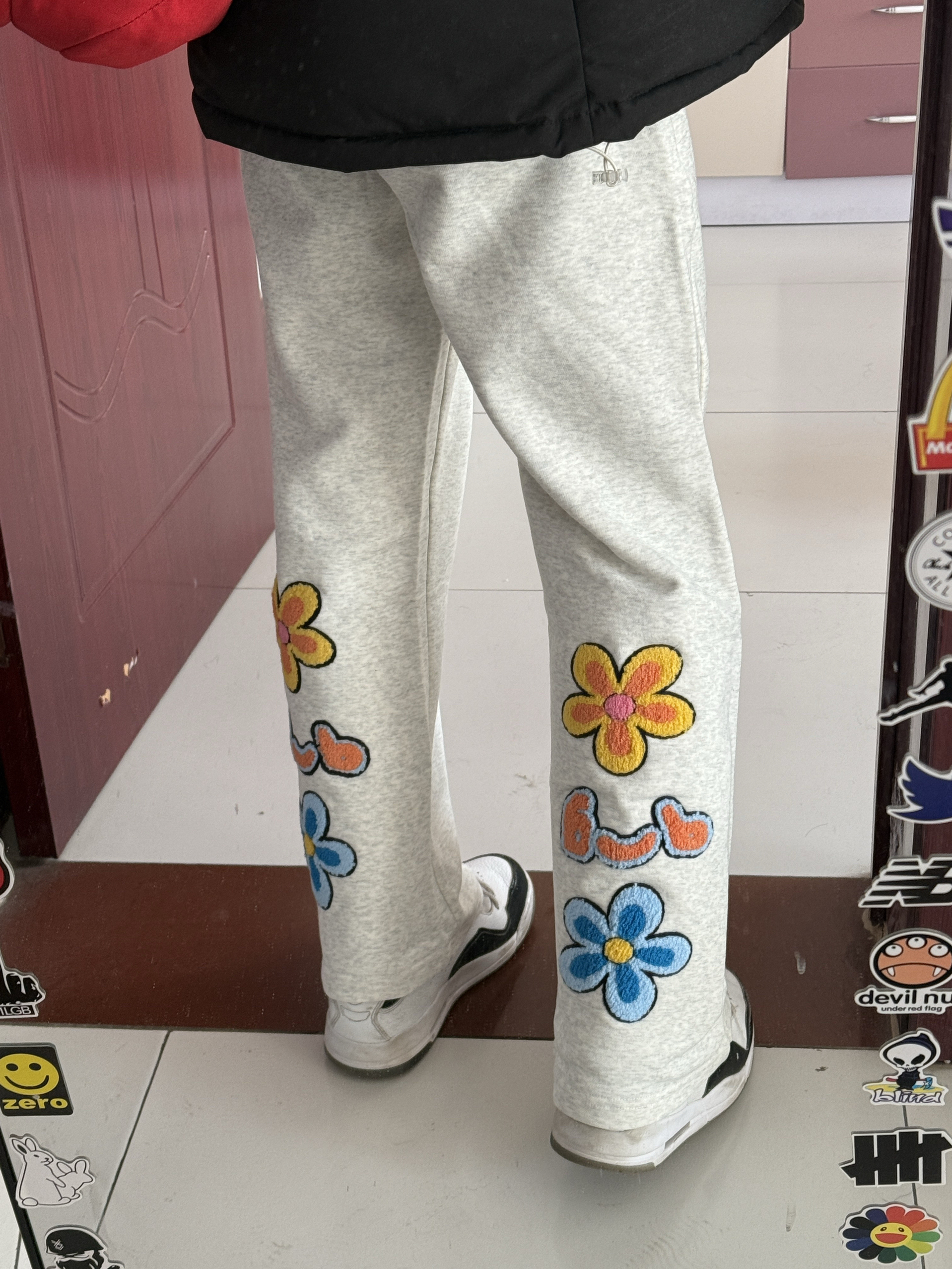 刺绣花朵卫裤太帅了根本穿不腻!直筒版型休闲百搭,刺绣花朵图案很有设计感 男女同款 初春梦中情裤!