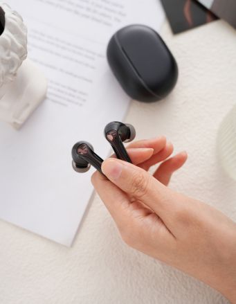 Air5 Pro的设计不仅追求音质的极致表现,也注重佩戴的舒适度。单耳仅重4.87g,人体工学设计让耳机完美贴合耳部,无论是日常佩戴,还是运动中长时间佩戴,都毫无压迫感,给你如“空气般”的佩戴体验。