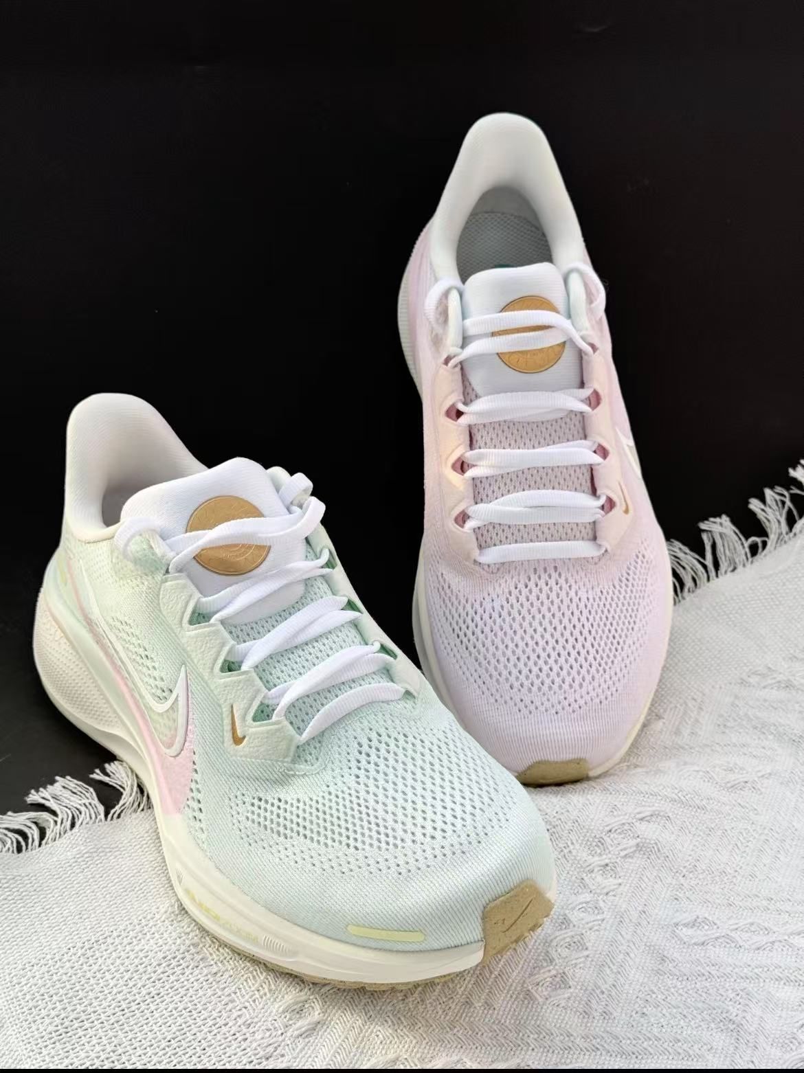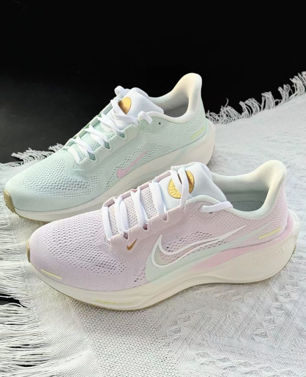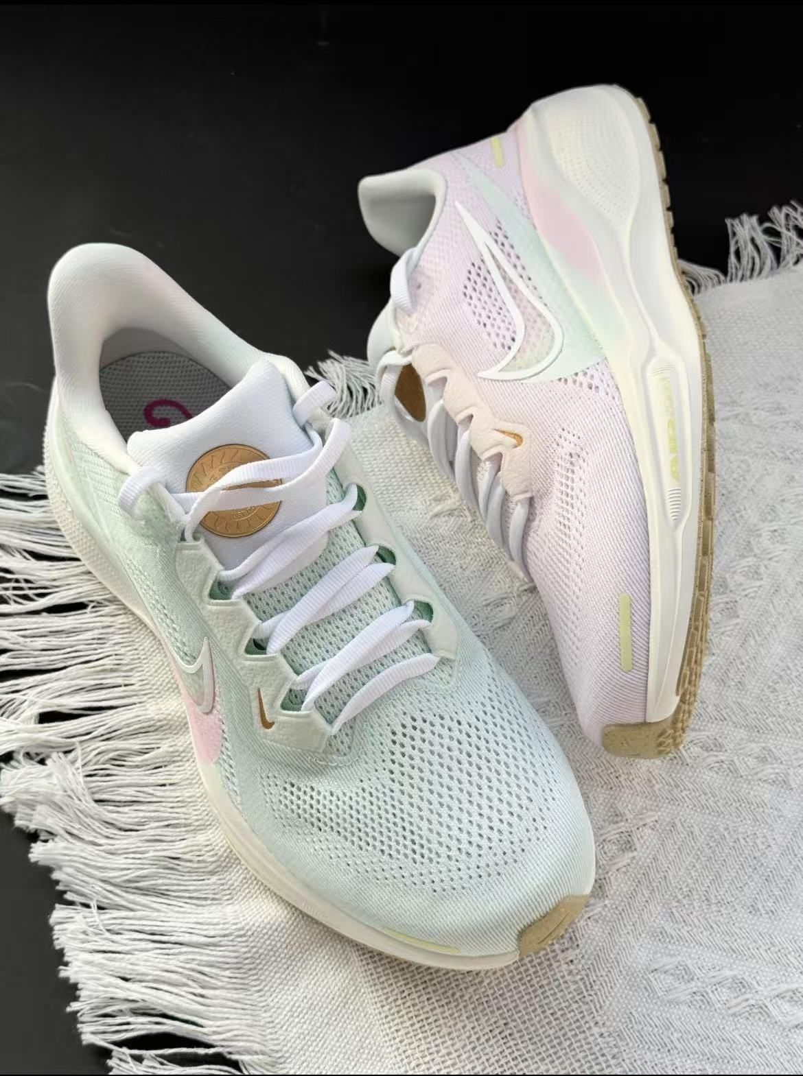 Nike pegasus 41 经典款慢跑鞋,全掌 ReactX 气垫,淡粉色搭配薄荷绿的鸳鸯配色,清新白搭,适合春季慢跑训练,喜欢的宝子们直接冲!