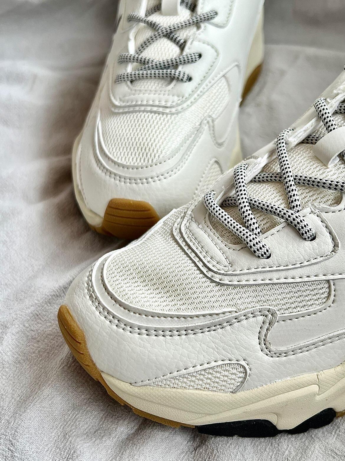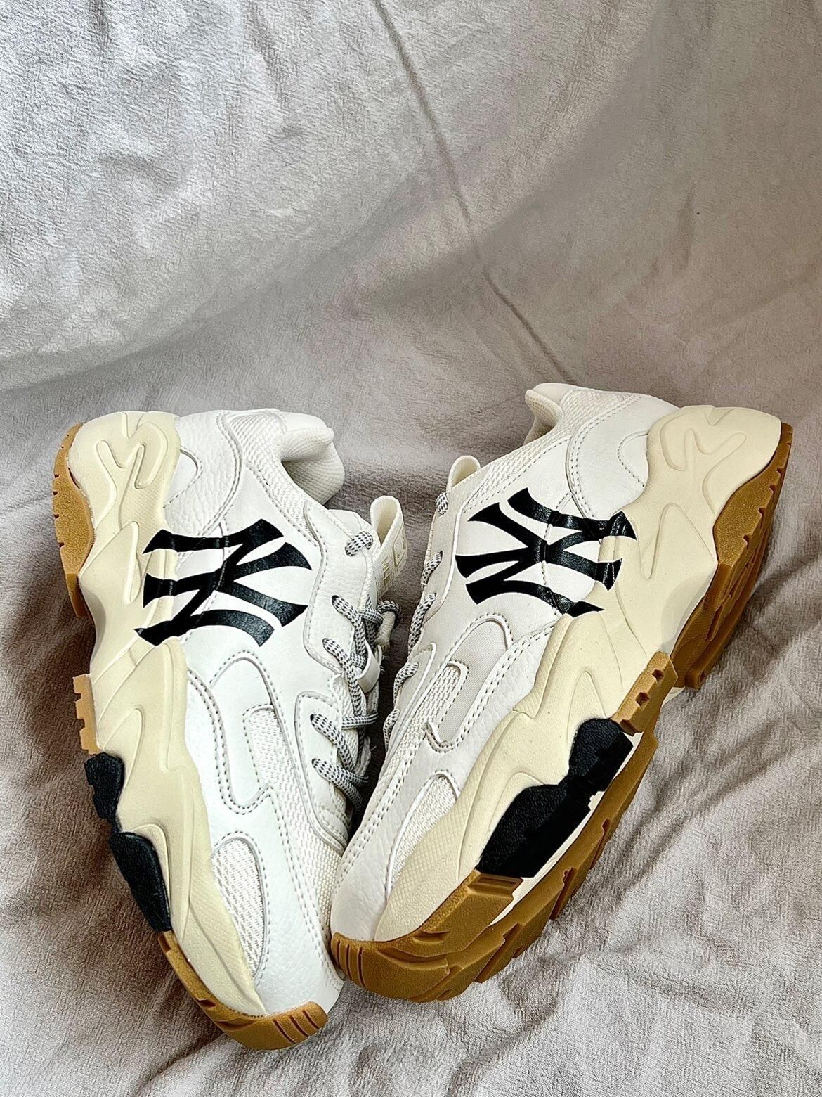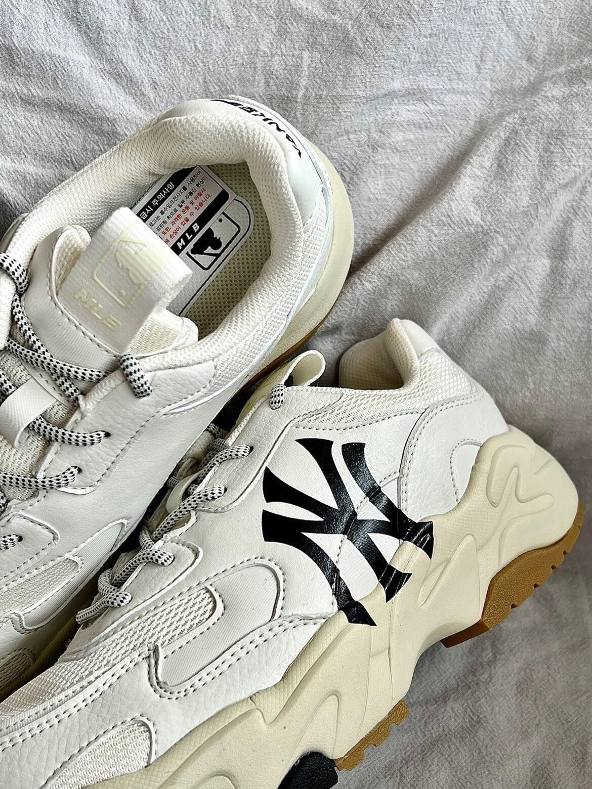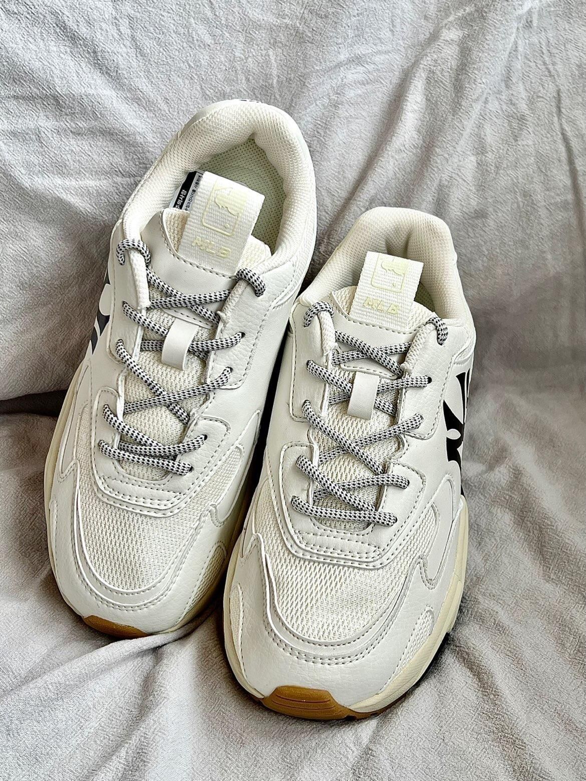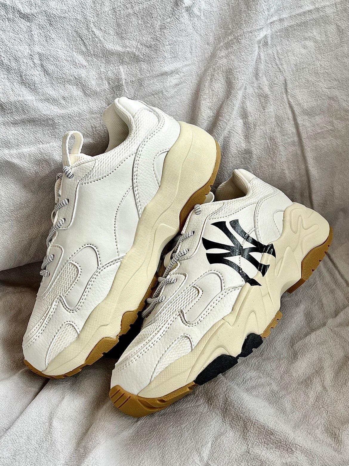 👟鞋款名称 MLB BigBall Chunky 低帮减震防滑老爹鞋 男女同款 米白 ☘️真是对老爹鞋情有独钟,特别是MLB老爹鞋!优质的皮革和网面拼接的鞋面,透气舒适,米白色的主配色,侧身Swoosh特别醒目,后跟处依旧是YANKEES,做旧的米黄色中底搭配生胶色的大底,配色复古范儿十足 ☘️增高4cm左右特别显脚裸细长,而且脚感轻便