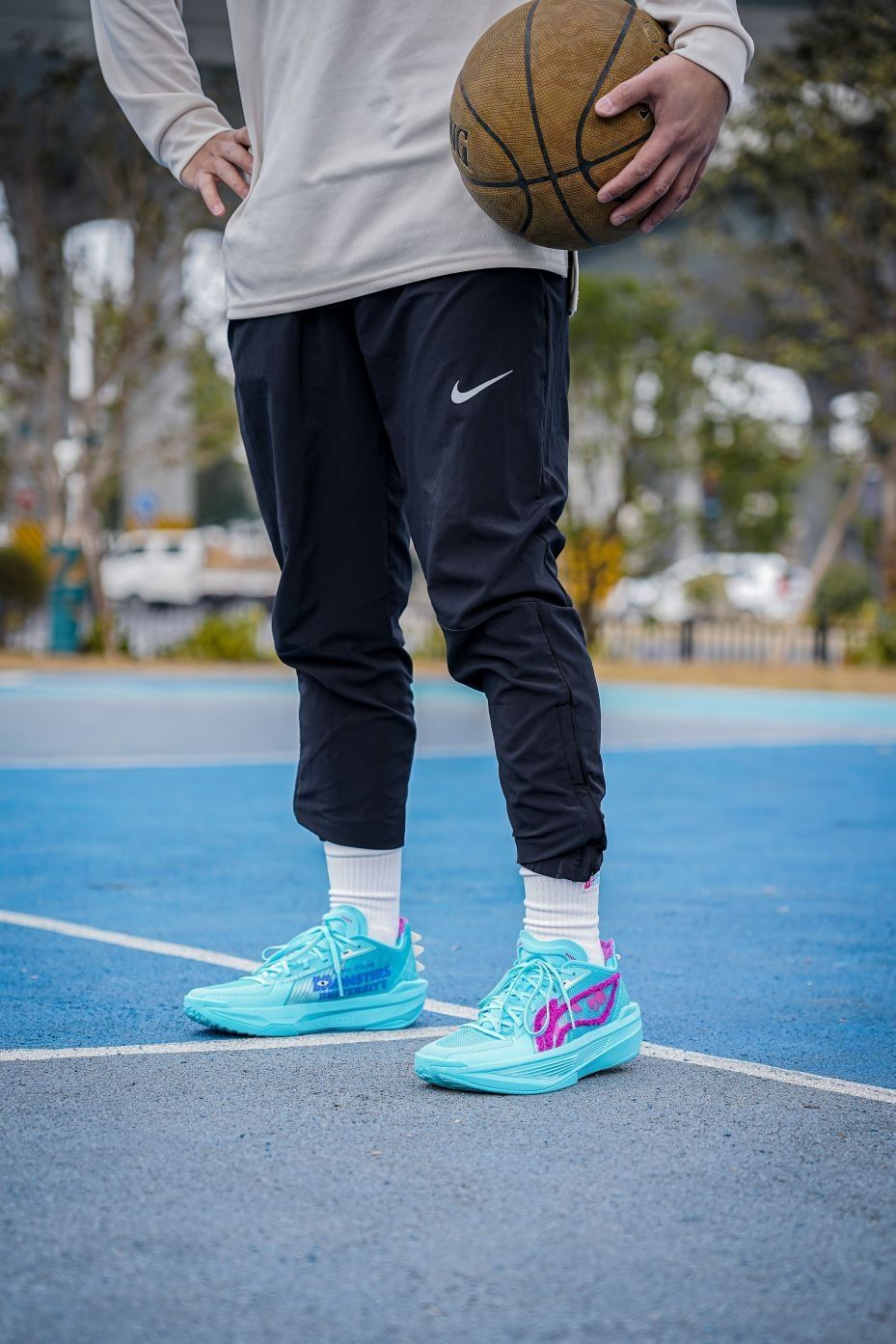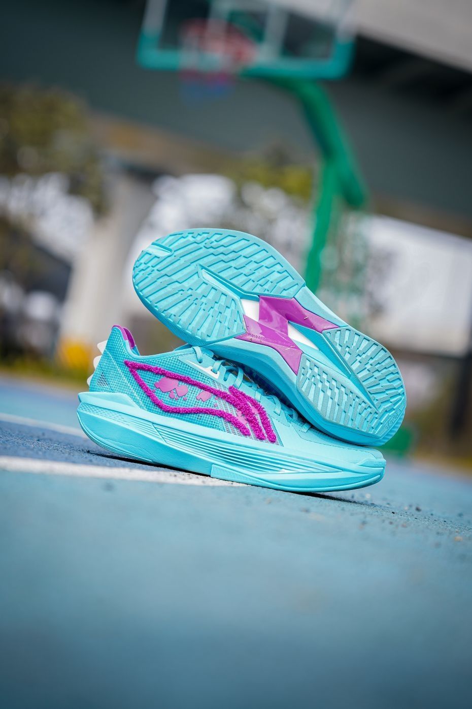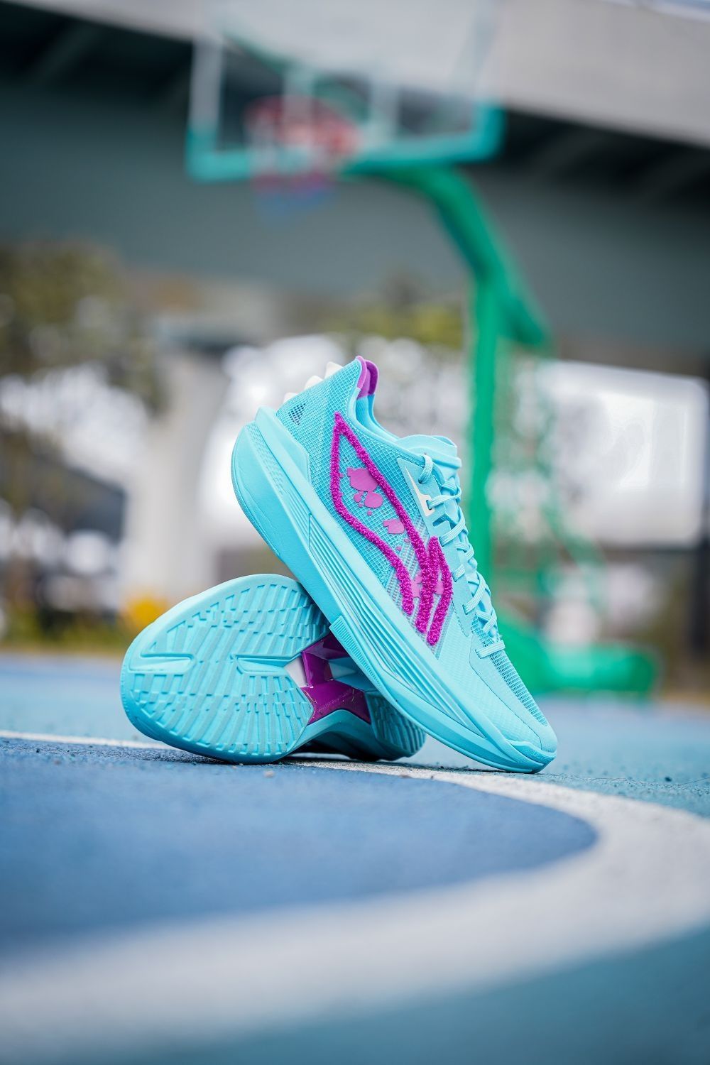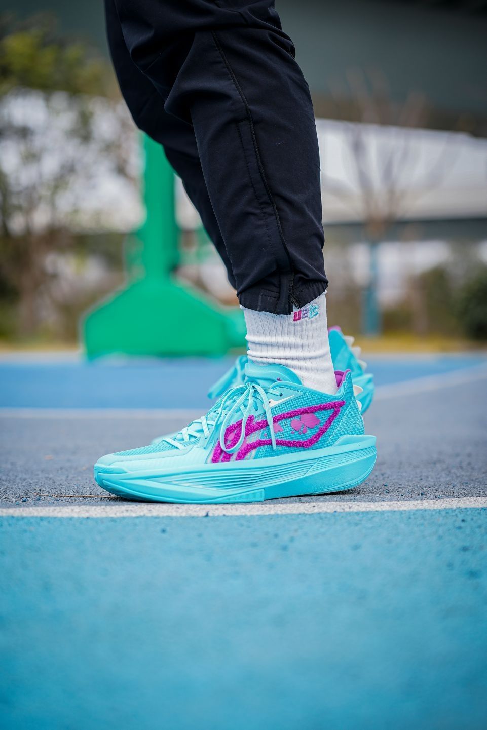 这双超轻25怪兽大学颜值真的很帅啊~配色一眼就能看出以毛怪苏利文的蓝紫色毛发为灵感,李宁logo用绒毛材质呈现,质感相当特别,最有意思的还是后跟的牙齿装饰实在太形象了,整体上我觉得不仅是完美还原人物形象,上脚的颜值也是非常帅的~不过超轻25的实战体验是比较两极分化的,我个人感觉是不太适合我,包裹性方面不是很好。