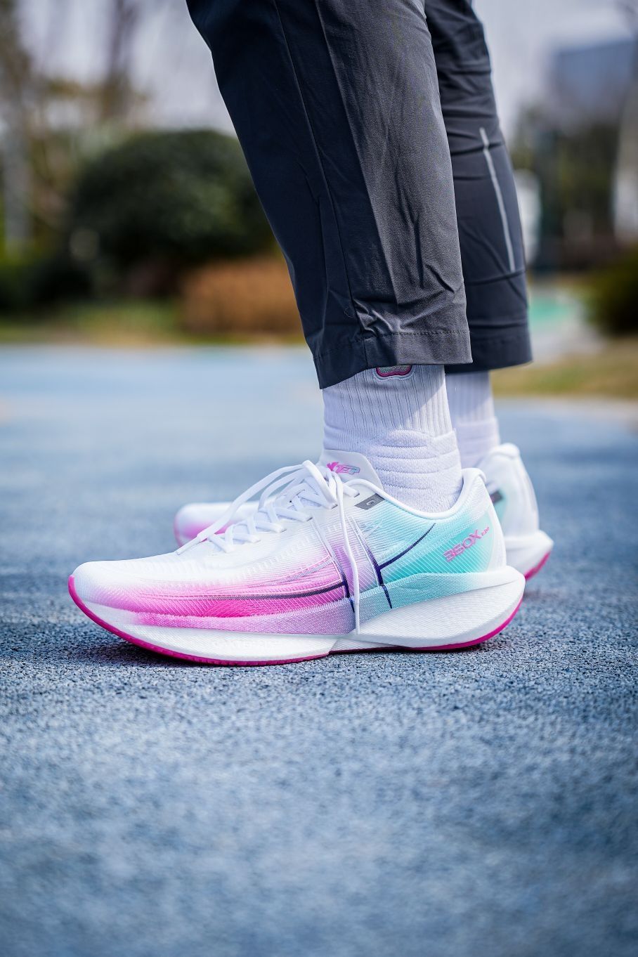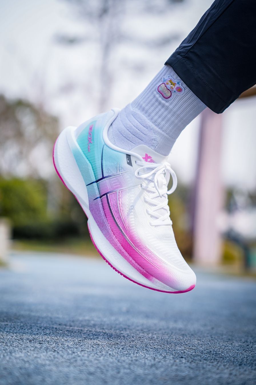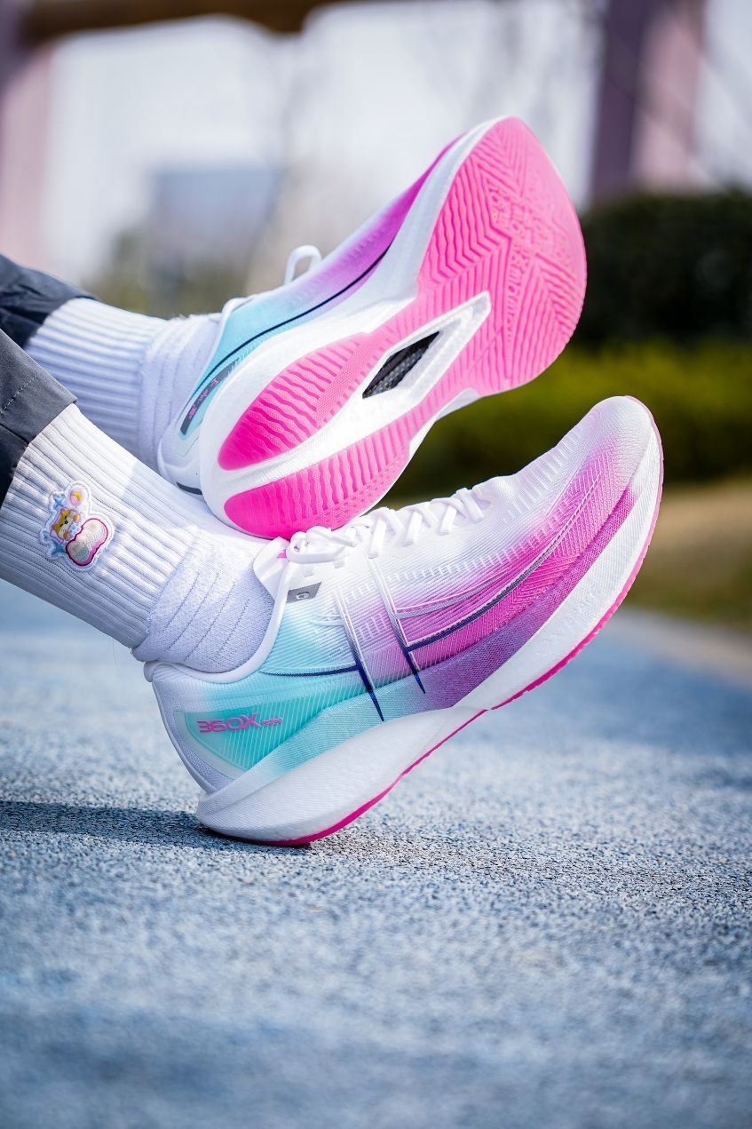 这双360X 2.0 纸鸢,粉紫渐变鞋面正如配色名“纸鸢”,青蓝中底很清新,鞋垫“筝筝日上”的彩蛋,暗藏好运BUFF,穿它跑步感觉有点玄学加成👀 “国民碳板跑鞋”不是瞎说——上脚后全掌T400碳板调校偏温和,像我日常5分配速也能轻松驾驭过弯,助力槽+加宽中底会提升稳定性;XTEP ACE中底缓震充足不震脚。鞋楦也是为国人脚型优化过了,宽脚不挤、瘦脚不晃,体测和日常慢跑都很OK~