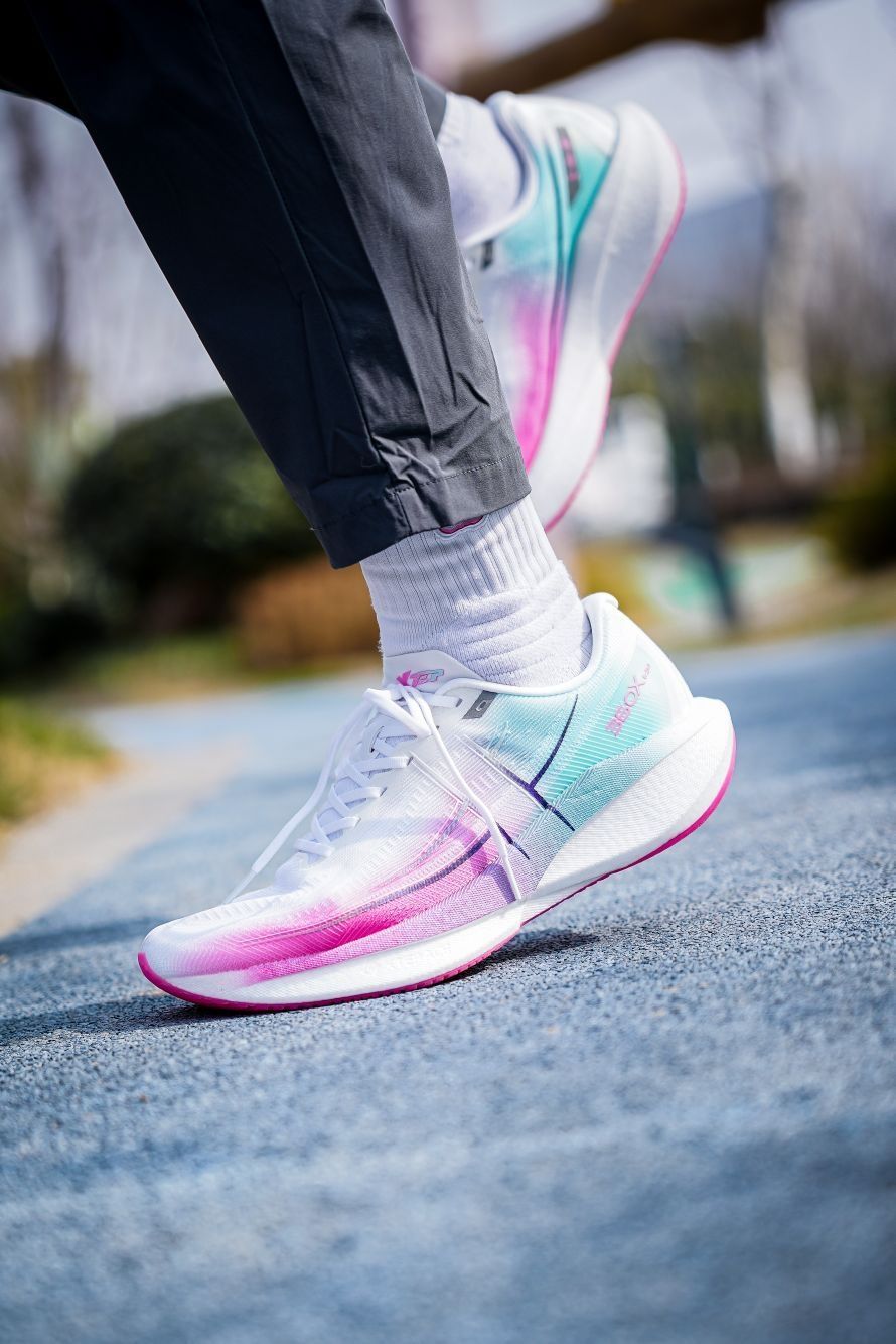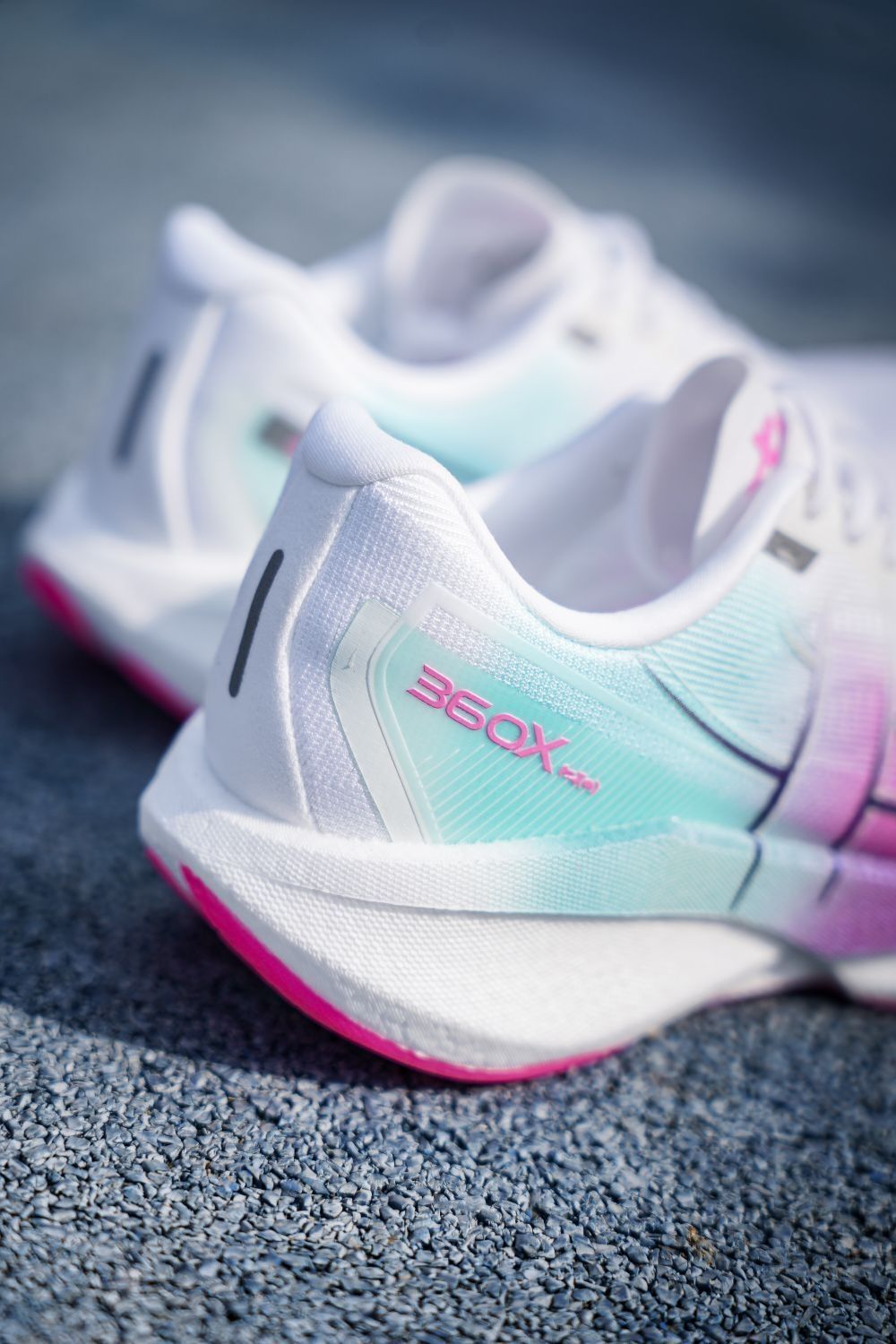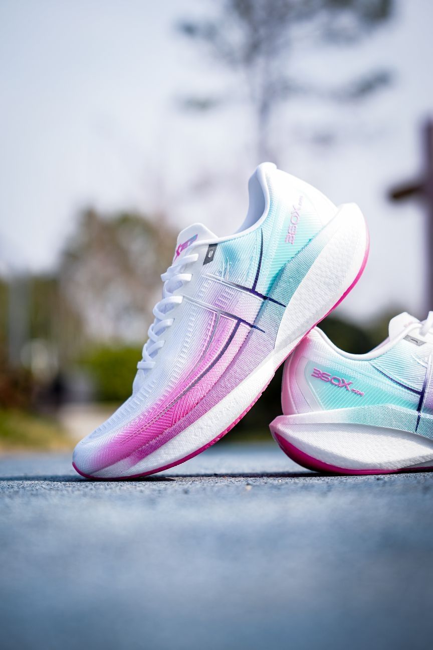 这双360X 2.0 纸鸢,粉紫渐变鞋面正如配色名“纸鸢”,青蓝中底很清新,鞋垫“筝筝日上”的彩蛋,暗藏好运BUFF,穿它跑步感觉有点玄学加成👀 “国民碳板跑鞋”不是瞎说——上脚后全掌T400碳板调校偏温和,像我日常5分配速也能轻松驾驭过弯,助力槽+加宽中底会提升稳定性;XTEP ACE中底缓震充足不震脚。鞋楦也是为国人脚型优化过了,宽脚不挤、瘦脚不晃,体测和日常慢跑都很OK~