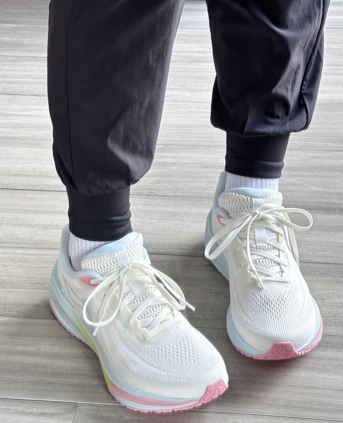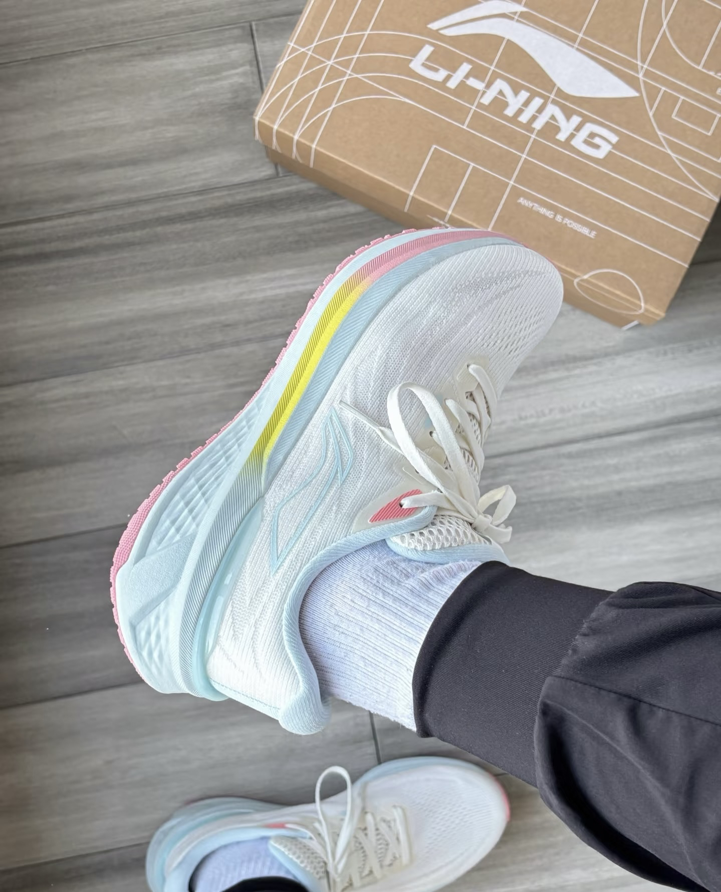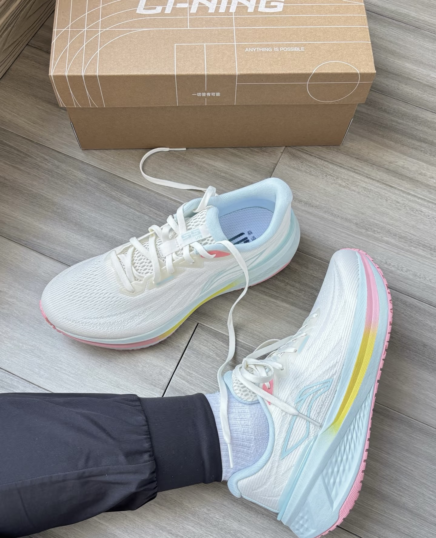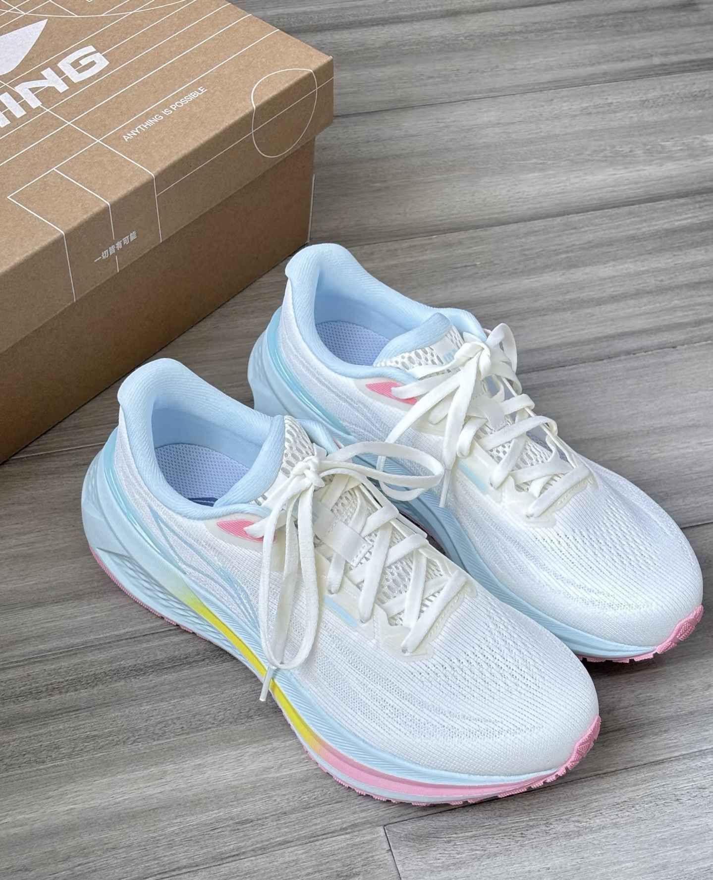 家人们,新入手的李宁跑鞋到啦!纯白鞋面搭配淡蓝、粉和黄的细节点缀,颜值超高, 满满春日氛围感。鞋面是透气的编织材质,穿着不闷脚。鞋底柔软, 缓震效果感觉很不错,走路很舒服。无论是运动还是日常出街都百搭,有没有同样喜欢的朋友,一起来交流呀~ #李宁跑鞋 #运动鞋分享 #时尚穿搭