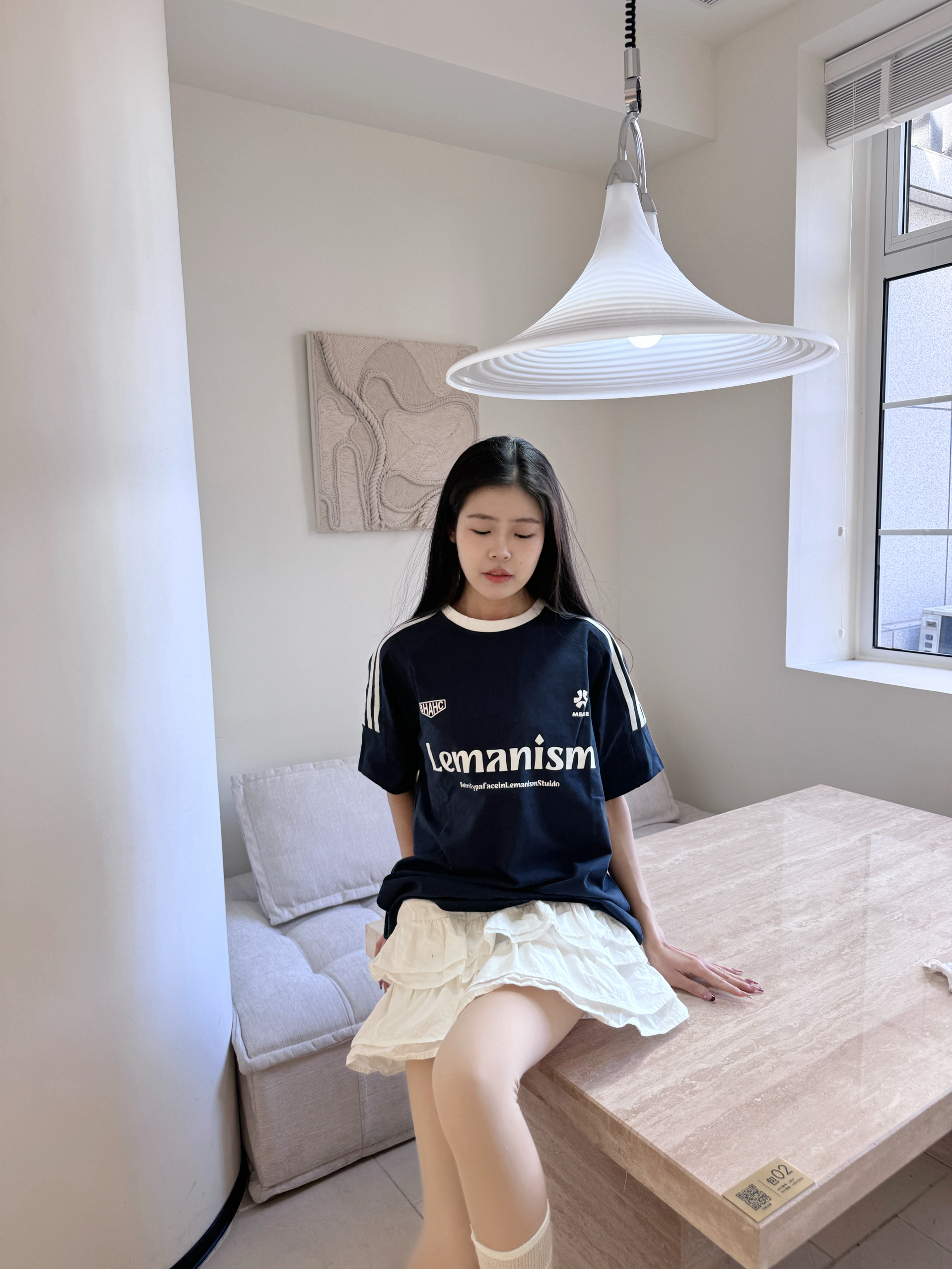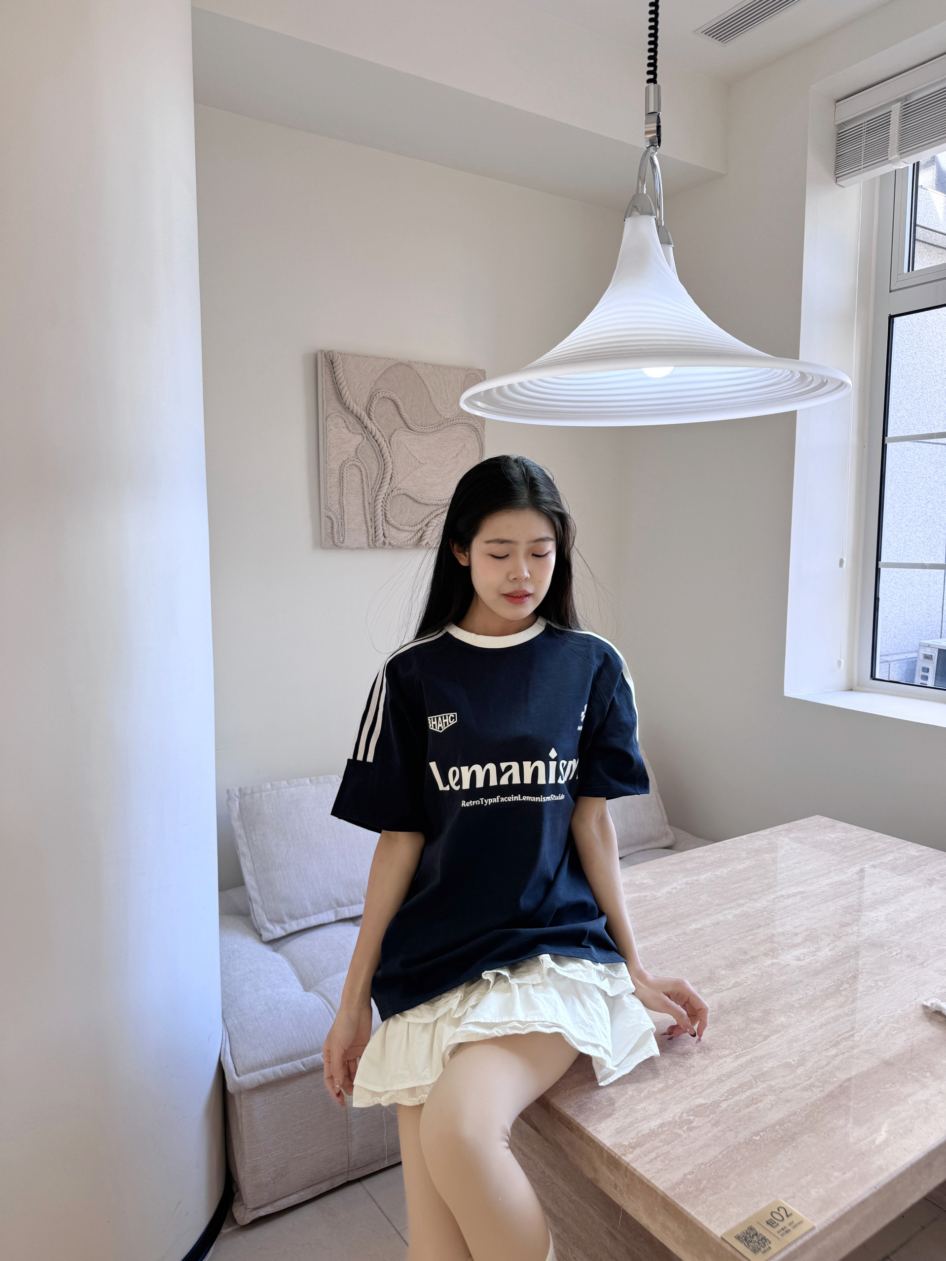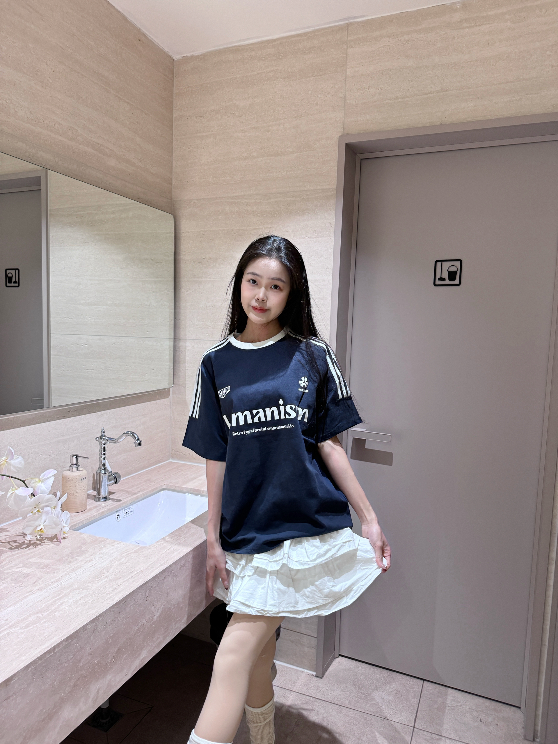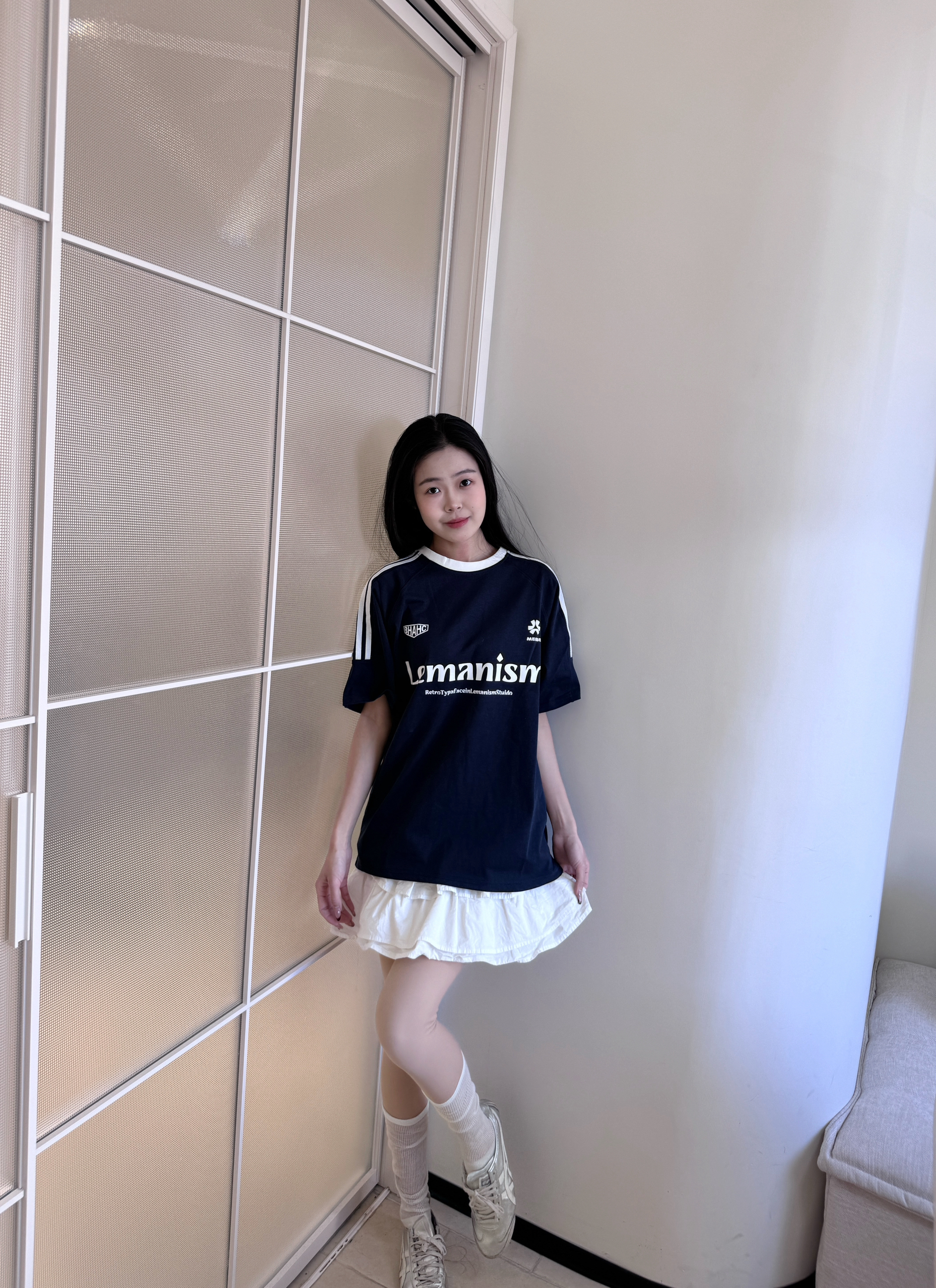 今天素充满少女感的运动芭蕾风~🎀 上半身的t有点球服的感觉🏳️⚧️ 藏青的cleanfit感扑面而来🌪️ 下半身推荐搭配芭蕾风短裙 一套甜进心窝惹🫶🏻