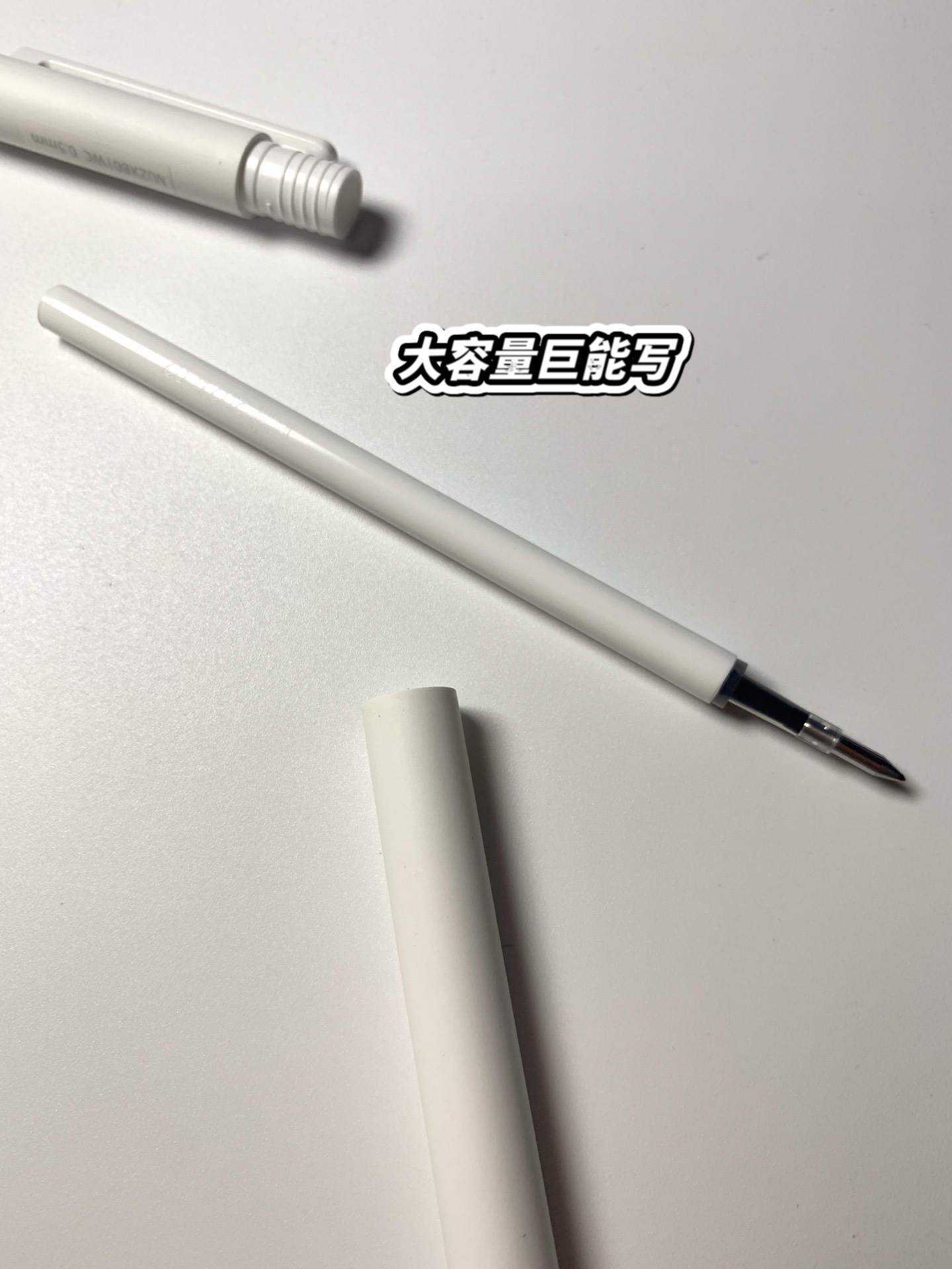 💖文具控必看!巨好写的笔 不懂 怎么会有这么便宜又好用的笔啊😭 小米巨能写不愧叫这名 真的巨能写 按压式的白色中性笔是干干净净的清爽感 笔杆不是特别光滑的那种,握在手里不会打滑,也是日常写字的好伙伴~