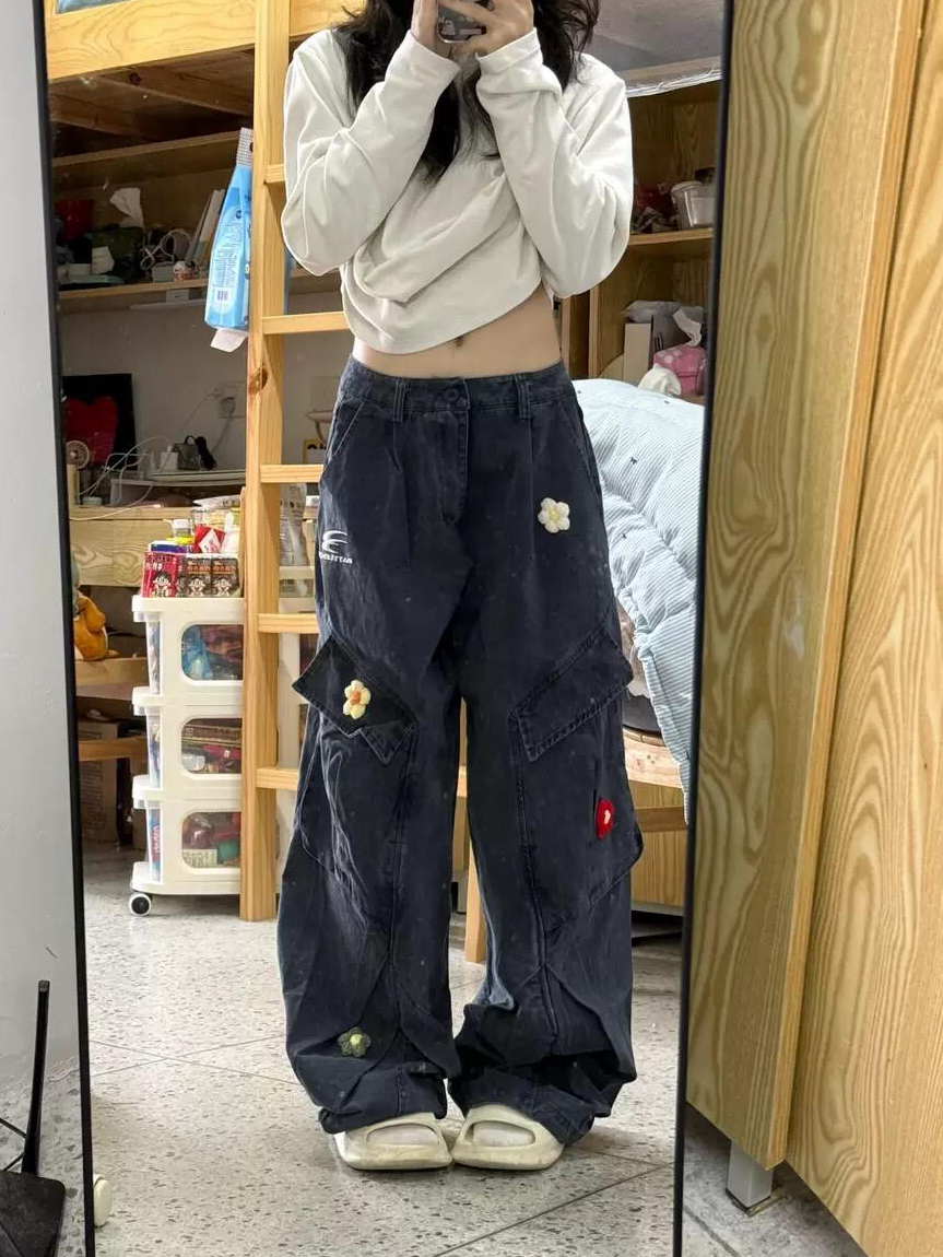 裤子的设计真的是一眼戳中我的心巴了 小花花的点缀和水洗牛仔的碰撞,搭配黑色上衣,一整个就是又甜又酷!推荐给姐妹们!