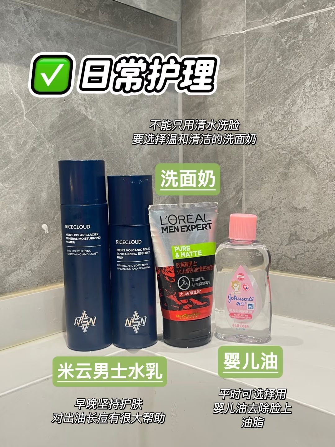 痘痘肌真的太让人苦恼了!但是找对方法也很容易战胜痘痘肌,分别给大家一些战斗小秘诀,男朋友坚持了两个月已经有明显改善啦 一、清洁🧼 清洁是痘痘肌护理的第1步。选择温和的洁面产品,不要过度清洁哦。过度清洁会破坏皮肤的屏障功能,导致皮肤更加敏感,痘痘问题也会更加严重 二、坚持用控油祛痘的水乳 很多痘痘肌的宝子们都觉得自己皮肤很油,不需要涂水乳,感觉对皮肤有负担,这是大错特错的哦!男生同样也需要护肤,一定...