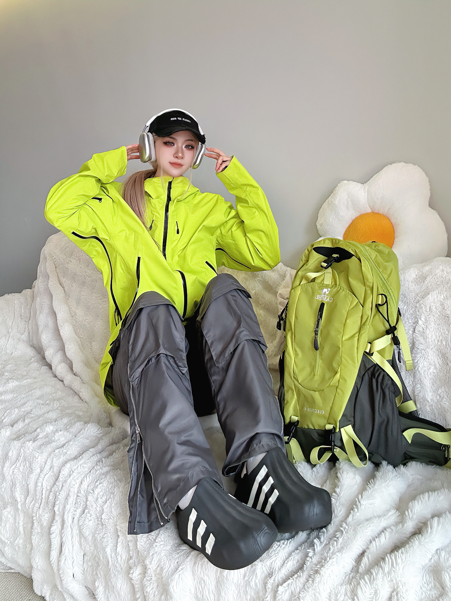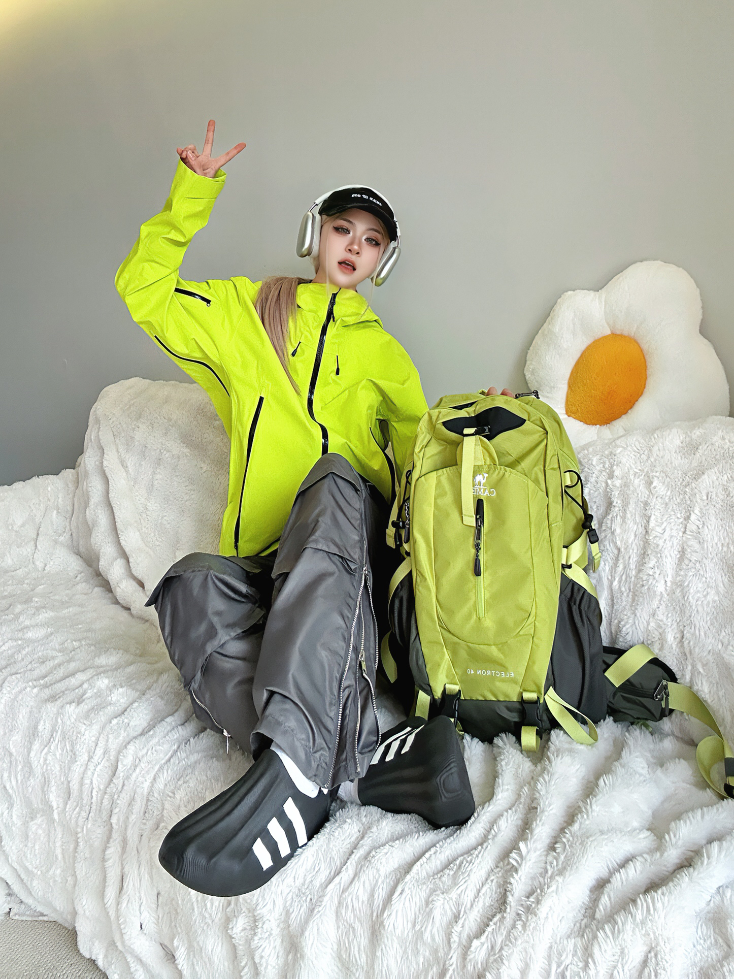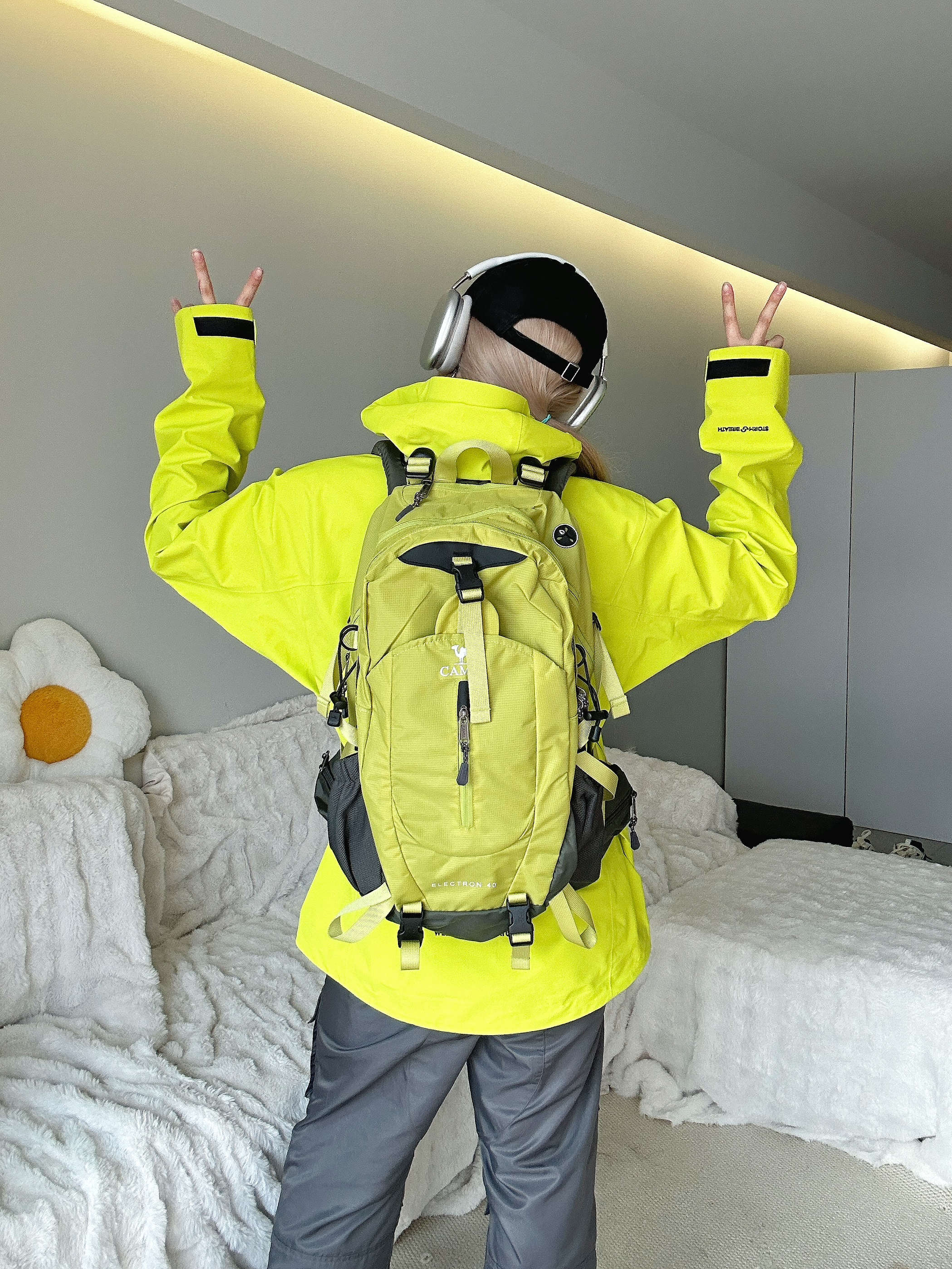 春天到了 准备出去整点户外了 带上新准备的伯希和绿色冲锋衣 和骆驼🐫户外书包🎒 很高级的果绿色! 这套绿色踏春去户外包好看的!
