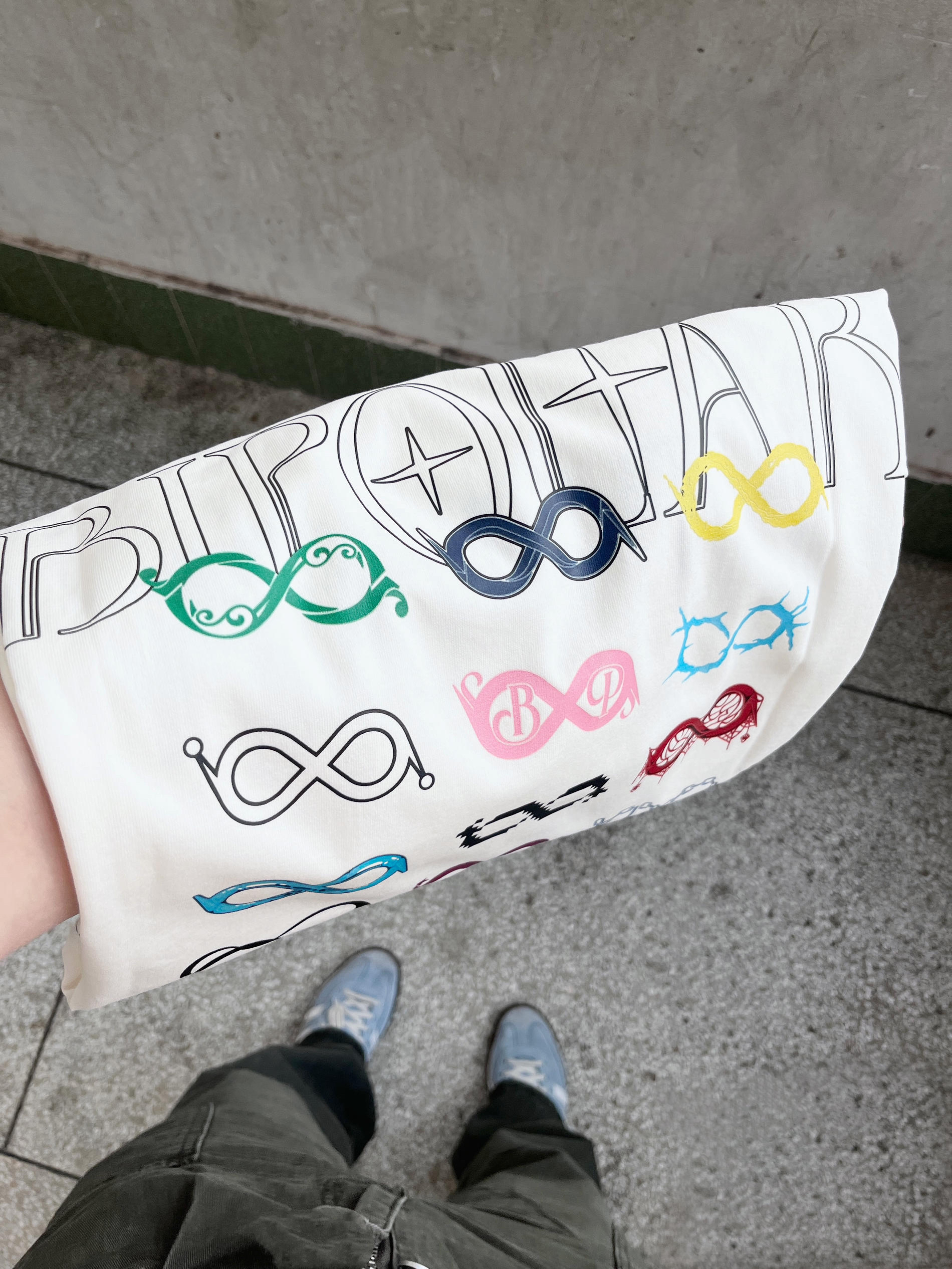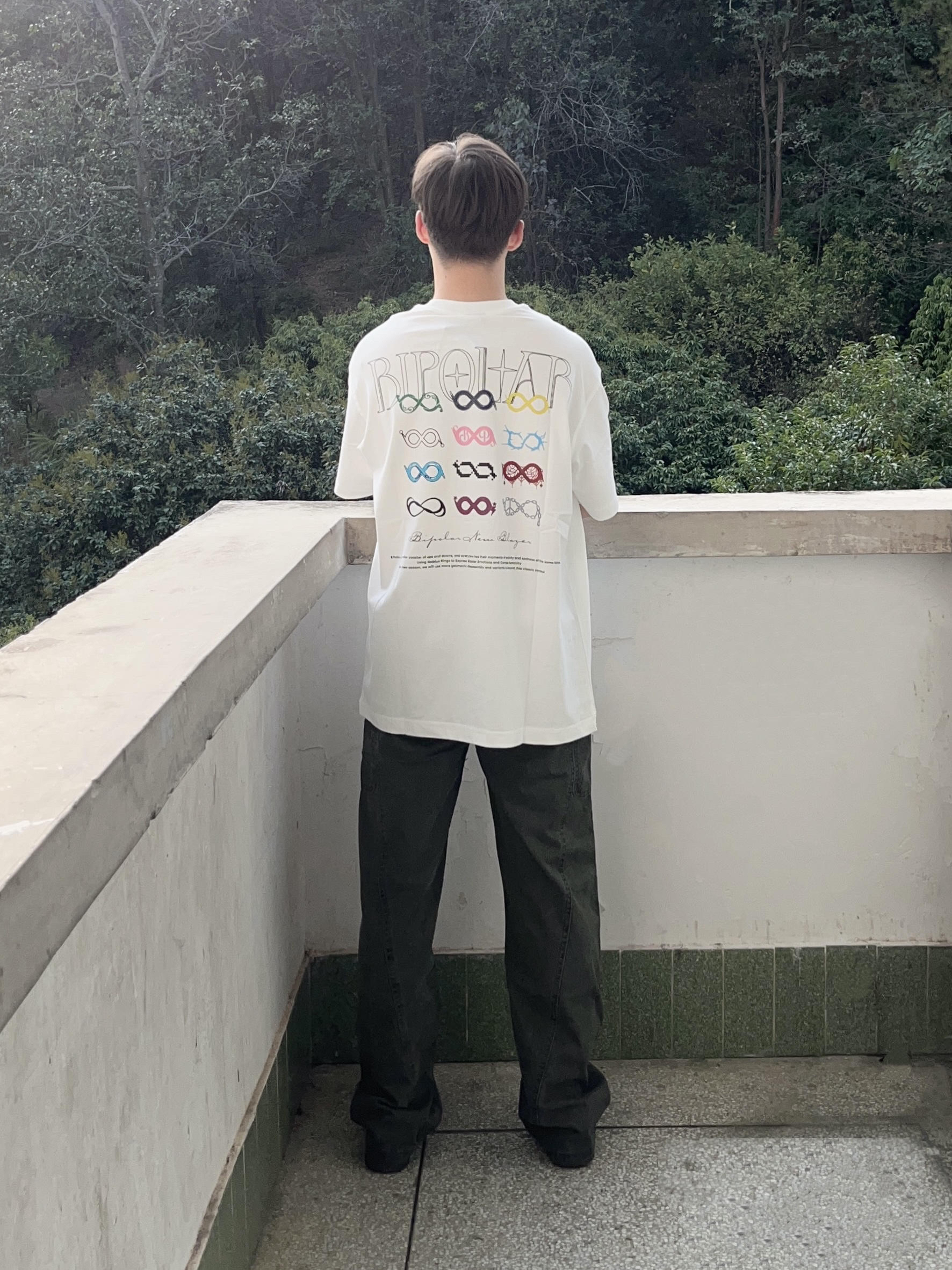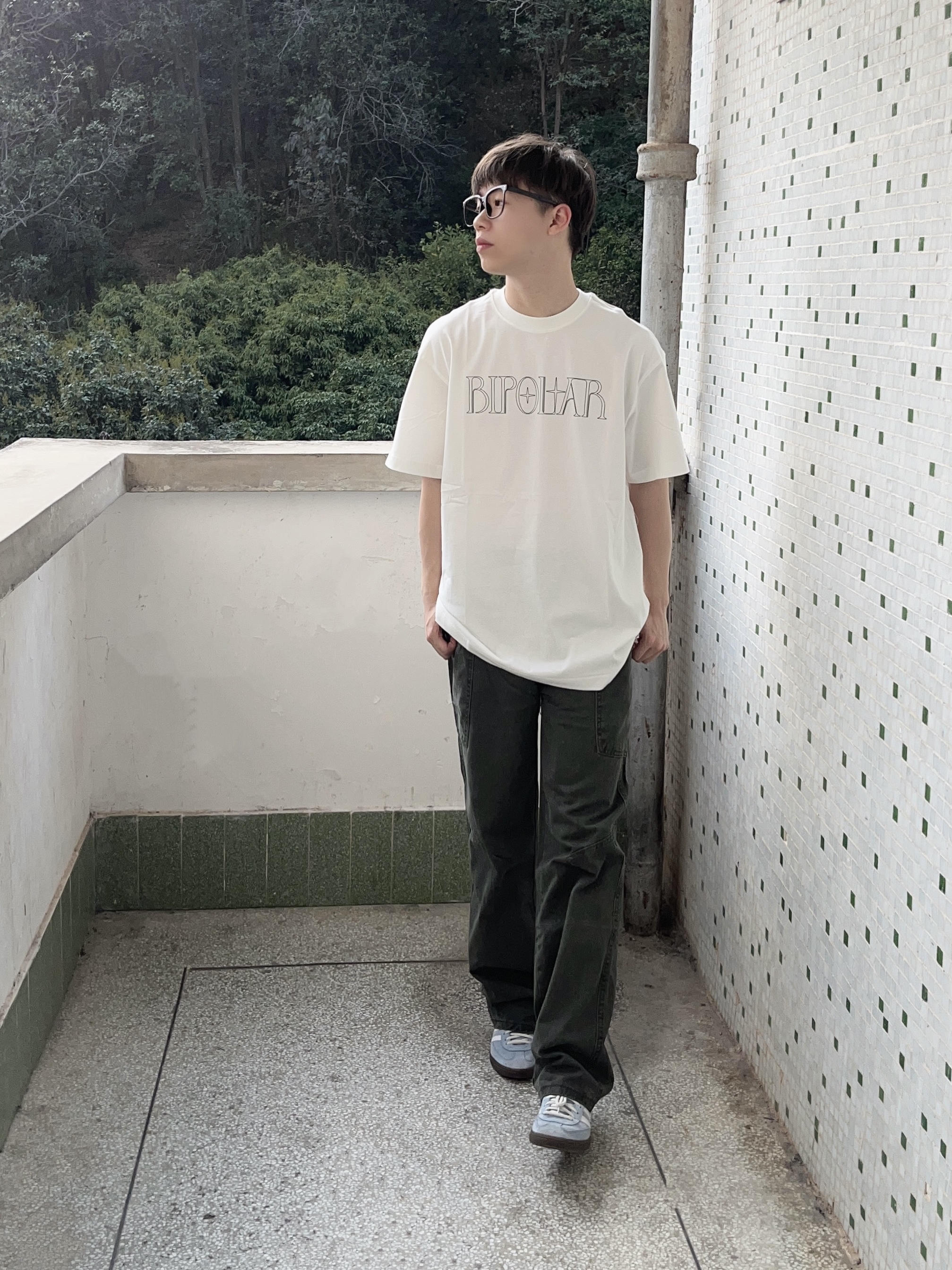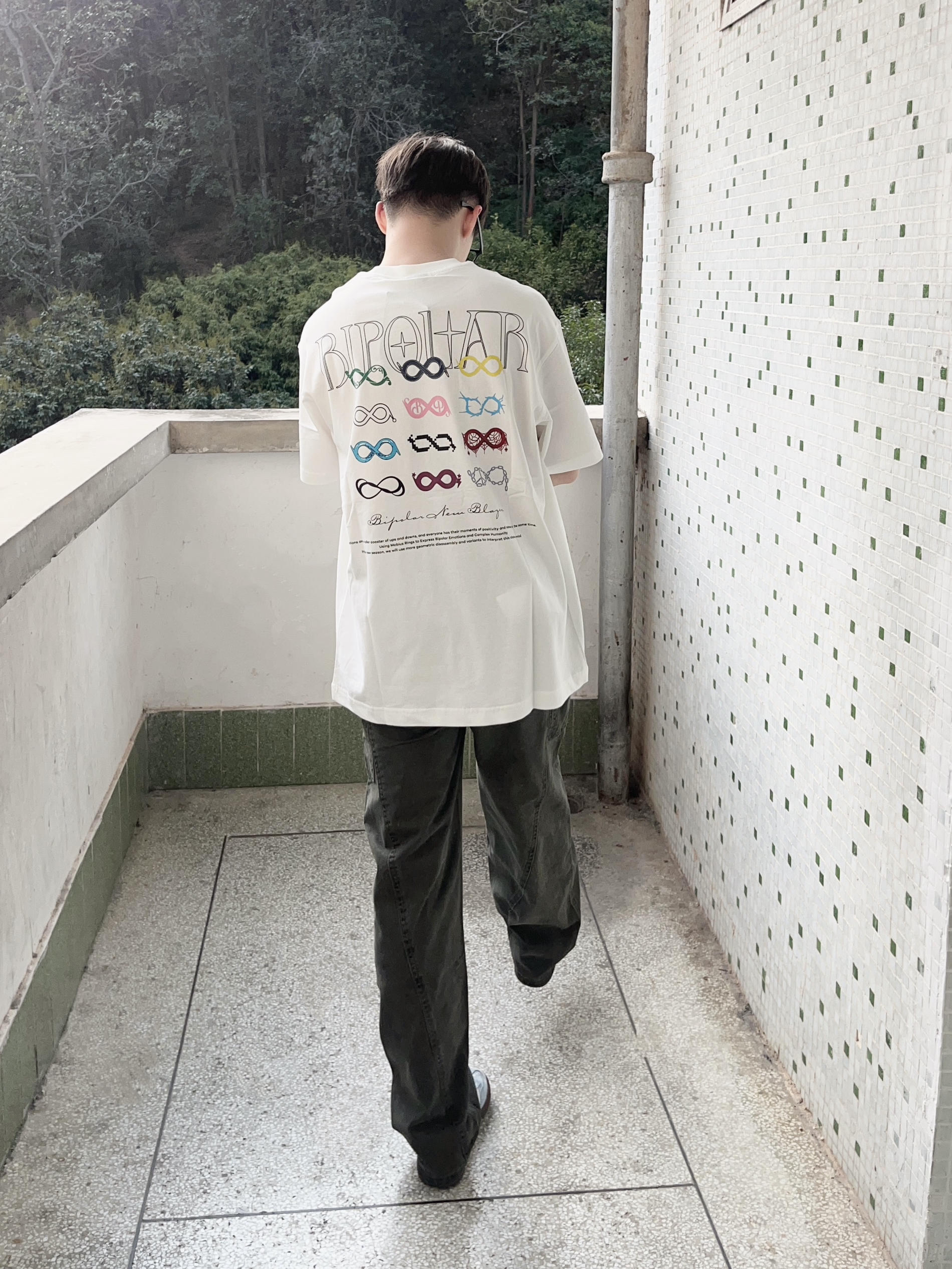 今日份穿搭分享look👀 BIPOLAR 家的集合环 莫比乌斯短袖真的太惊艳啦 背后印花嘻哈潮酷🔥 面料舒适透气 很适合春夏 再搭配一条军绿色工装裤 一套搭配下来 户外出行百搭又好看🚶