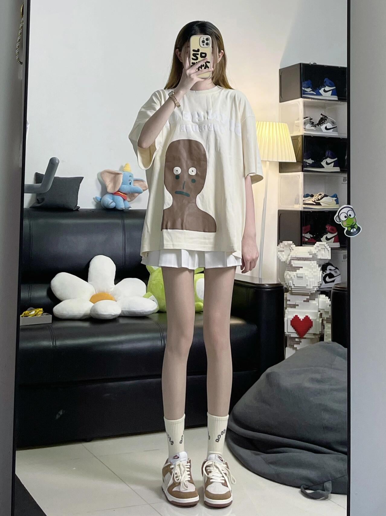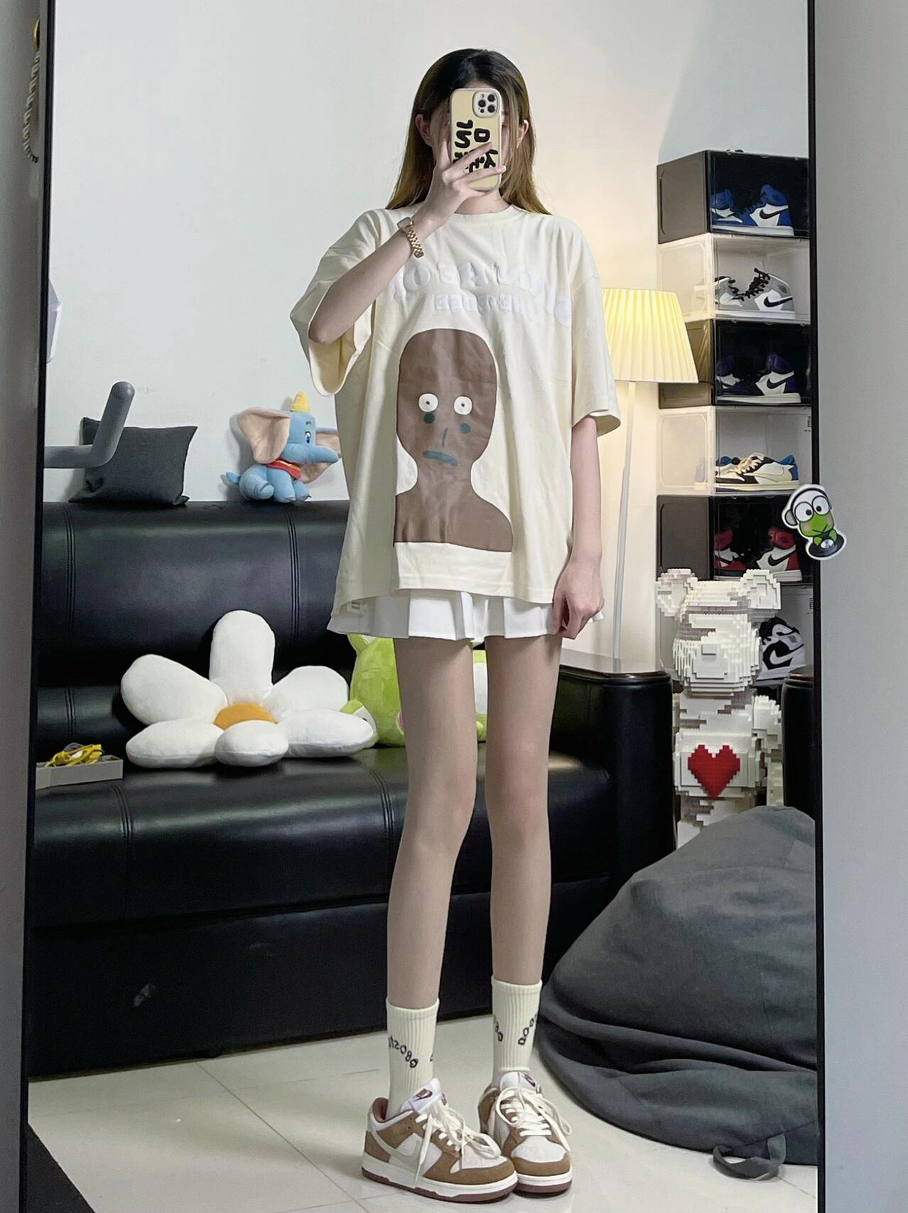 👔:SINNHEONTHEEDGE 米色搭配棕色图案的有巧克力牛奶那味儿了,面前图案简直减龄法宝 👟:DUNK白棕 要比纯白更有质感,配色已经让我不能自拔了,上脚很美式复古