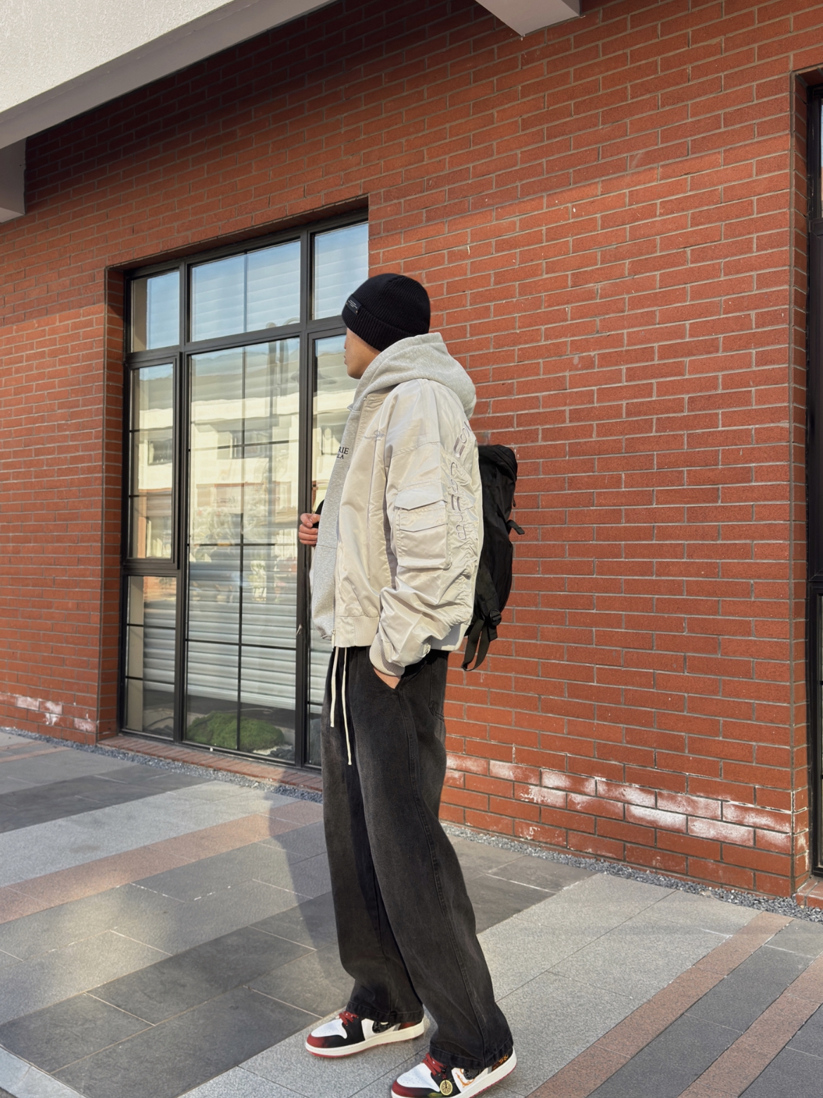 182/72 街头美式大男孩 宝子们好啊, 今日街头风 美式风男孩有点帅! 上身卫衣十棒球服 叠穿就很不错 搭配黑色复古牛仔裤 宽松有型选择一双板鞋 舒服好看的一身