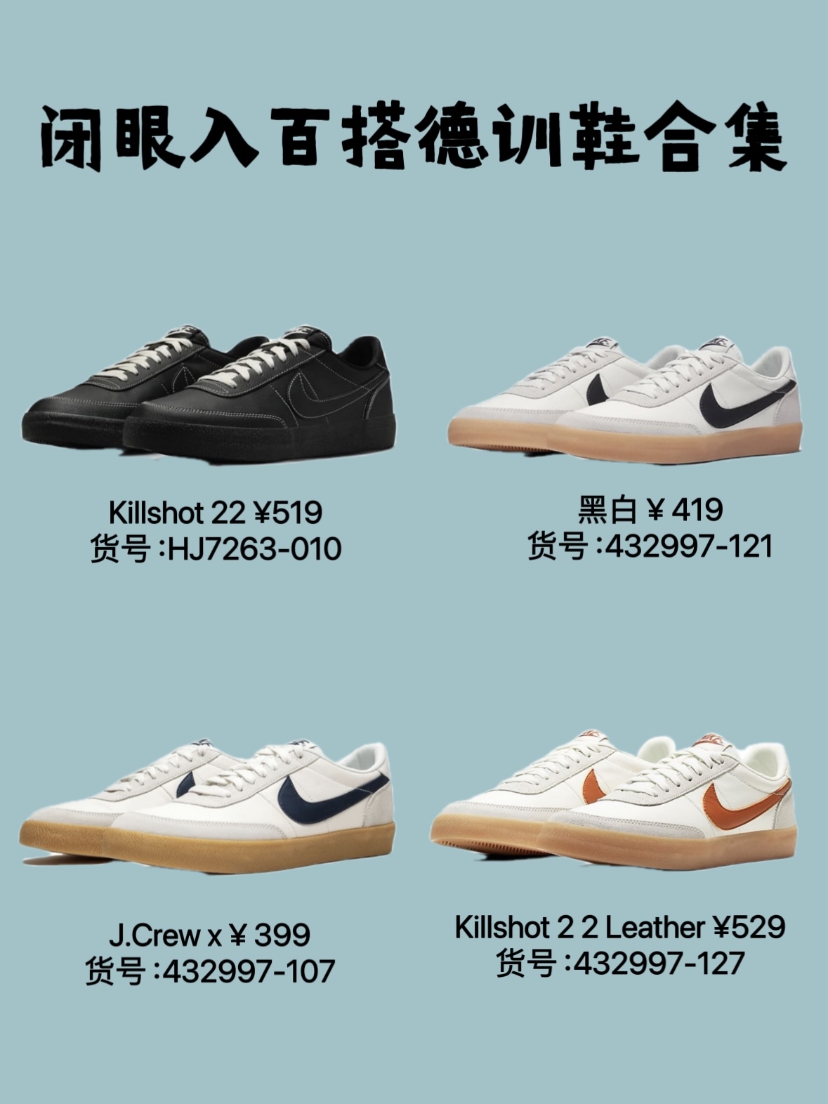 本篇笔记关联了Nike Killshot 2 德训鞋 板鞋 轻便缓震防滑耐磨舒适复古百搭 男款/帆白/橡皮黄/深藏青、Nike Killshot 2 德训鞋 板鞋 轻便缓震防滑耐磨舒适复古百搭 男款/帆白/亮绿/橡皮黄、Onitsuka Tiger Tokuten 德训鞋 板鞋 防滑耐磨舒适减震织物复古百搭一脚蹬 米白等商品,为用户提供真实的使用体验和购买参考。