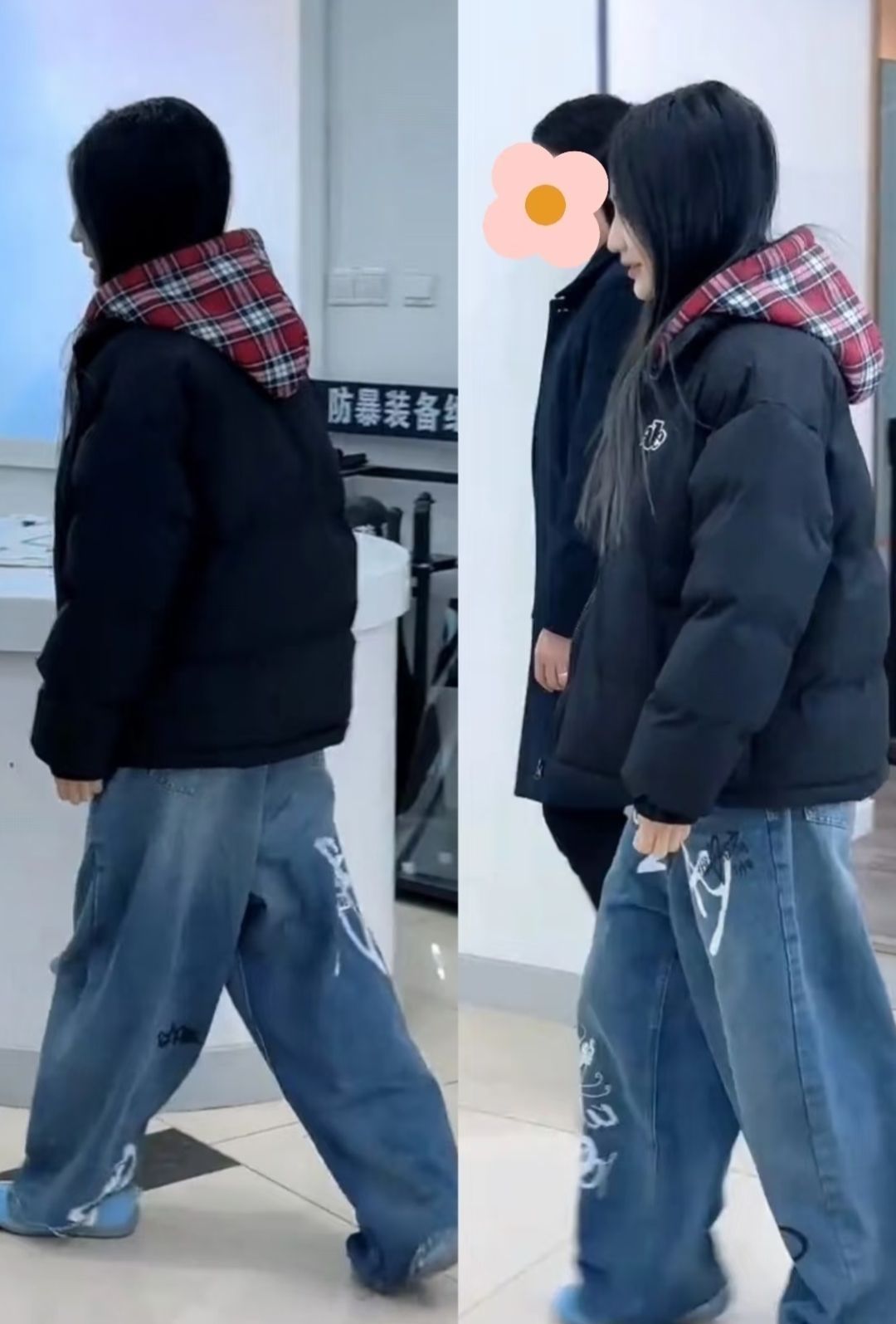 [慵懒的松弛感]袁一琦的慵懒风穿搭,黑色外套搭配宽松涂鸦牛仔裤,舒适又随性。格子帽棉衣增添一抹亮色,整体造型简约不失个性,完美诠释了冬日里的慵懒魅力。