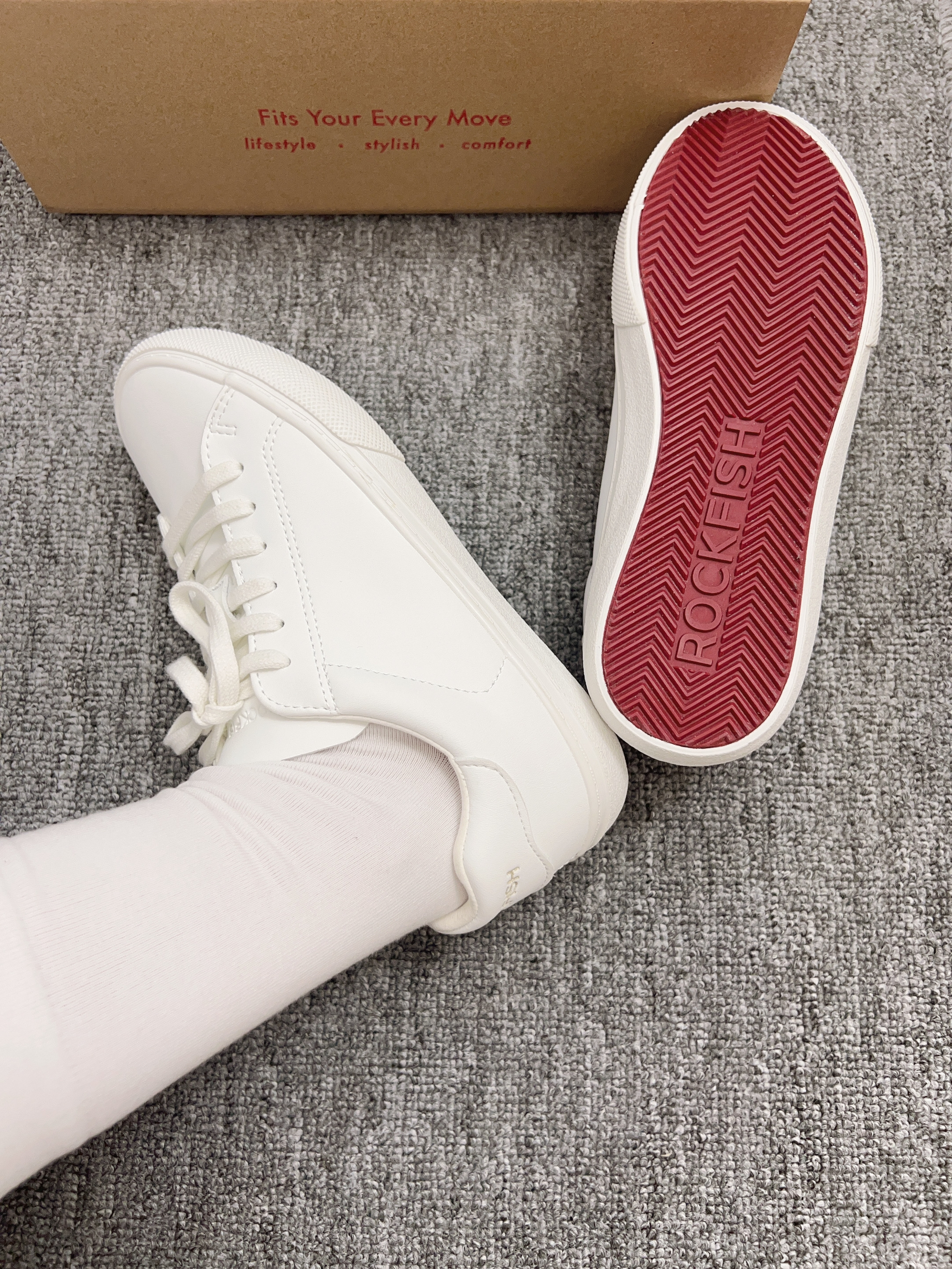 这不换季啦特别广东这个时候天气比较热了 当然要准备新的鞋子外出春游玩耍啦 这款鞋子白色简约干干净净 真皮的防水适合现在雨季 红色鞋底蛮好看的hin吸睛 日常通勤外出玩耍百搭不挑衣服