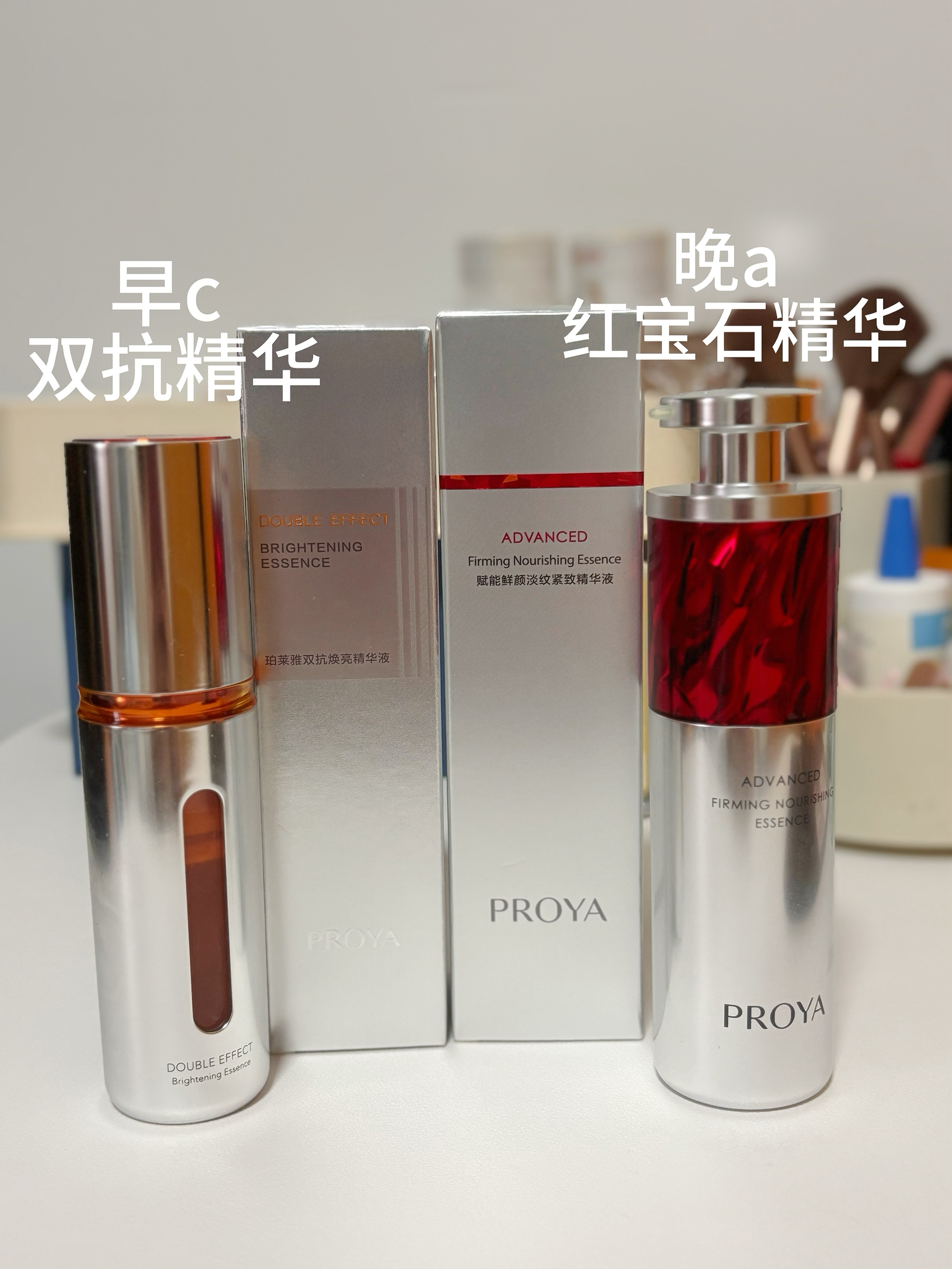 去年超火的早c晚a组合终于忍不住入手了,左边双抗右边红宝石,每天对着电脑手机脸黄得像土?已经用了一个星期了个人觉得效果还不错👍,两百多有这效果真的很不错了! 💡搭配建议: 晨间:双抗精华(抗氧打底)+防晒 夜间:红宝石精华(修护抗皱)+保湿面霜 注意:建议首次使用红宝石需建立耐受(隔天使用)
