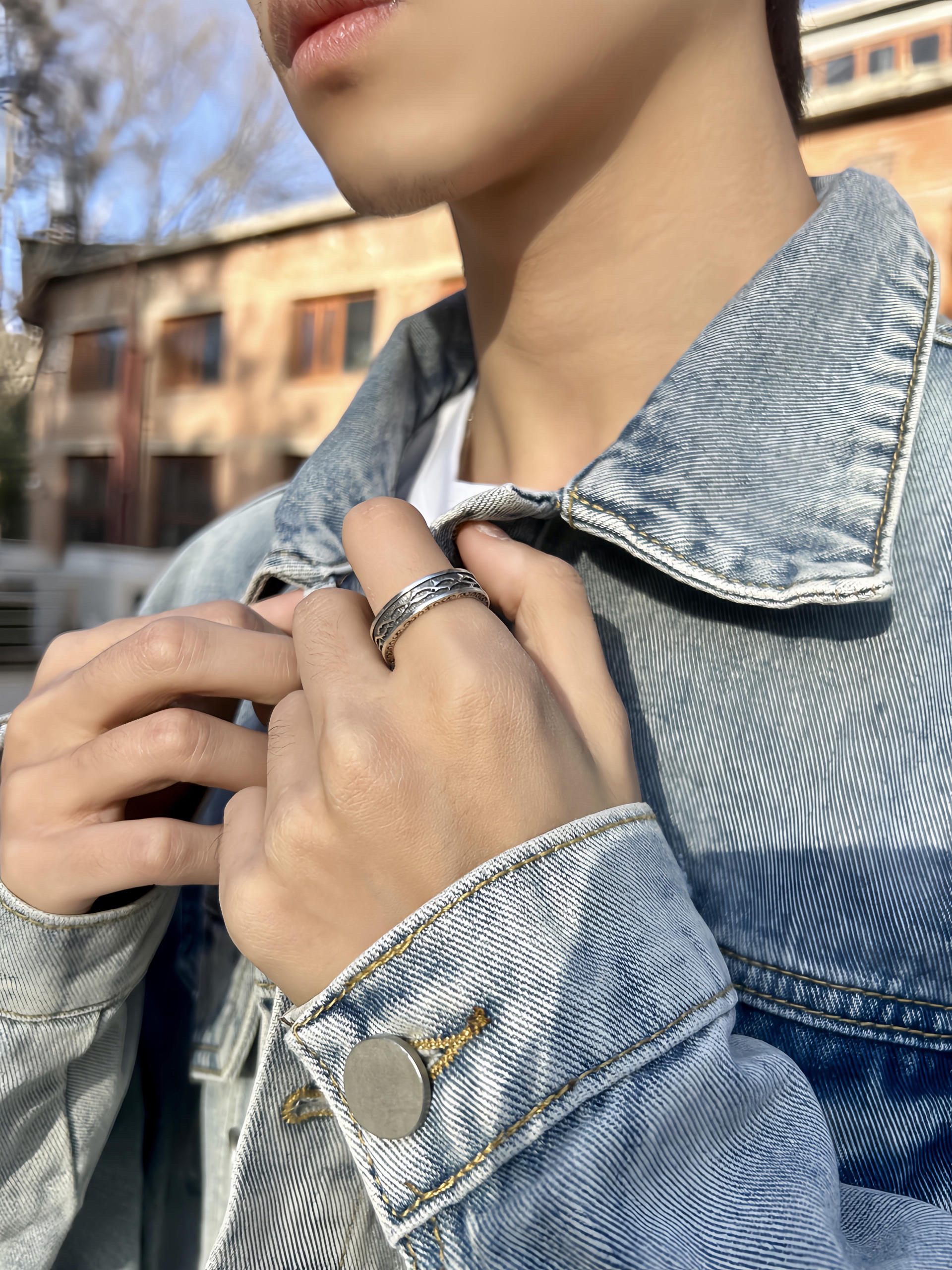 质感牛仔➕嘻哈配饰🟰行走的顶男 (别问为什么穿牛仔要戴银饰) 问就是堆叠帅气Buff🆒 廓形水洗牛仔外套穿在身上简单帅气 灵魂暴击:荆棘缠绕戒指 看似张牙舞爪却是十分精致 每一道雕琢的痕迹都透露着一丝故事感 做旧处理让复古的味道愈来愈重 戴着玩意儿就别想低调啦! Real的帅气从不用刻意宣告存在感 而且谁说户外不可以帅帅气气呢 要的就是这种漫不经心的帅气