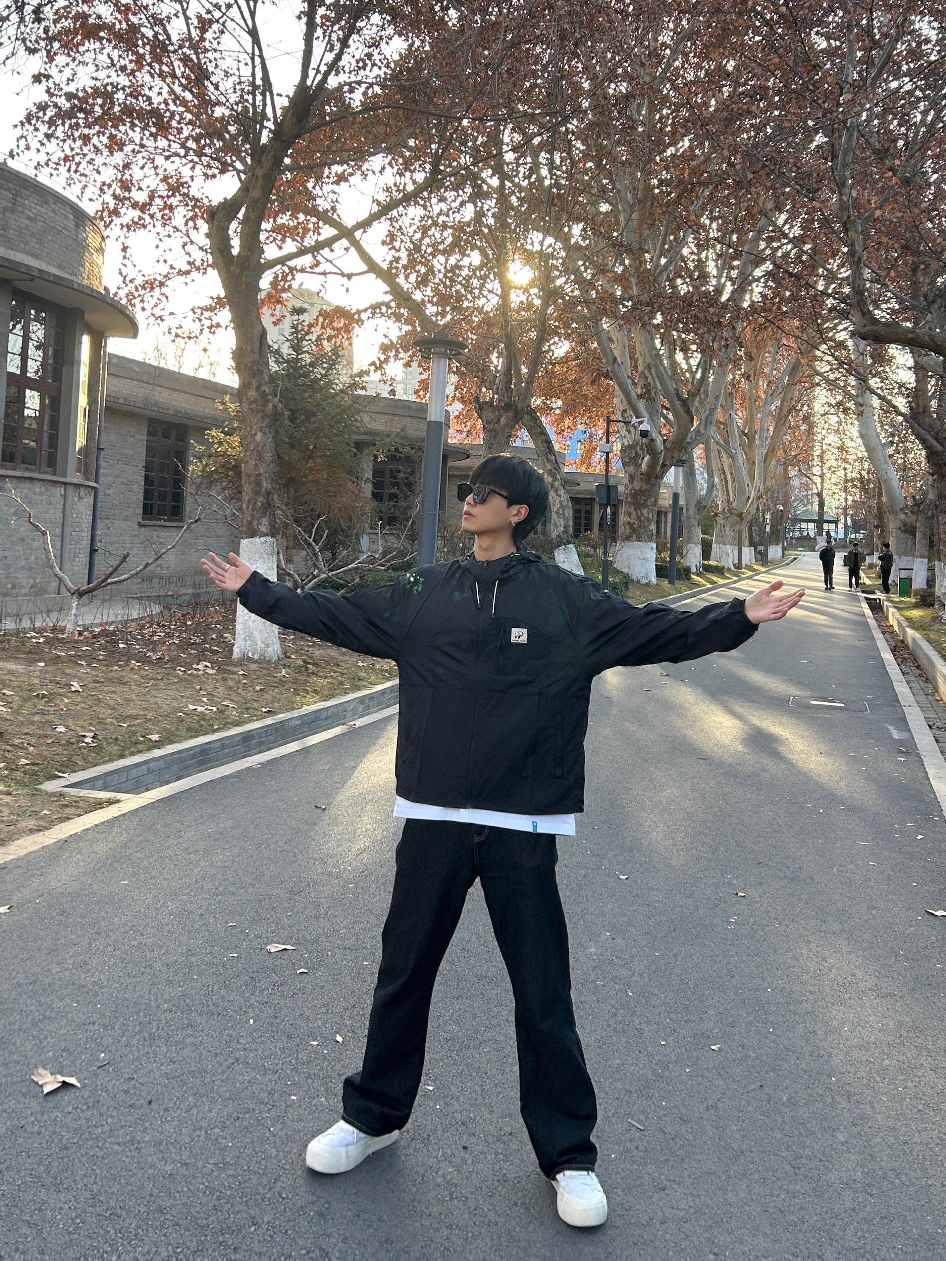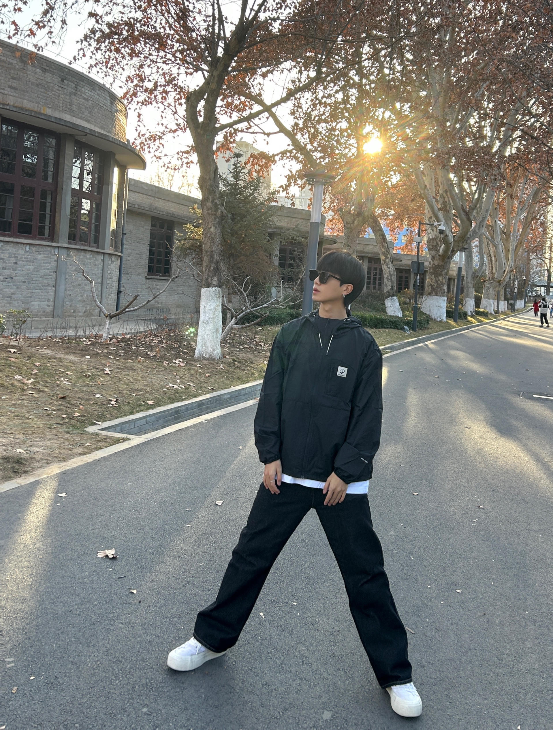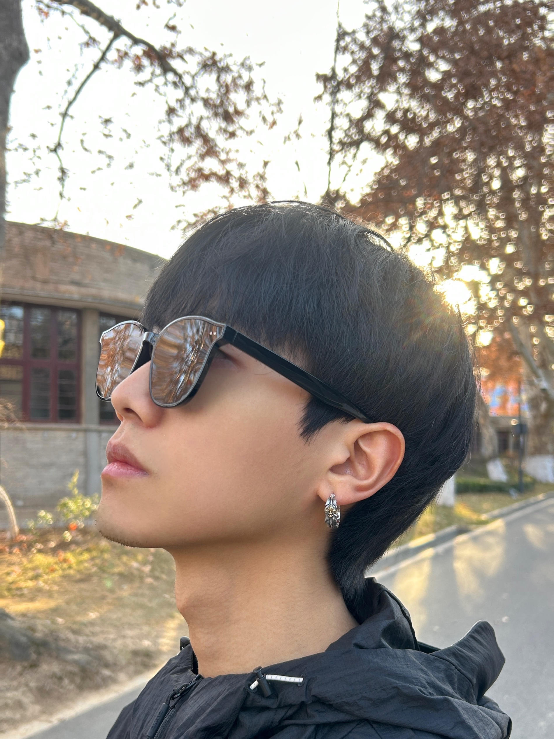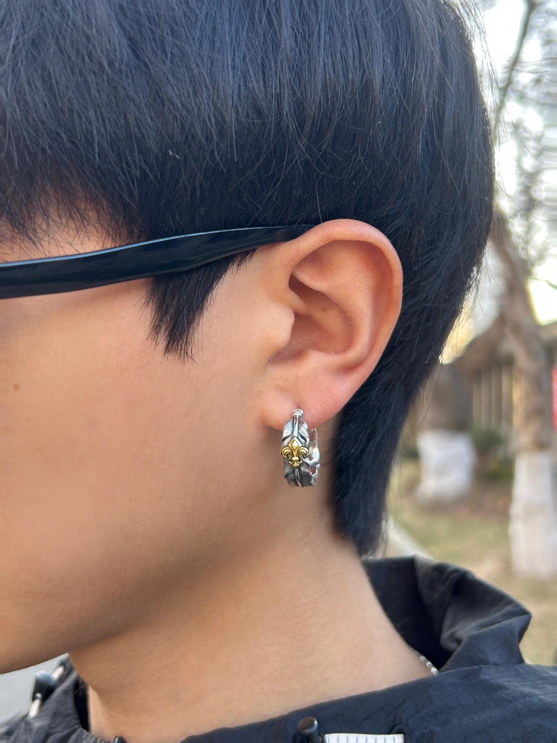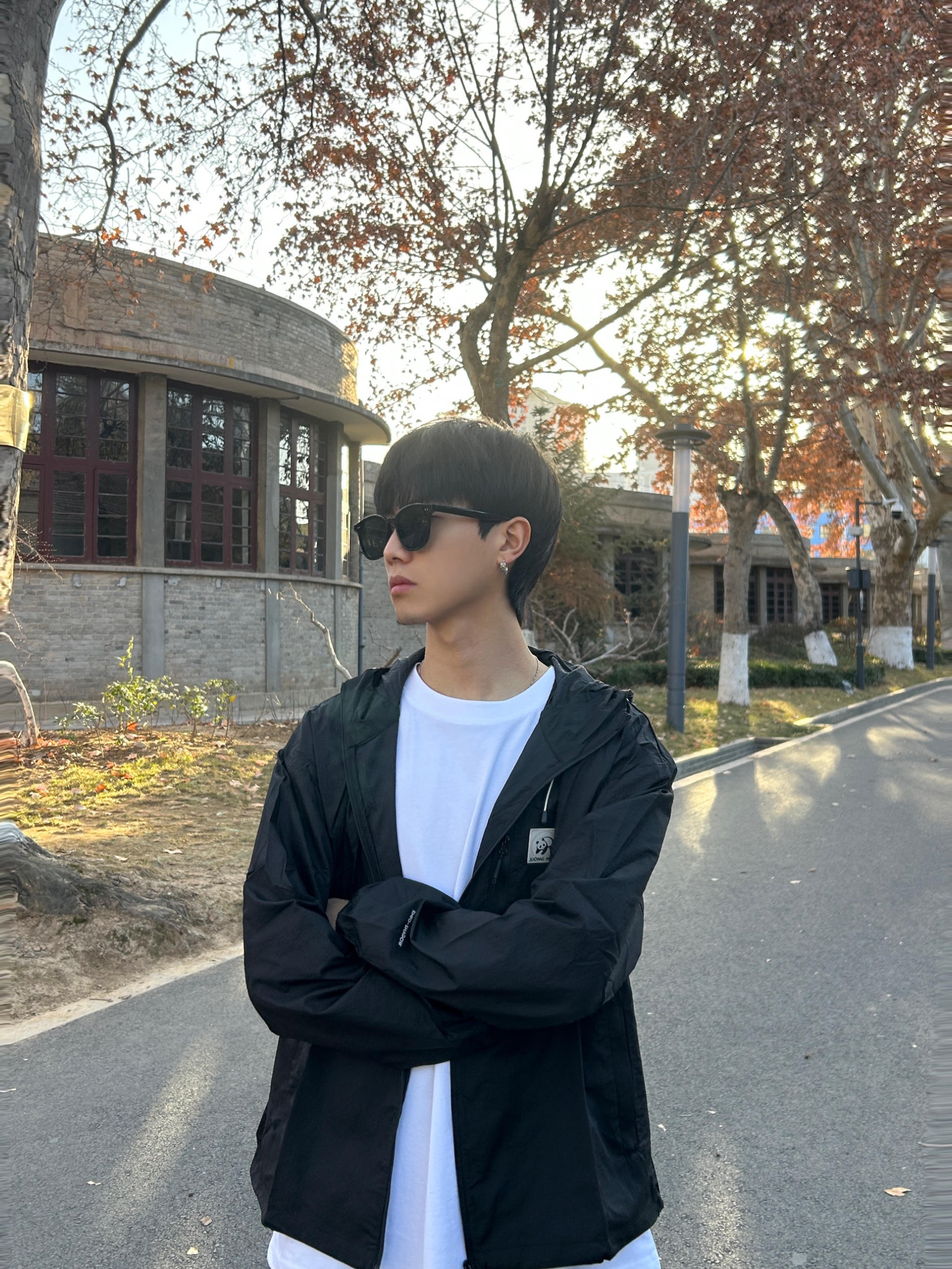 黑外套➕「银色羽毛鸢尾花耳环」 从头到脚都散发着复古感 手工制作的羽毛纹路真的很精致 还说不说都比我的下颌线还清晰了 搭配金色的鸢尾花⚜️质感真没得说 耳环上面的做旧感和金属感配合的很好 而自己作为一个懒人 能做的就是穿好干净的衣服了 这个季节穿防晒衣我感觉刚刚好 既可以有点温度安全感还可以防晒 而且这件衣服的样子很像夹克冲锋衣 幸亏我还有一点自己的小心思 好看的配饰也可以为穿搭加分不少呢