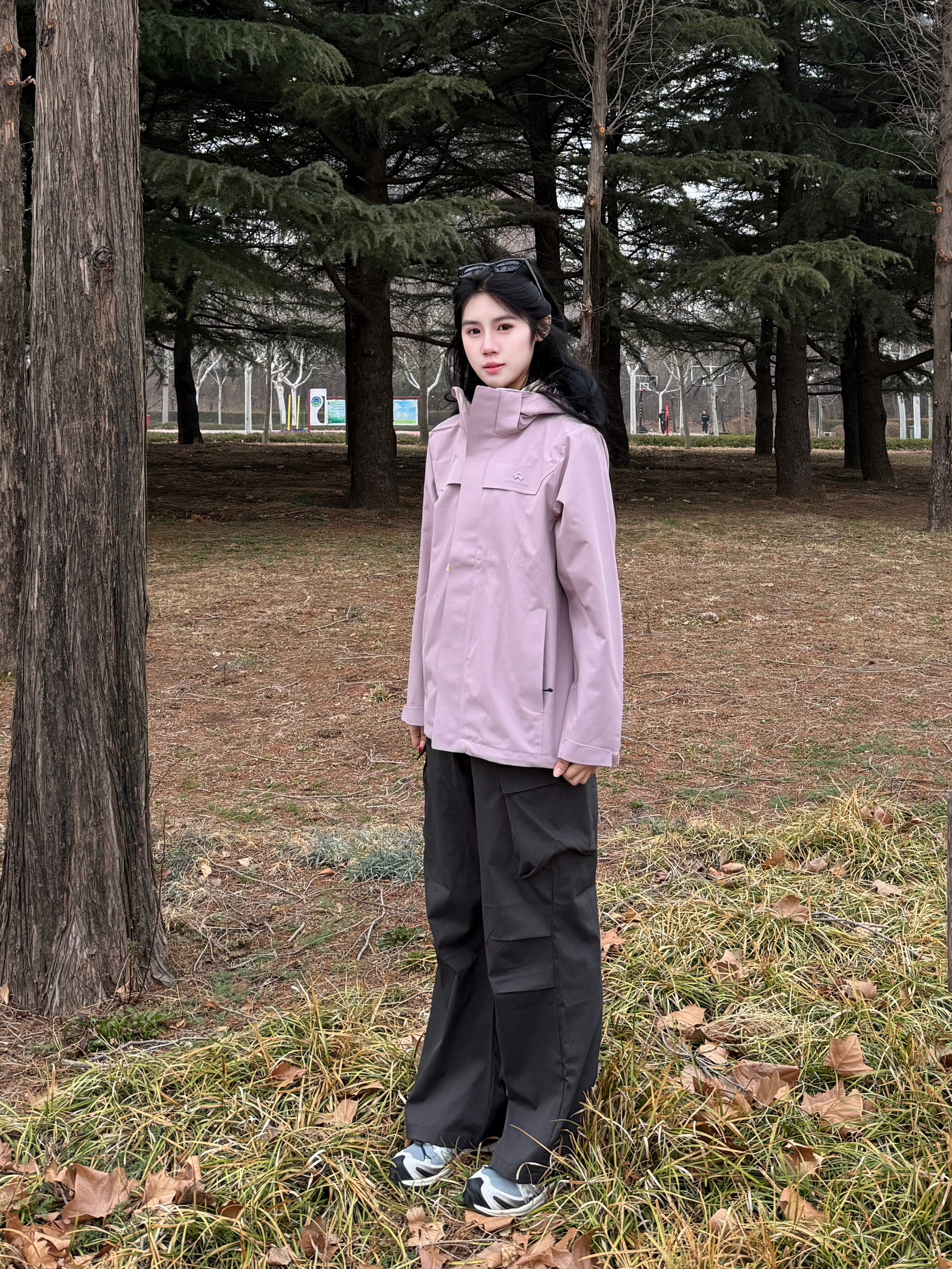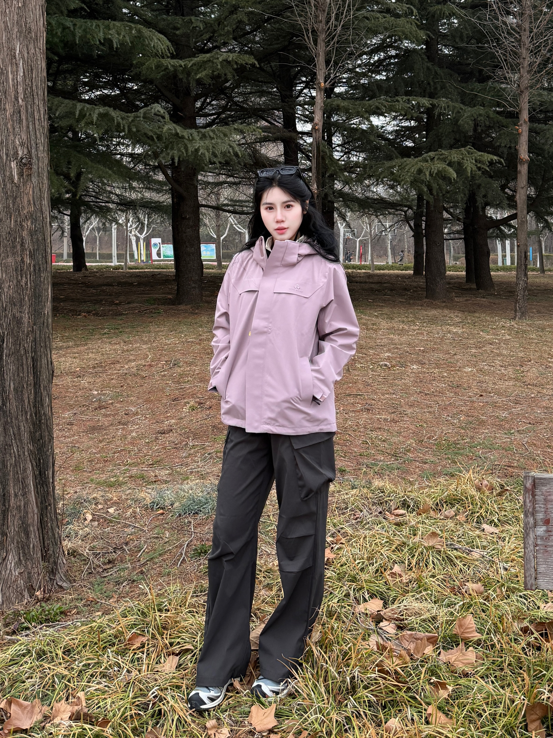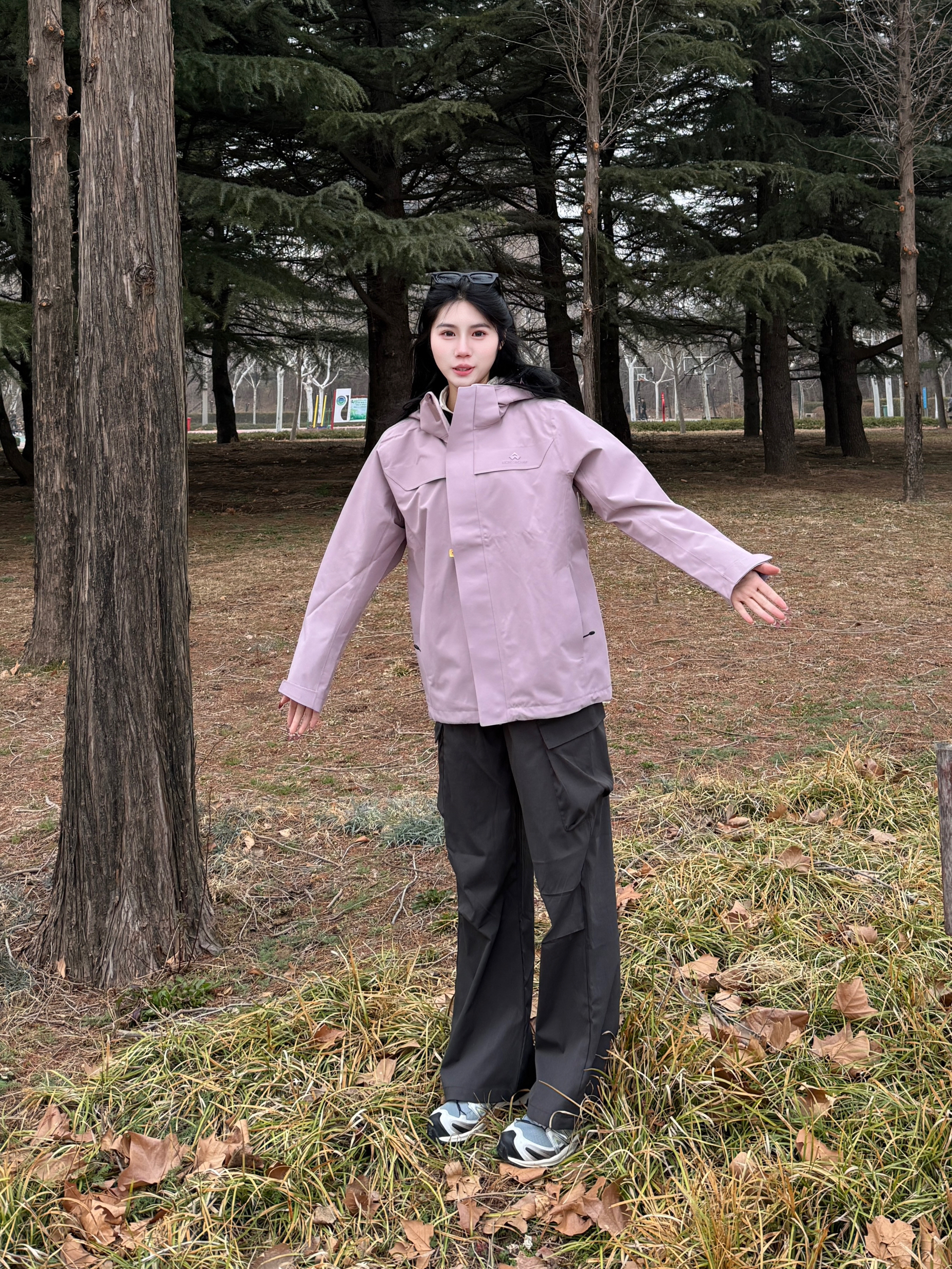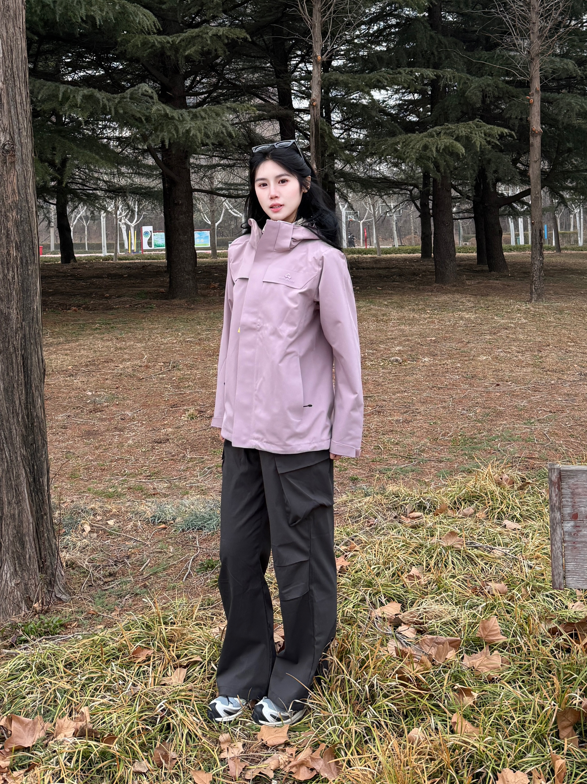 Hi 今天是春日户外运动系列 春天总要去户外走一走 香芋紫好适合女孩子穿 这一件显得温温柔柔又很酷 三合一的设计穿脱也方便 面料防风防水又保暖 户外运动带这一件就够了
