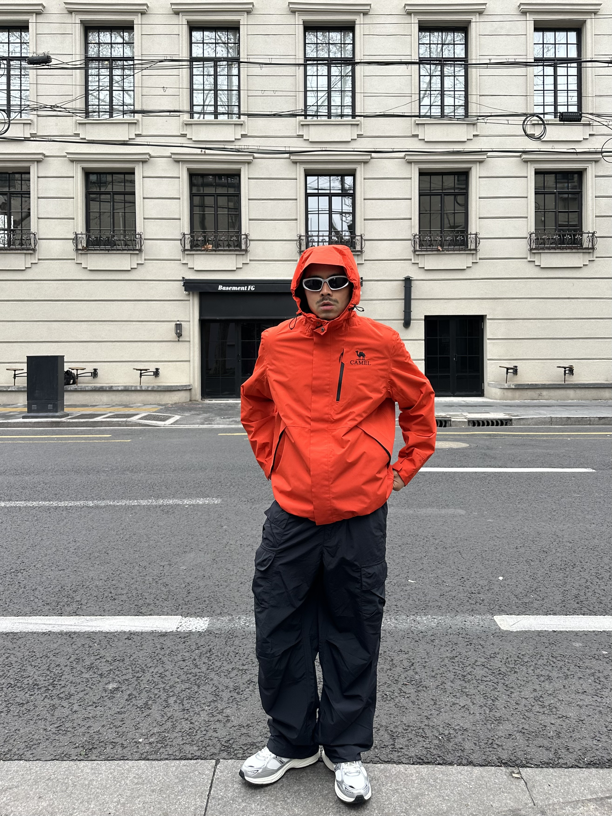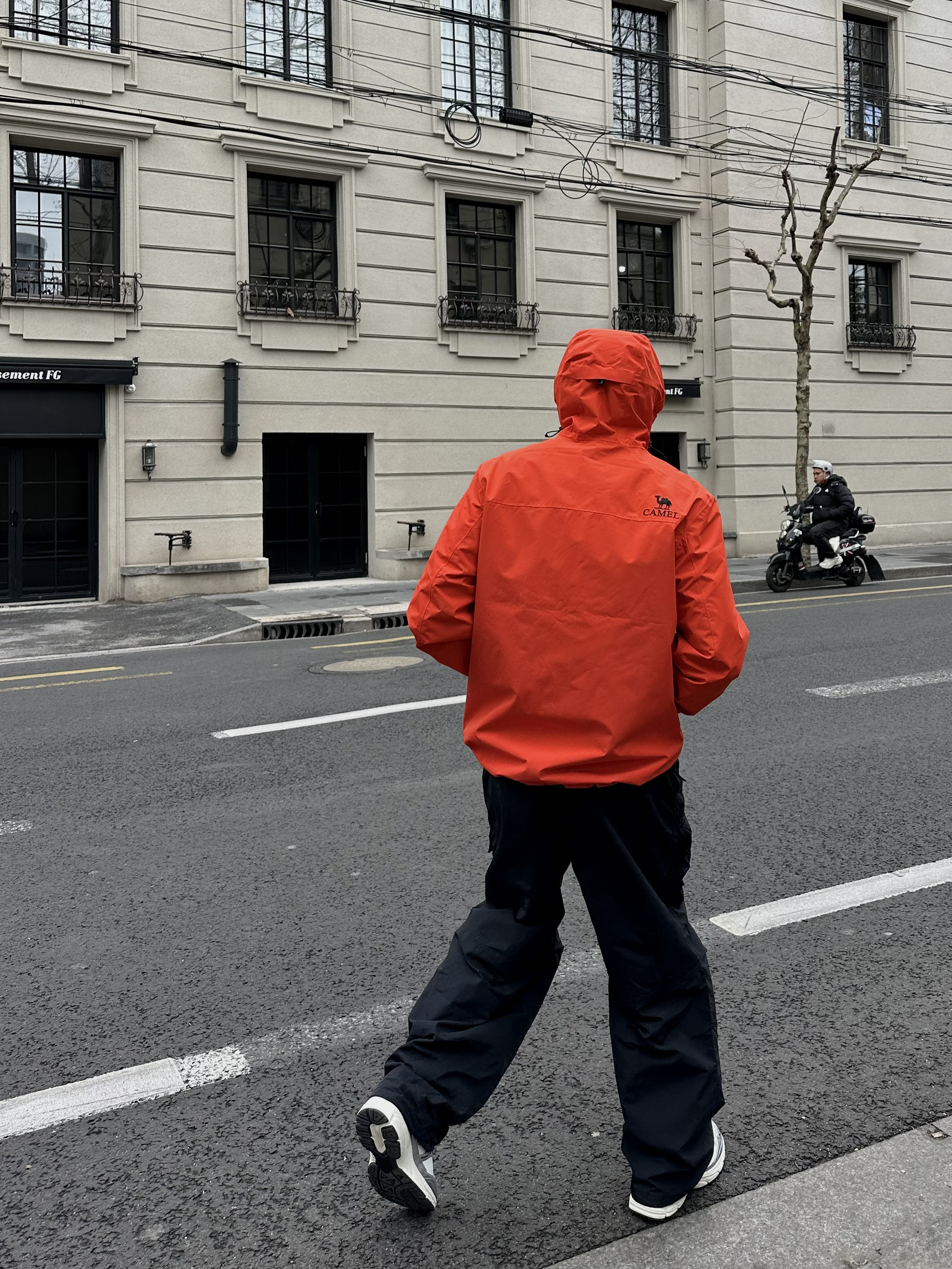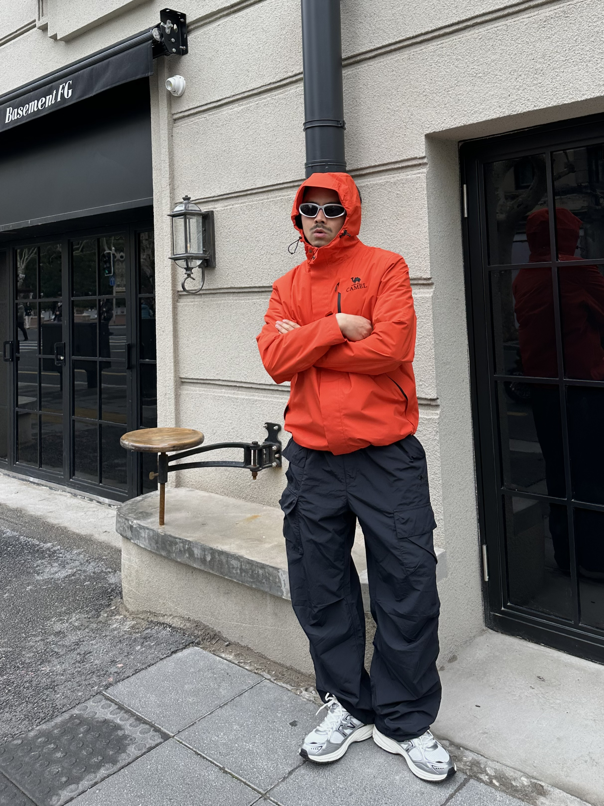 硬壳冲锋衣应对城市通勤也太适合 美拉德的橙色很有street fashion范儿 黑色的千篇一律穿久了也蛮单调的 亮眼的配色可以给城市里的ootd 增添些更多搭配选择😎