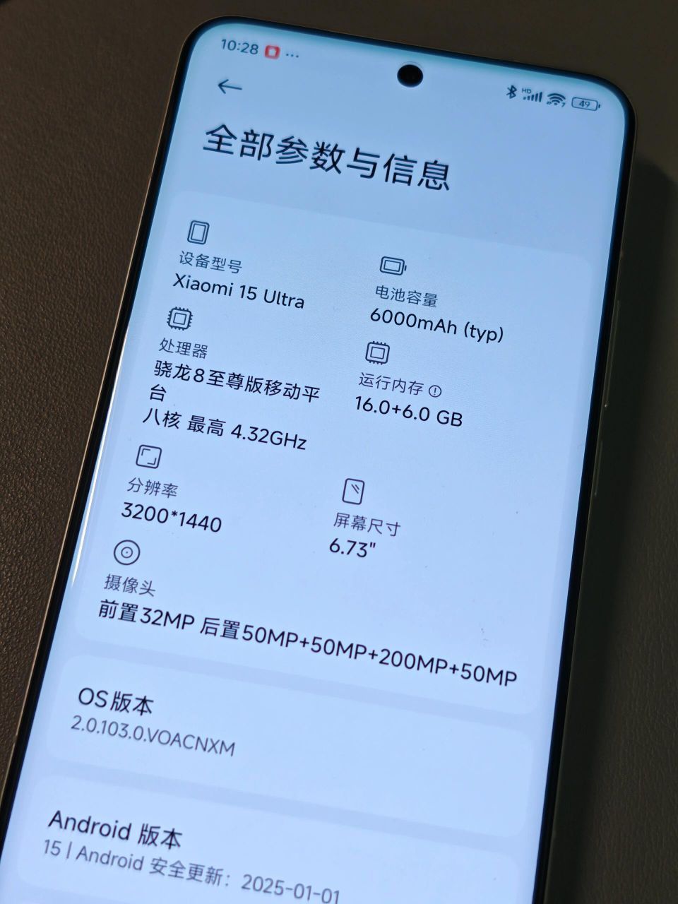 首发入手,目前是ultra的空窗期,小米独一家 手上的15pro手感很好,背面deco也比较和谐 但是照相实属一般 经历过12sultra.13u和14u 小米继续秉持没有设计就是好设计的理念 背面大圆圈,模组的排列,很随性 个人觉得肯定没有15pro的好看 素皮拼接的质感就这样的,如果不是为了辨识度 毫不犹豫选择白色磨砂质感 屏幕继续万年不变6.73,没什么好说 扬声器又变为单面开孔了,效果肯定...