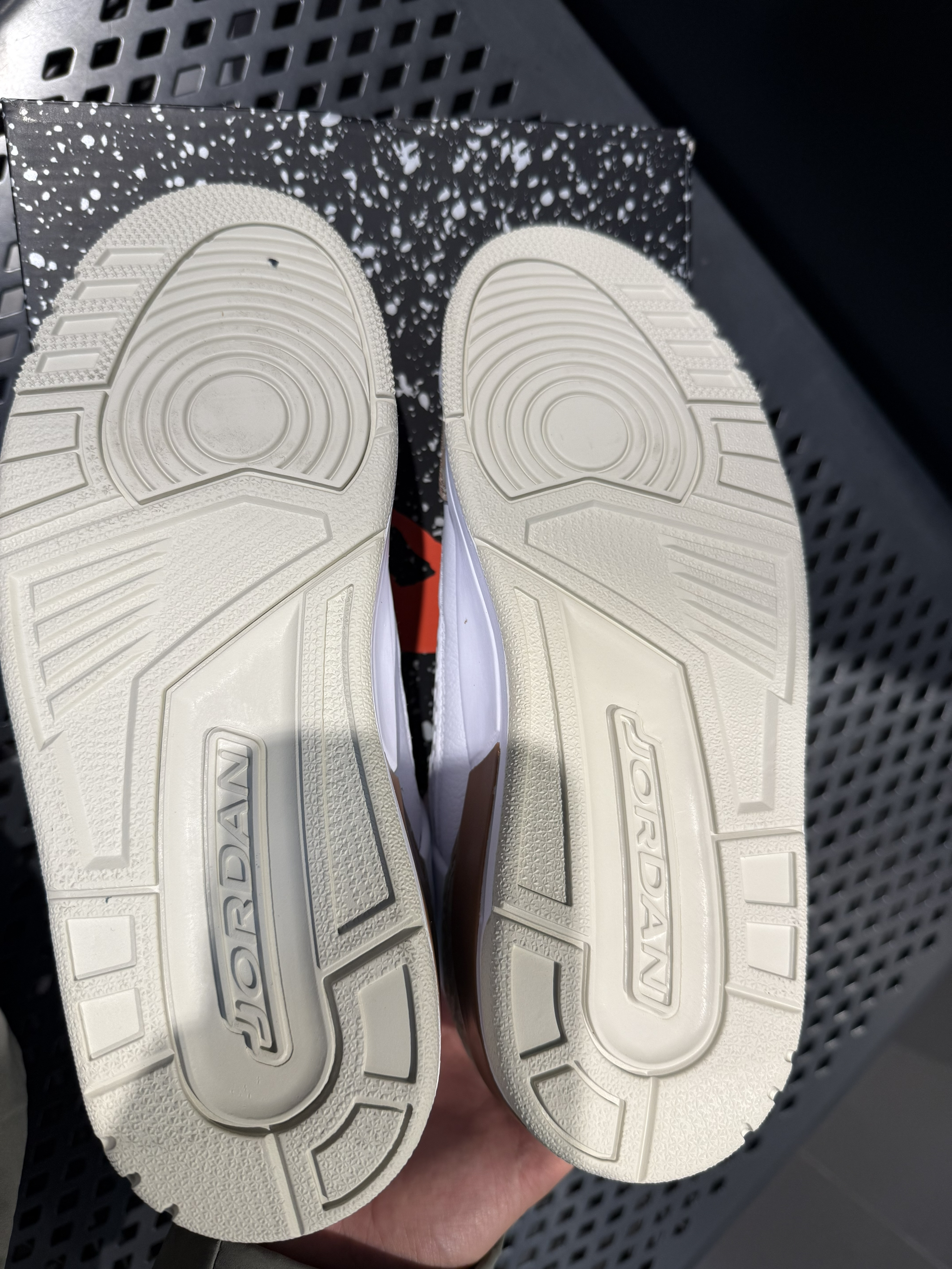 整体配色是一个白棕色爆裂纹🎉 粉色logo进行点缀🦶 主打一个简约而不简单该有的细节也是要有的⚡️ 虽然说有气垫但是整体脚感没有很软 相反它的颜值是真的高🪝 鞋里填充物较为充实不用担心不舒服🍚 整体穿上显脚小⬇️ 鞋底采用橡胶底防滑耐磨🍝