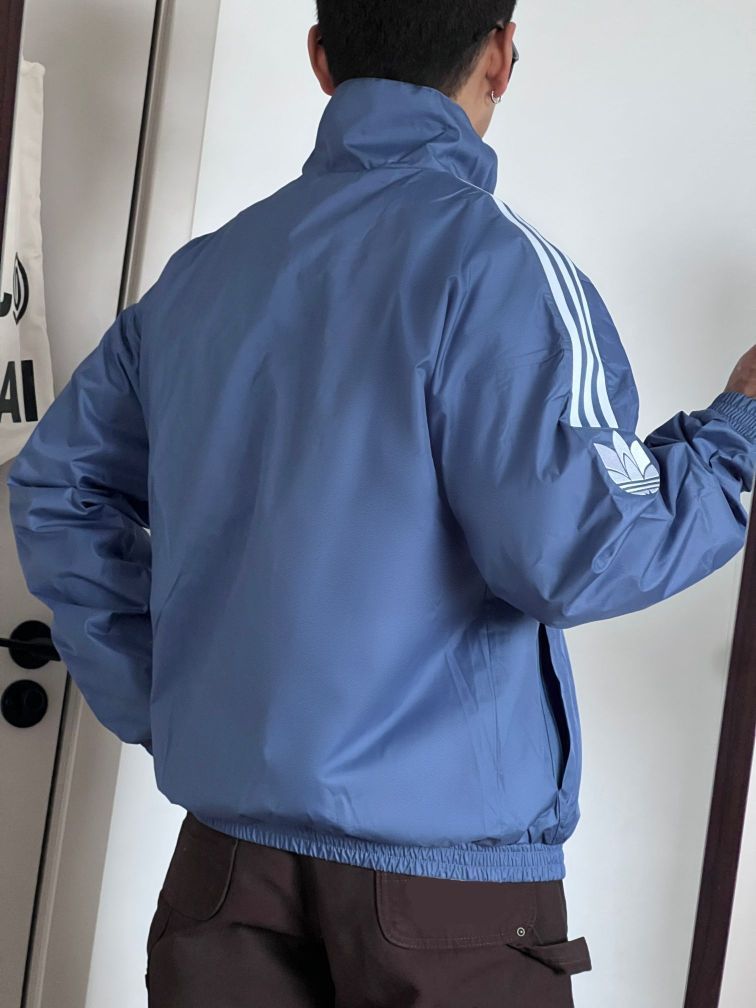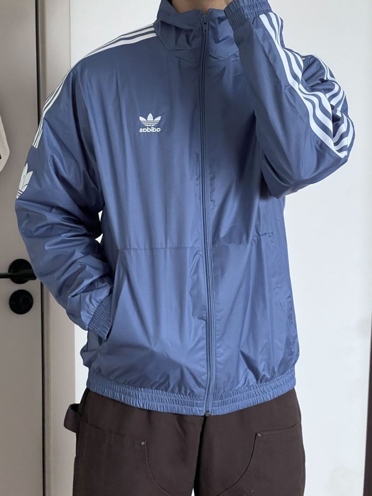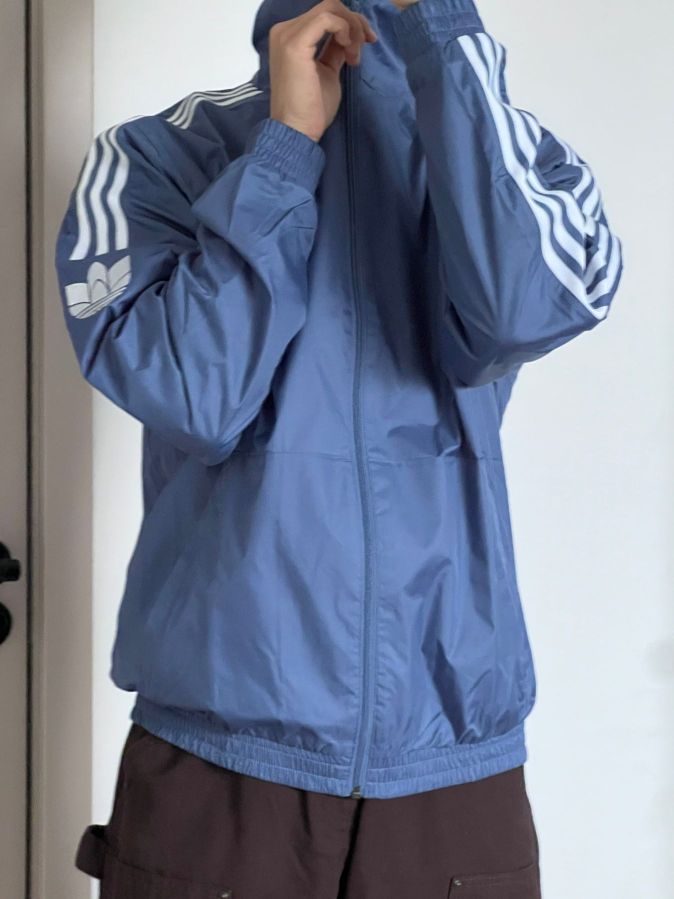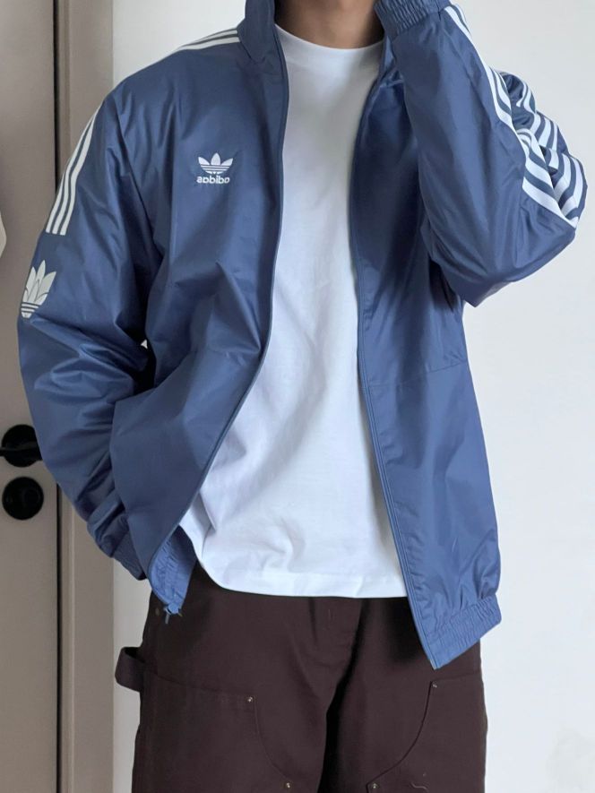 阿迪蓝色运动外套,蓝白配色的设计,简约又时尚,关键是很百搭,满满的少年感!