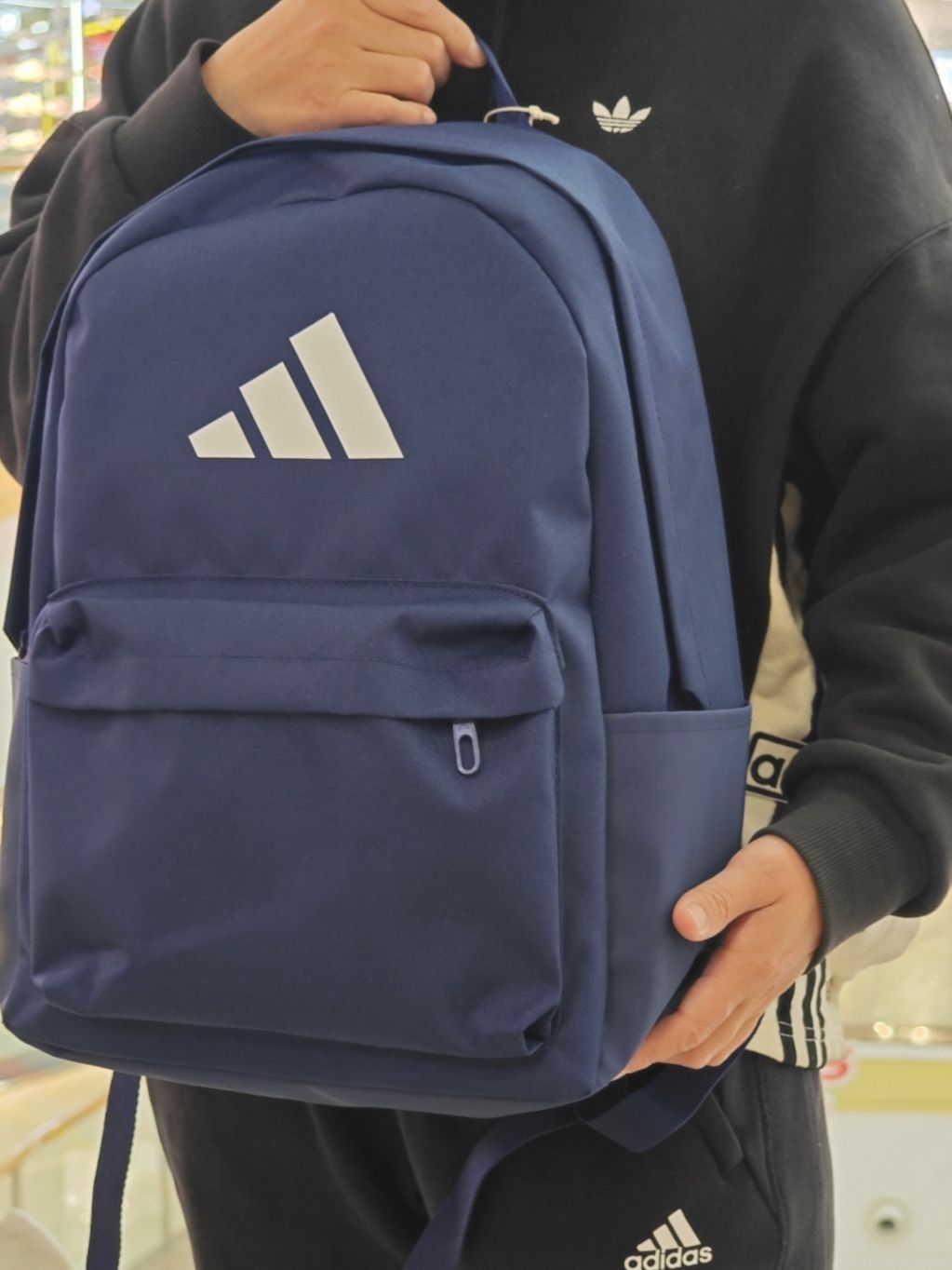 这款阿迪双肩包简直是校园潮男的标配!深蓝拼白配色低调又高级,经典三条纹徽标辨识度拉满,背上它走在校园里回头率爆表🌟 🔥容量超大,能装下课本、笔记本、水杯等各种日常用品,上课自习两不误📚 涤纶聚酯纤维材质防水耐磨,下雨天也不怕淋湿,耐用度MAX💪 🎨设计简约时尚,肩带加宽设计背起来舒适不累,长时间使用也不觉得累💼 细节处理到位,走线工整,质感十足,完全对得起它的价格💰 推荐给所有追求颜值和实用...