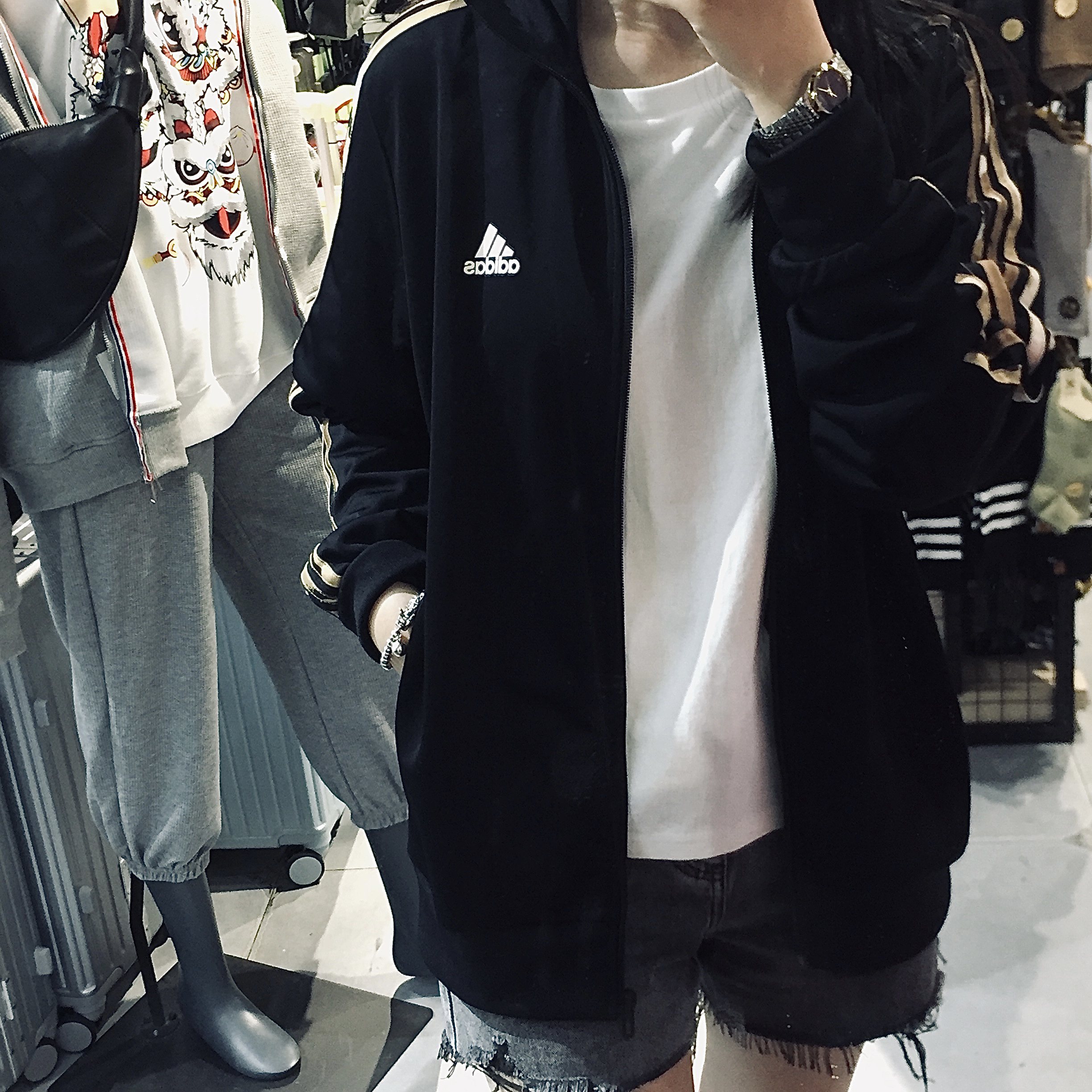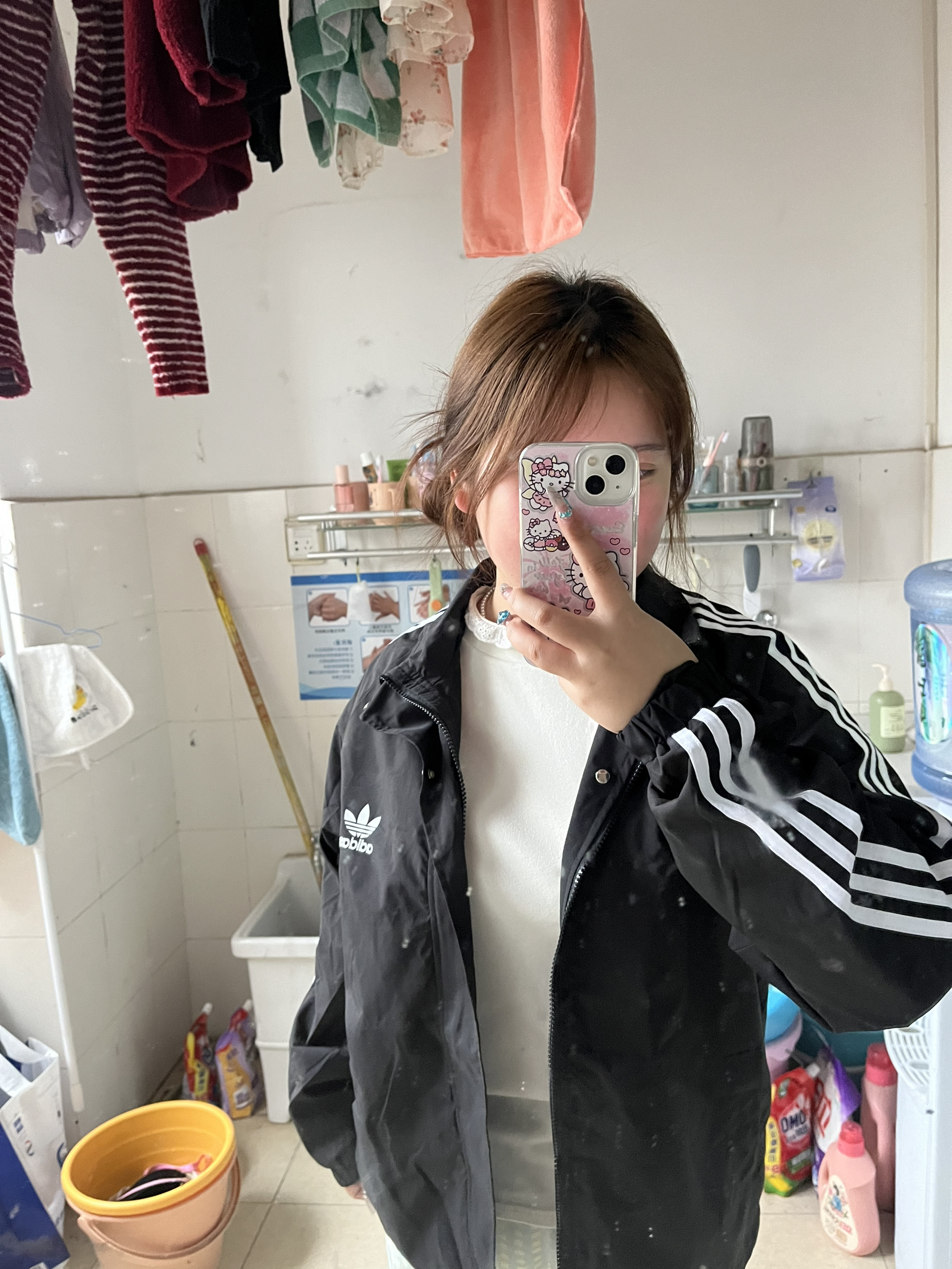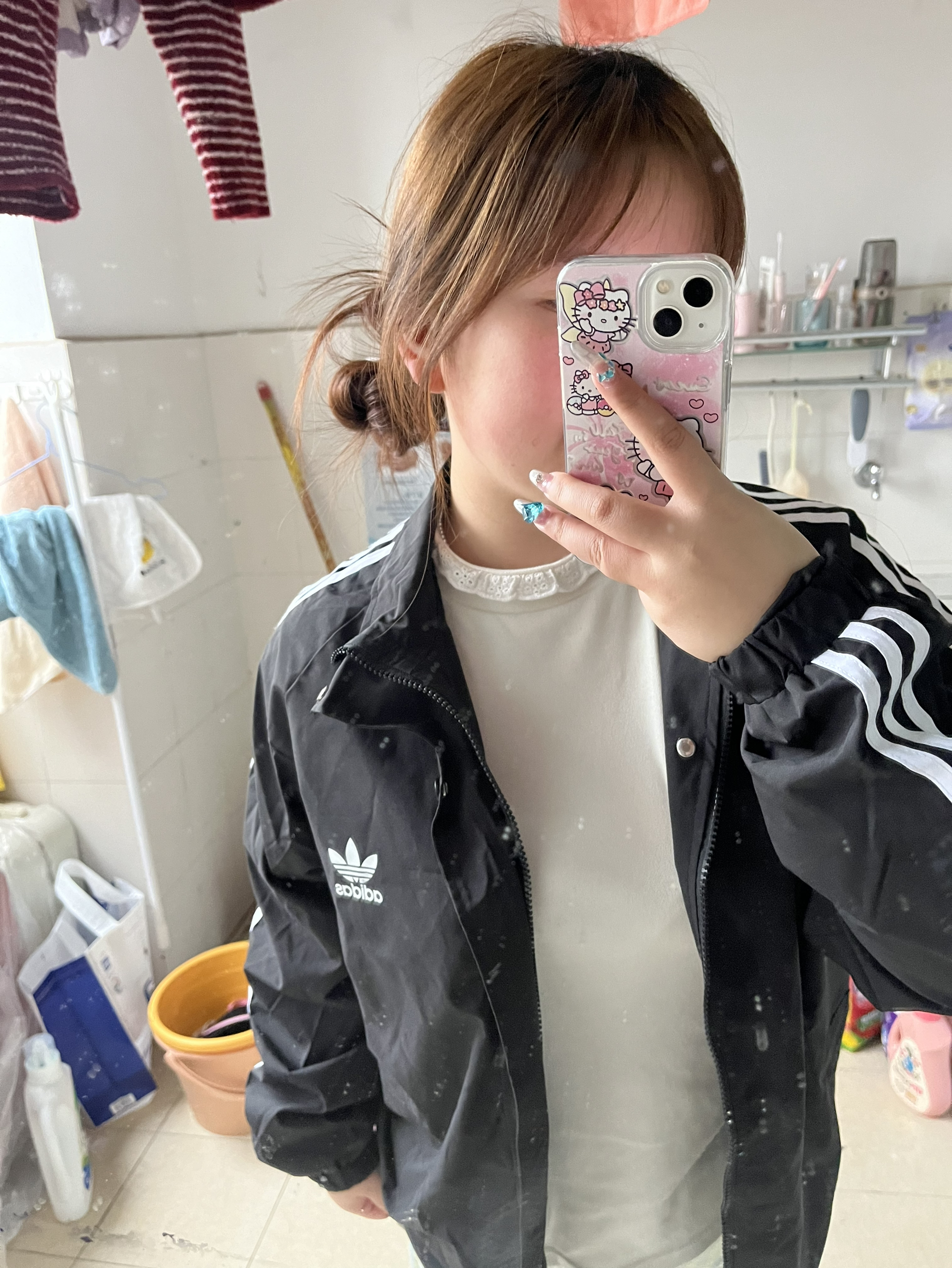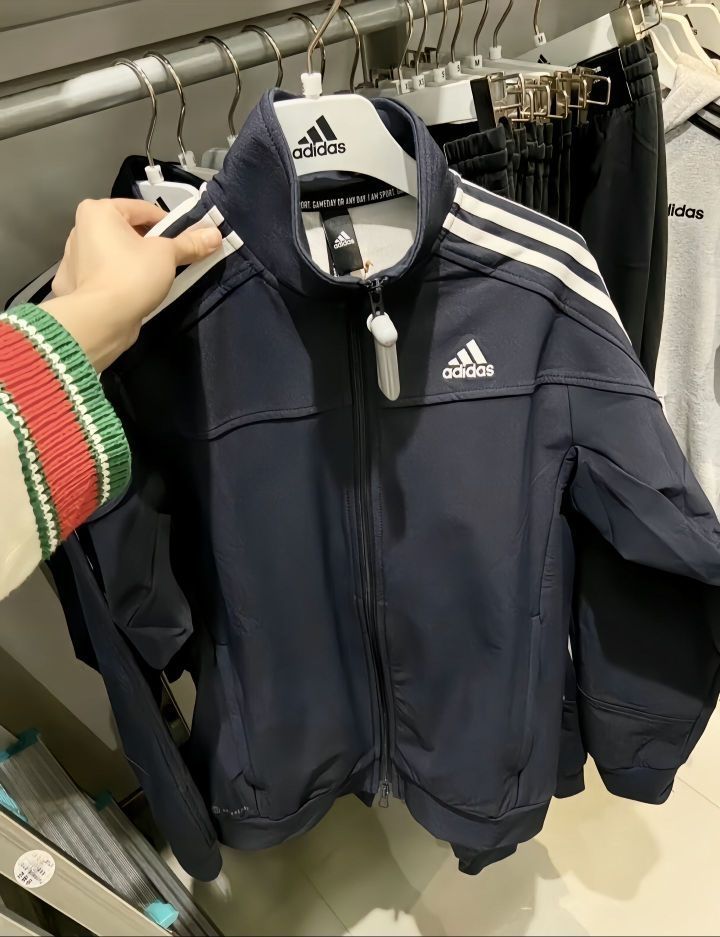 明星同款阿迪外套~ 适合休闲穿,也可当冲锋衣穿 上身很帅气~看宣传图以为不怎么样没想到 上身显瘦!男生女生宝宝们都合适~