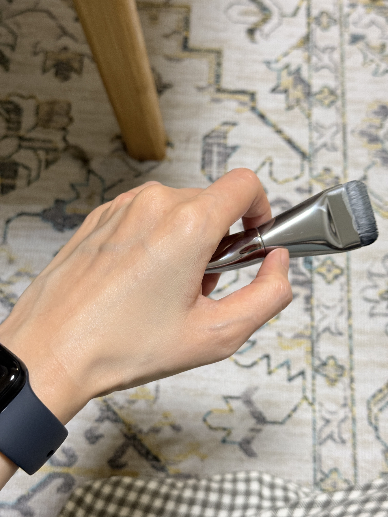 先给粉底刷用乳液开刷 用粉底刷在脸上扑开粉底 再用粉扑拍服帖✅