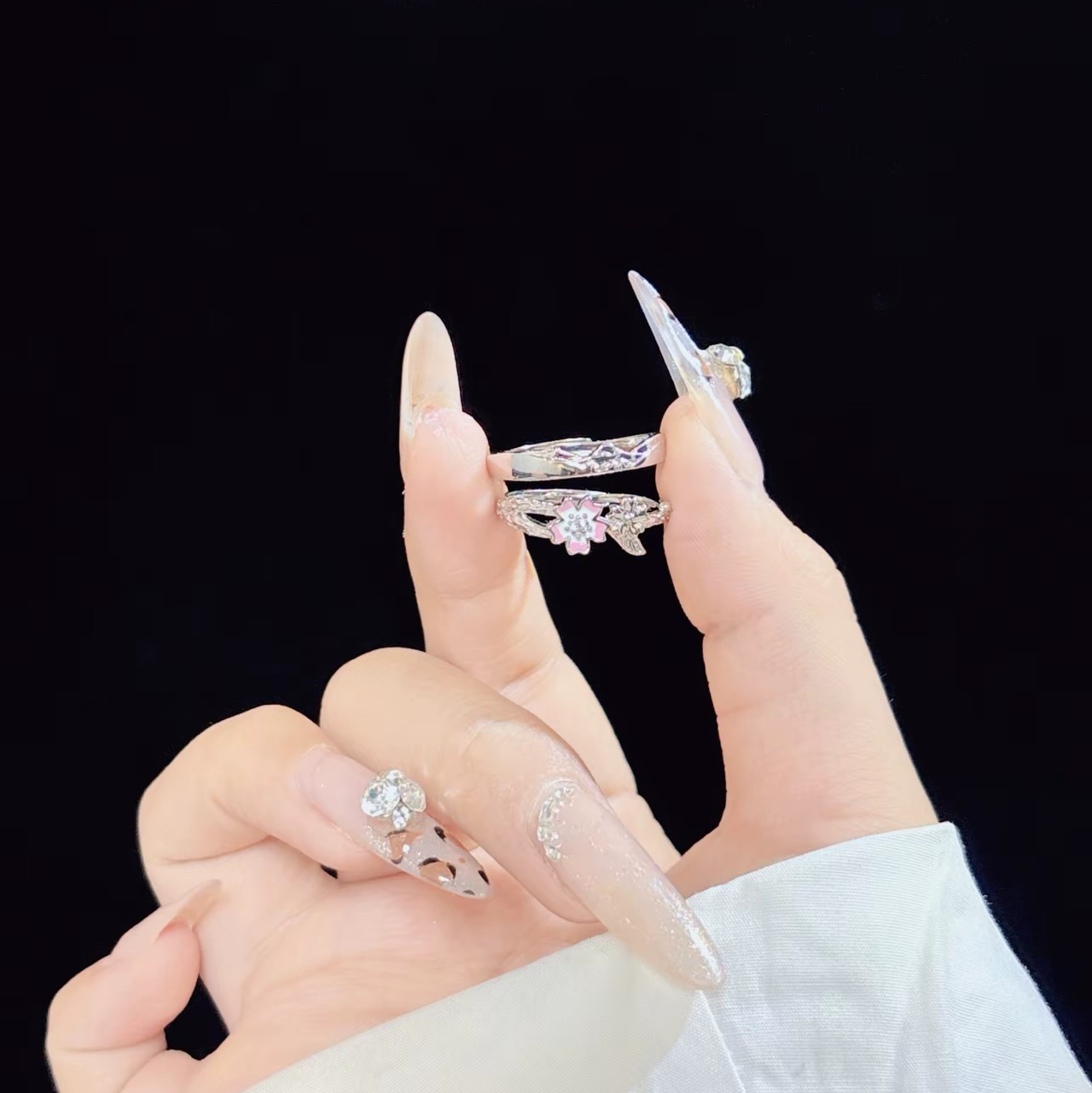 说真的~谁谈恋爱不喜欢有仪式感的东西啊.,我觉得在恋爱的不同阶段戴不同的戒指选了款拾爱的对戒愛愛,精致有设计感的纯银材质的不用担心会掉色而且都是活口设计,可调节个人比较喜欢 ,富士山樱花那对女戒真嘟精美! 图片来源于@酸甜甜