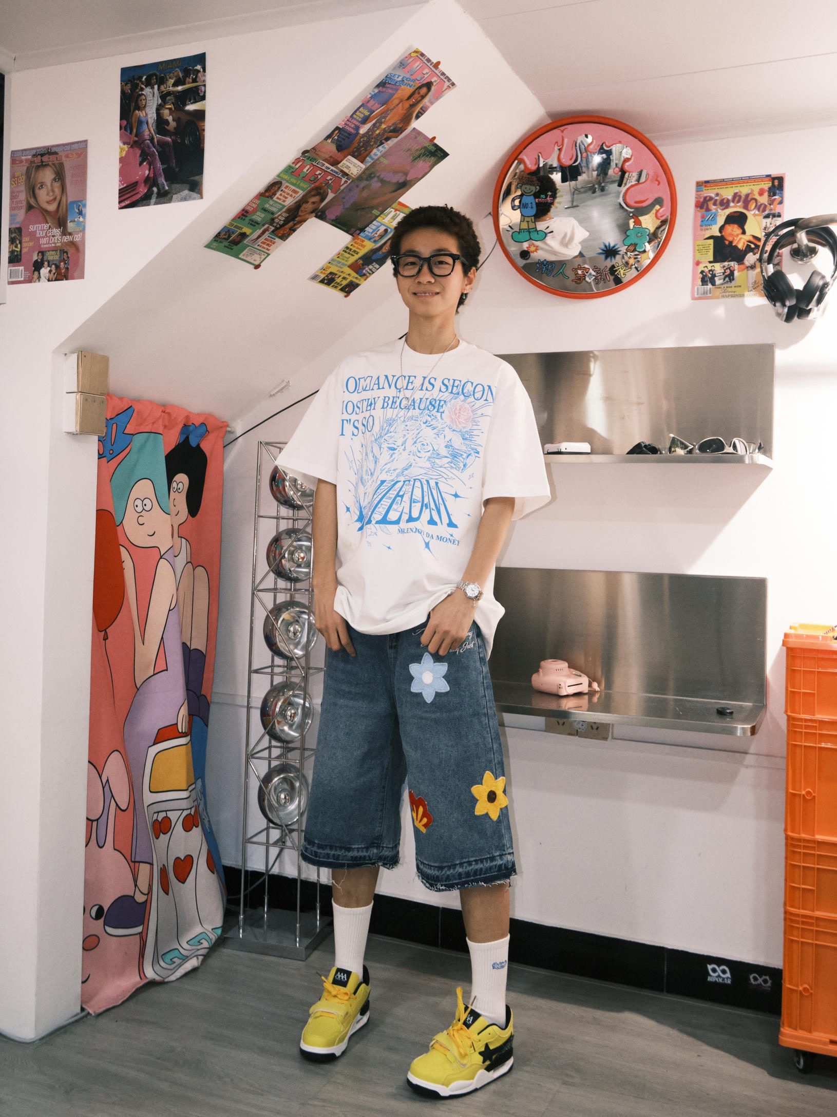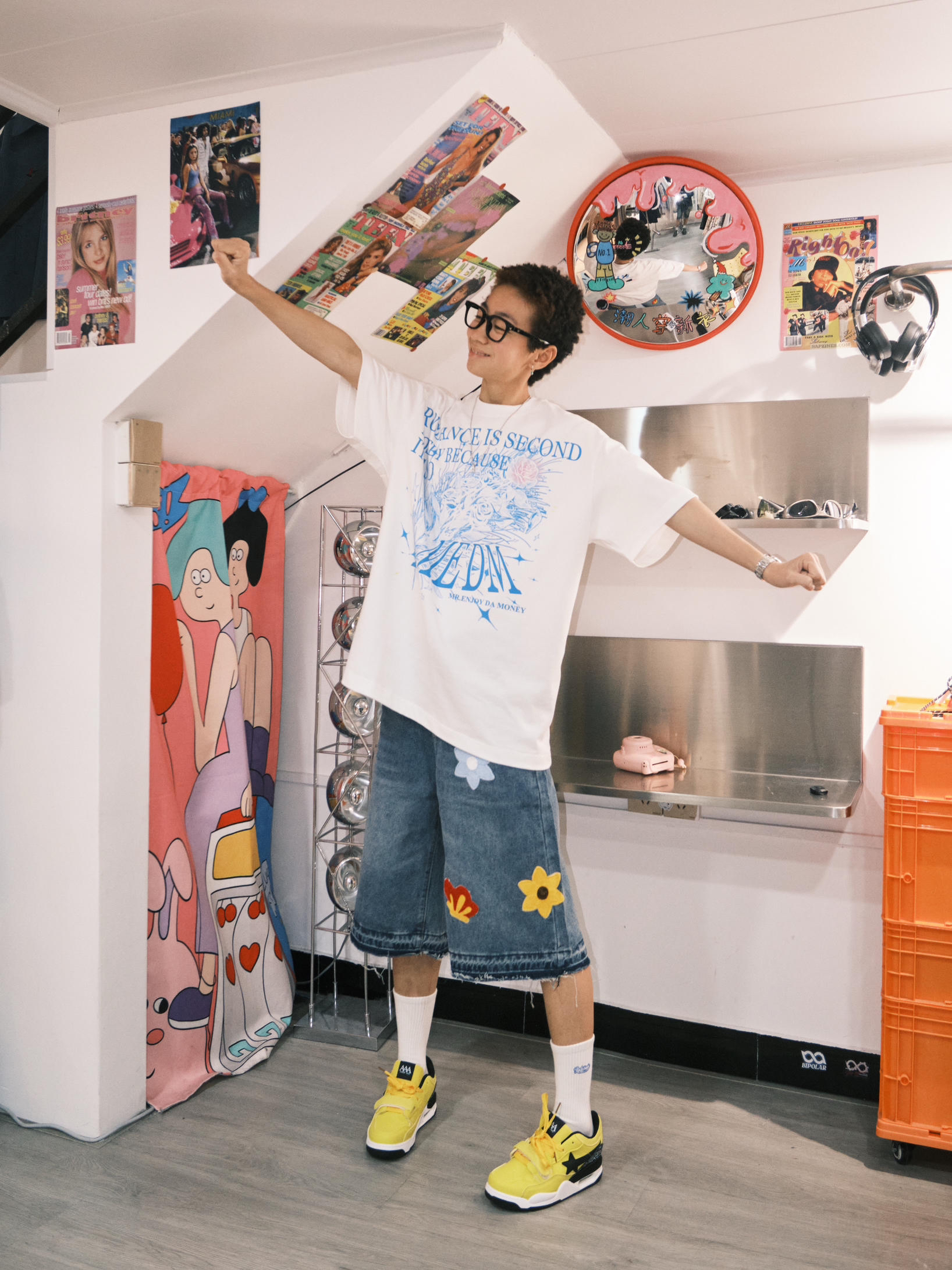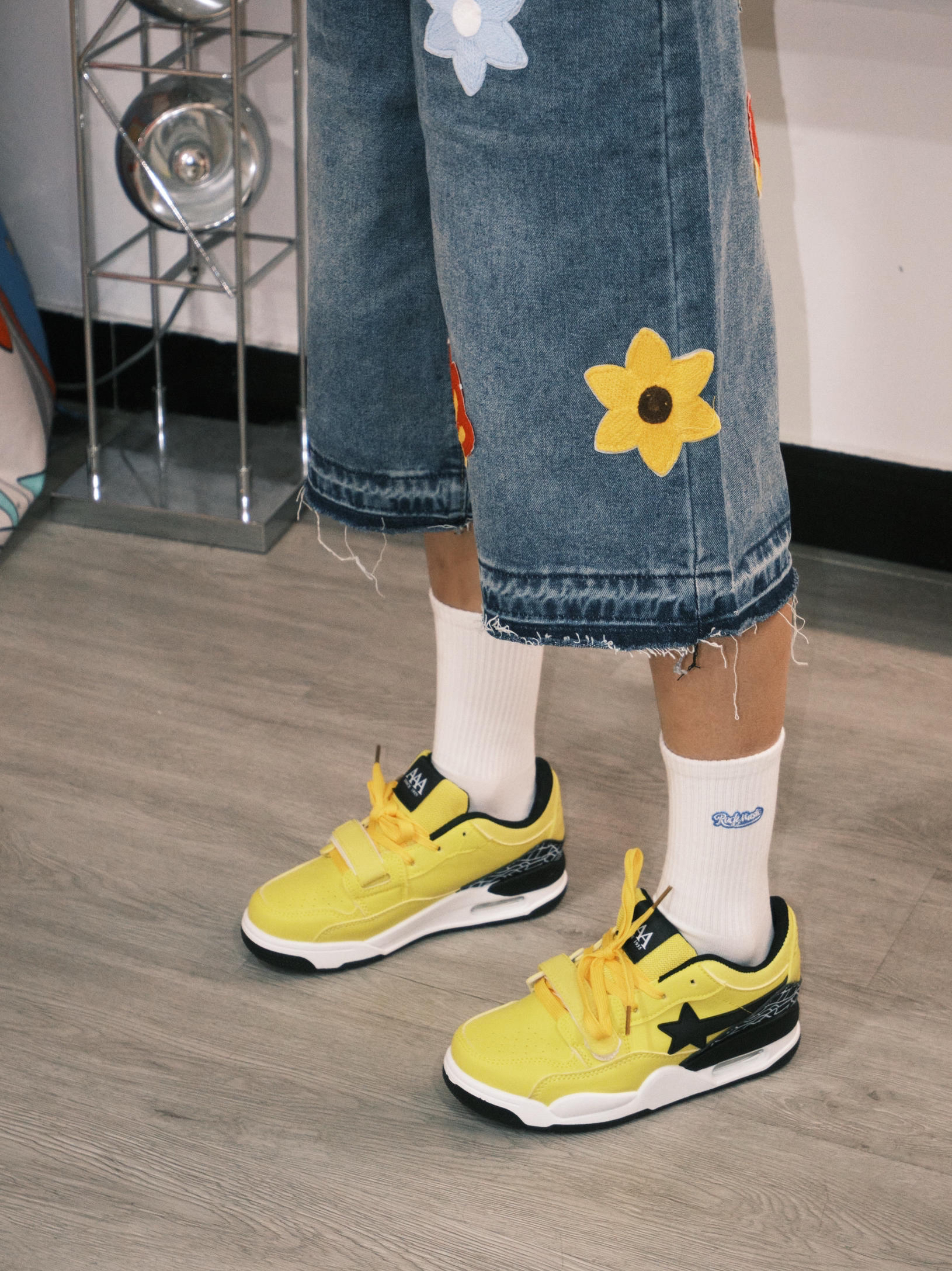 哈喽 欢迎来到哇哇哇穿搭分享频道! 172CM|55KG|👔:M L👖:m|👟:39码 ☀️日常户外通勤·懒人5分钟出门 白色设计感短袖+花花牛仔短裤+AAA星星鞋=万能公式! 浓浓的夏日配色超耐看👟 鞋底悄悄增高3cm 小个子也能轻松拉长比例~ 复古少年感拉满! 鞋子侧边的星星浮雕和夏天超配⭐️,防滑底暴走一整天也不累~