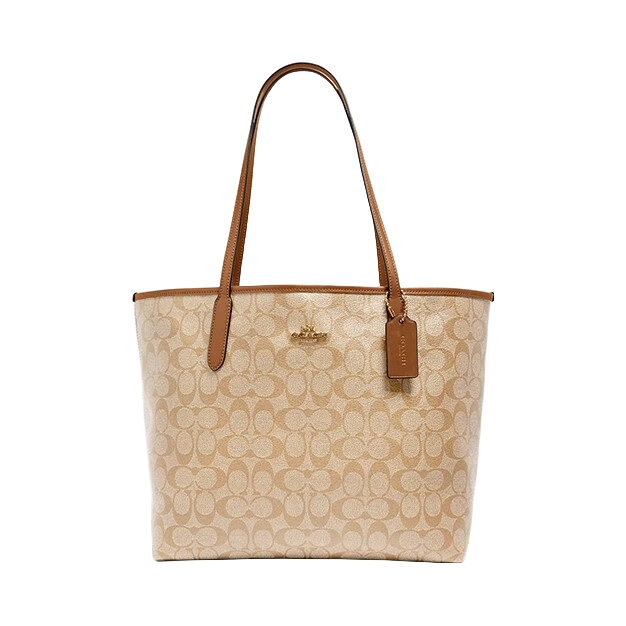 本篇笔记关联了Coach City Tote 33系列 大号 大容量PVC老花敞口撞色涂层帆布配皮按扣开合托特单肩手提包 浅卡其拼棕色等商品,为用户提供真实的使用体验和购买参考。
