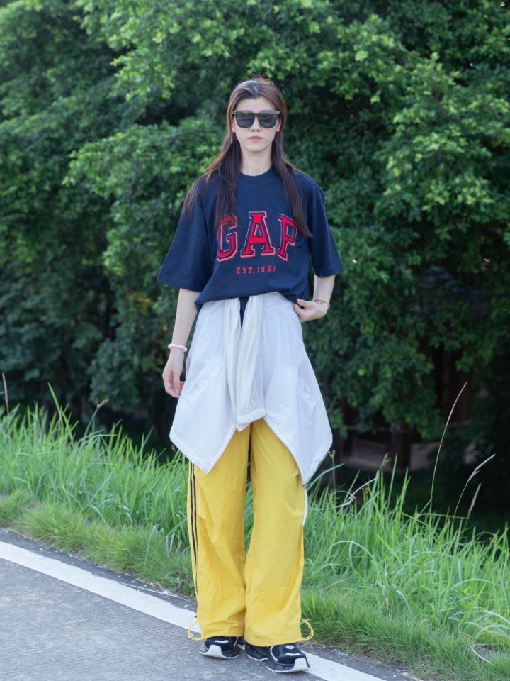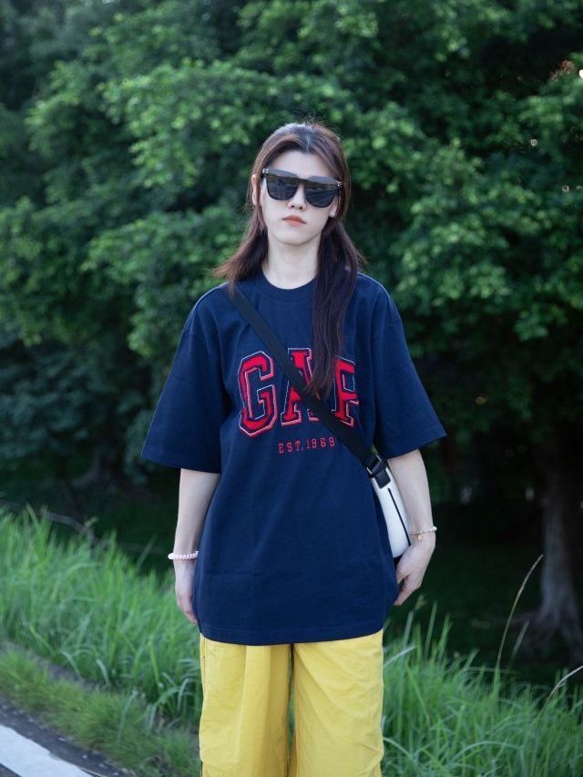 gap这件短袖配色好显白 我身高165cm体重50kg穿M 有点宽松 体型跟我差不多的宝宝们可以买小一个码数 超级复古 拍照嘎嘎出片 质量没话说,比我所有的短袖都厚实 下面可以搭配短裙短裤牛仔裤👖 简直无敌了宝宝,总之就是🐛 (图源网络侵删)