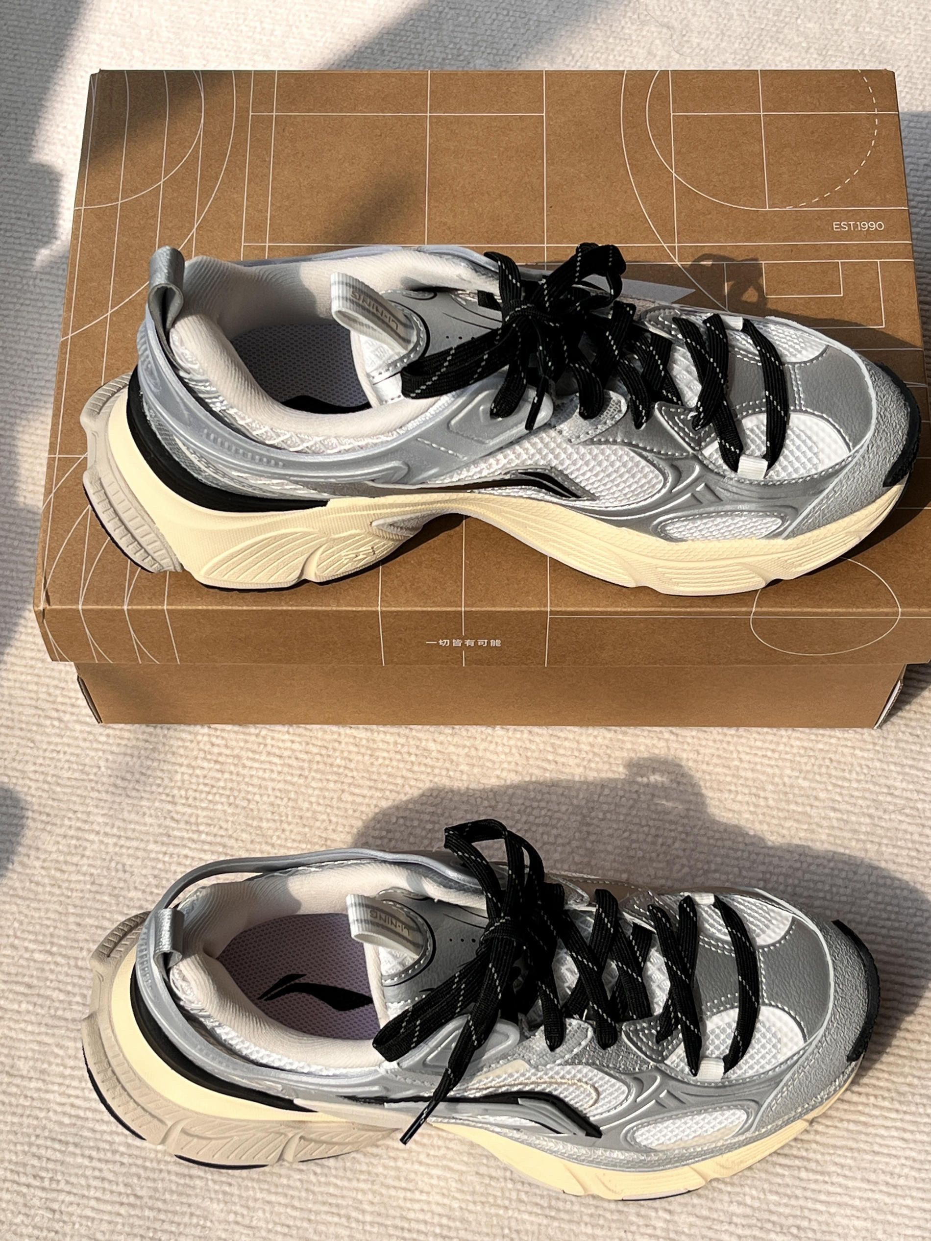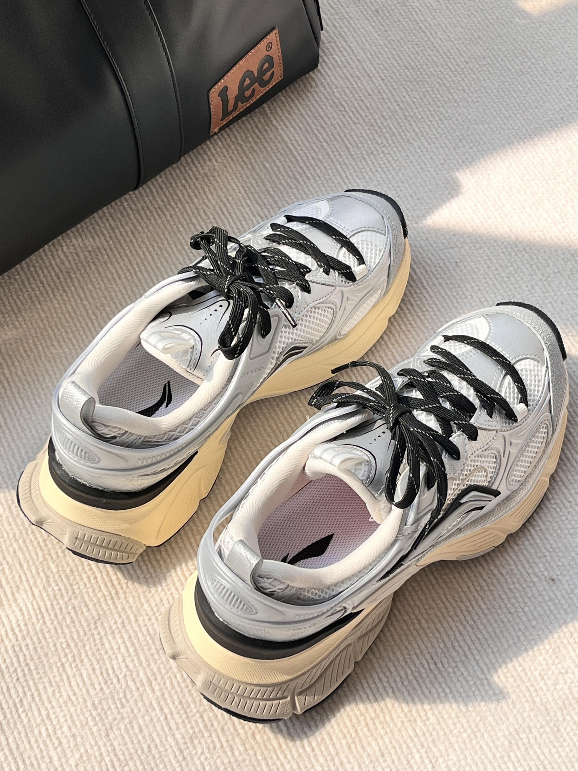 这双李宁星际老爹鞋 银灰配色高级又吸睛 走在路上简直自带反光效果 革料和网布拼接,既有质感又透气 大汗脚也能时刻保持清爽 中底足足5.5cm的增高,瞬间拉长腿部线条 小个子也能拥有大长腿既视感 而且防滑大底,应对多变天气超稳 尺码标准,跟脚不磨脚,真的太爱了!