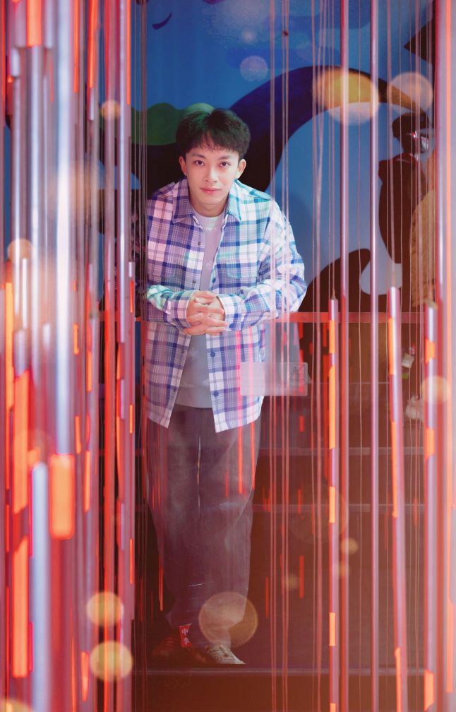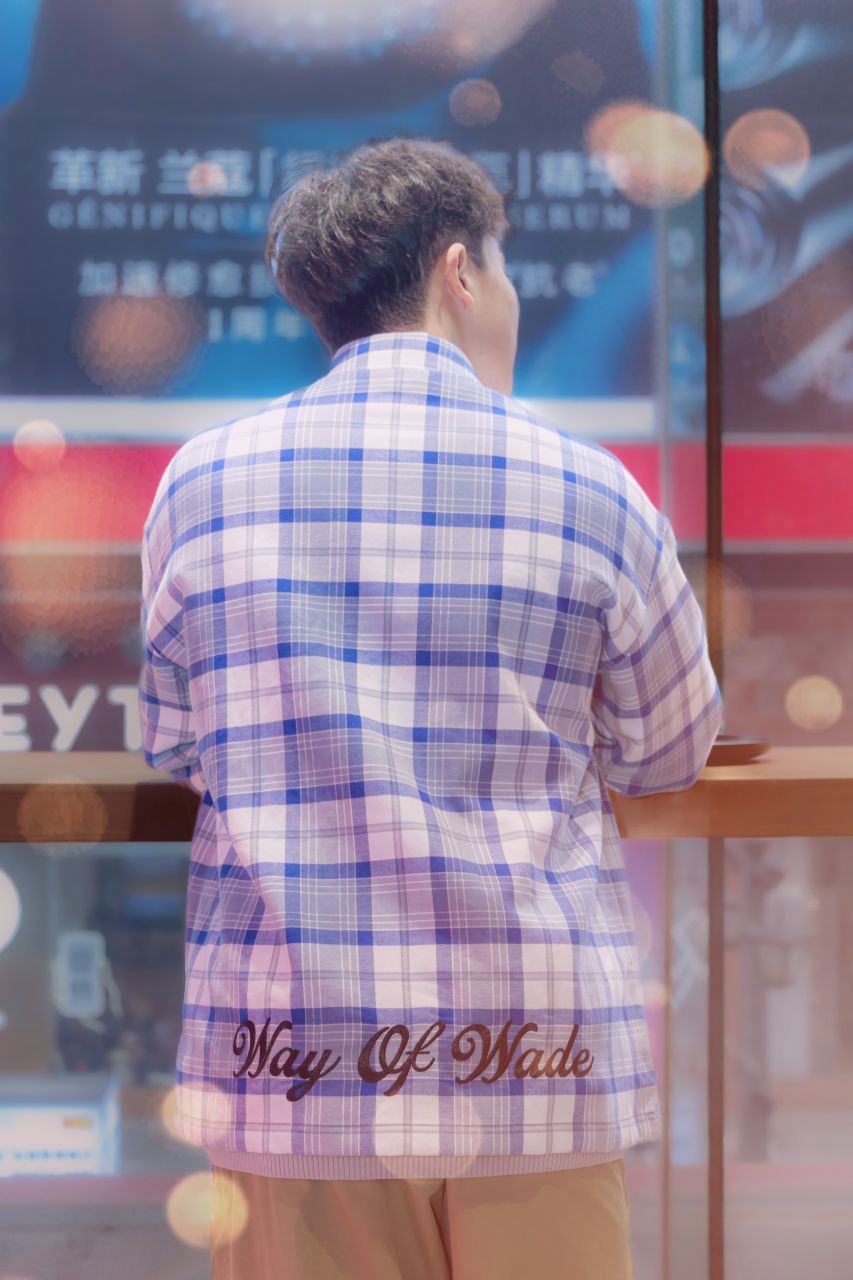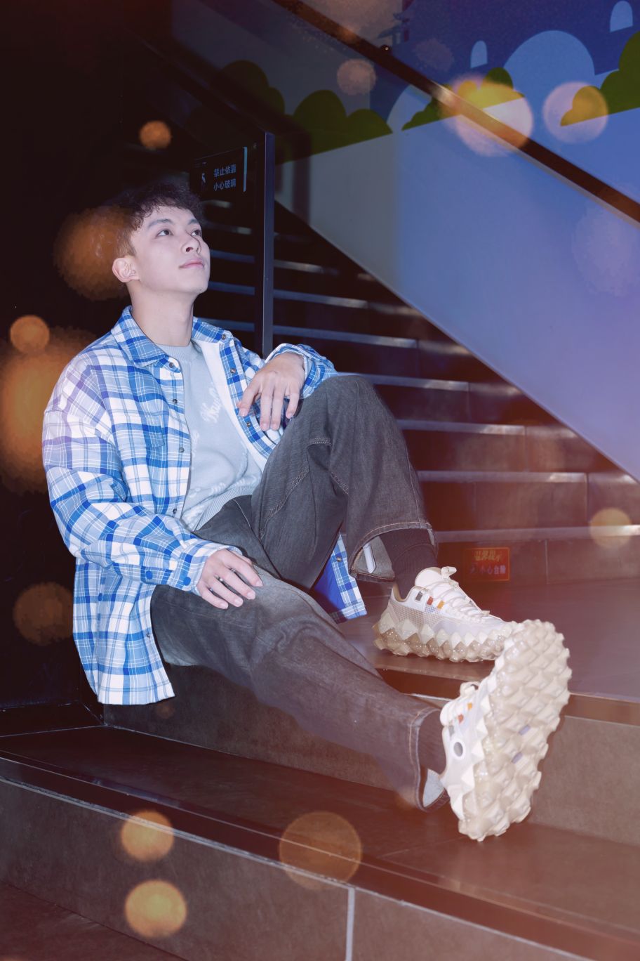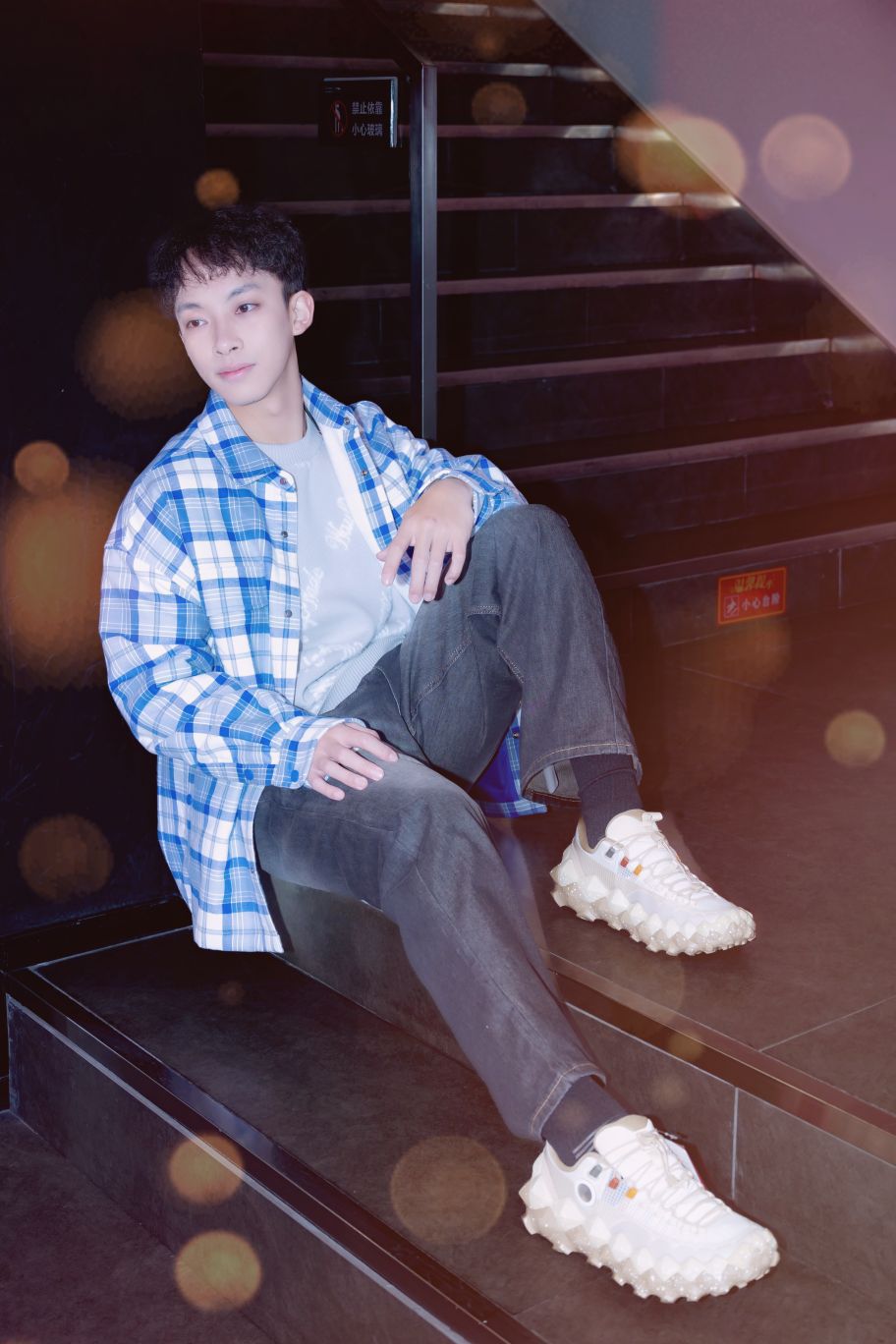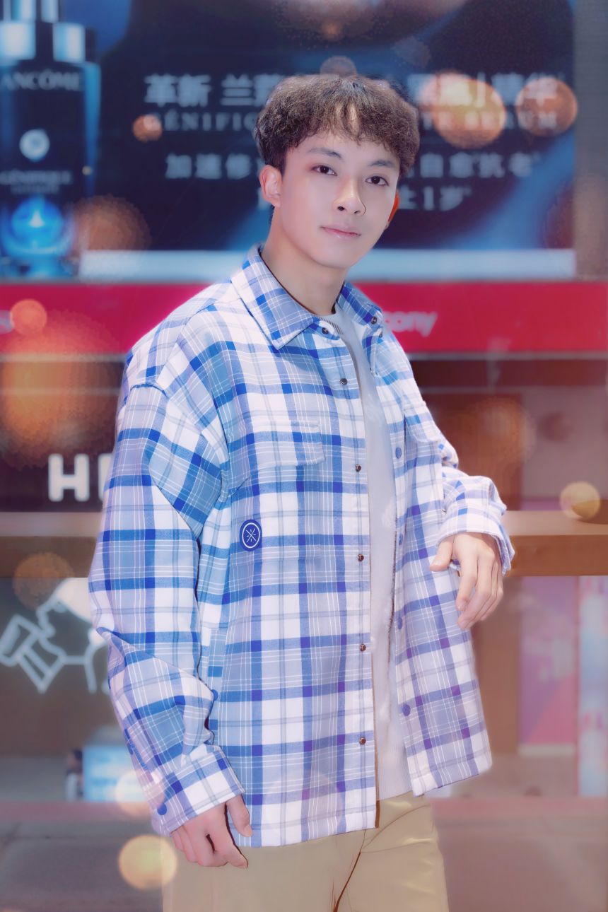 上身是蓝白格子衬衫搭配浅灰色内搭,层次感十足,格子元素经典且充满青春活力。下身选择深灰色水洗牛仔裤,简约百搭,贴合日常风格。脚上的白色厚底运动鞋,造型独特,为整体穿搭增添了潮流感 。