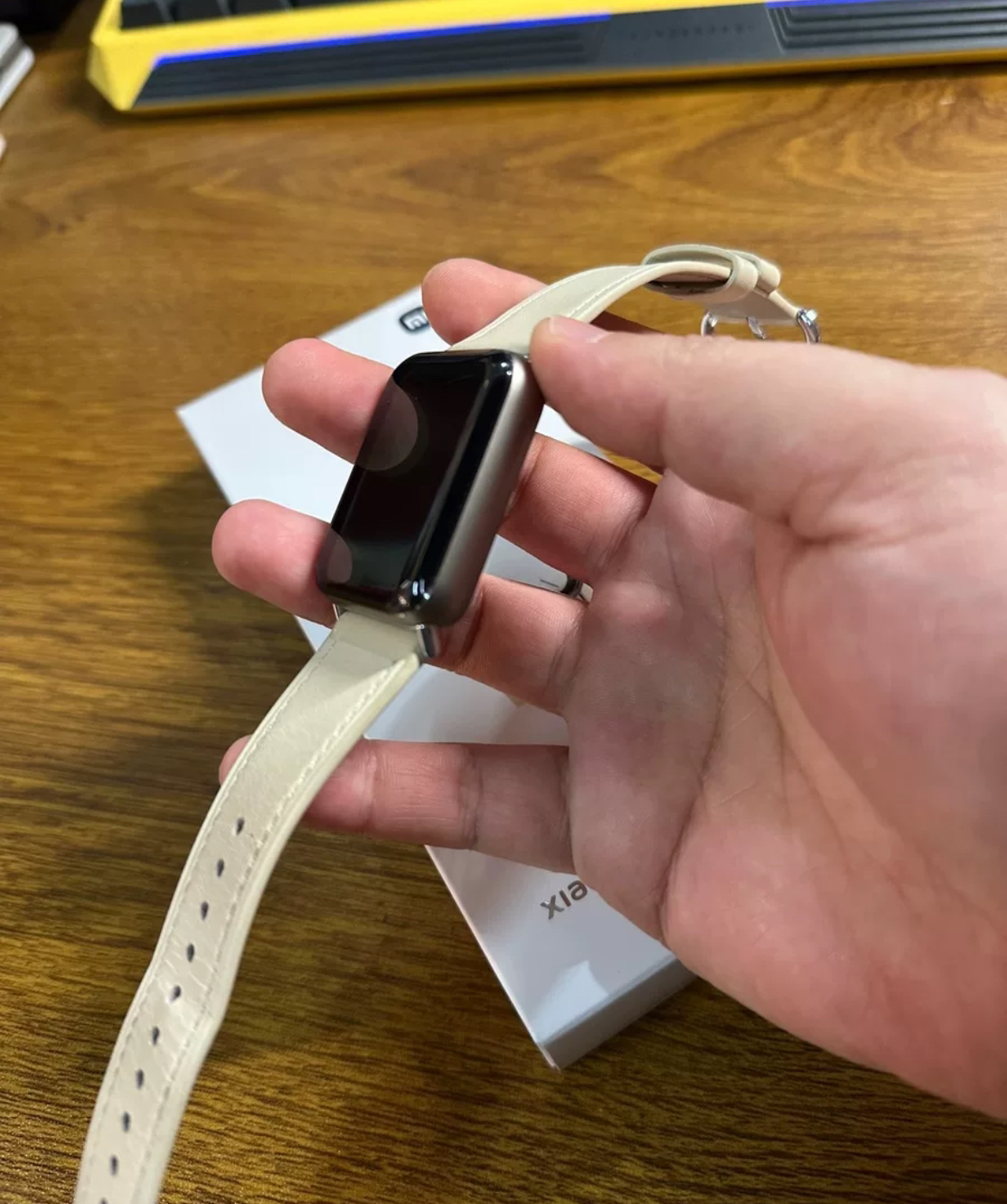 春日出门,想既有型又能随时掌握健康数据?小米手环9 Pro必须安排!简约方形的黑色机身,搭配温柔米色皮质表带,春日氛围感拉满,不管是甜美风还是休闲风穿搭都能适配。而且它功能超强大,运动监测、消息提醒等智能功能一个不少,让你在享受春日时光时,健康与时尚两不误!