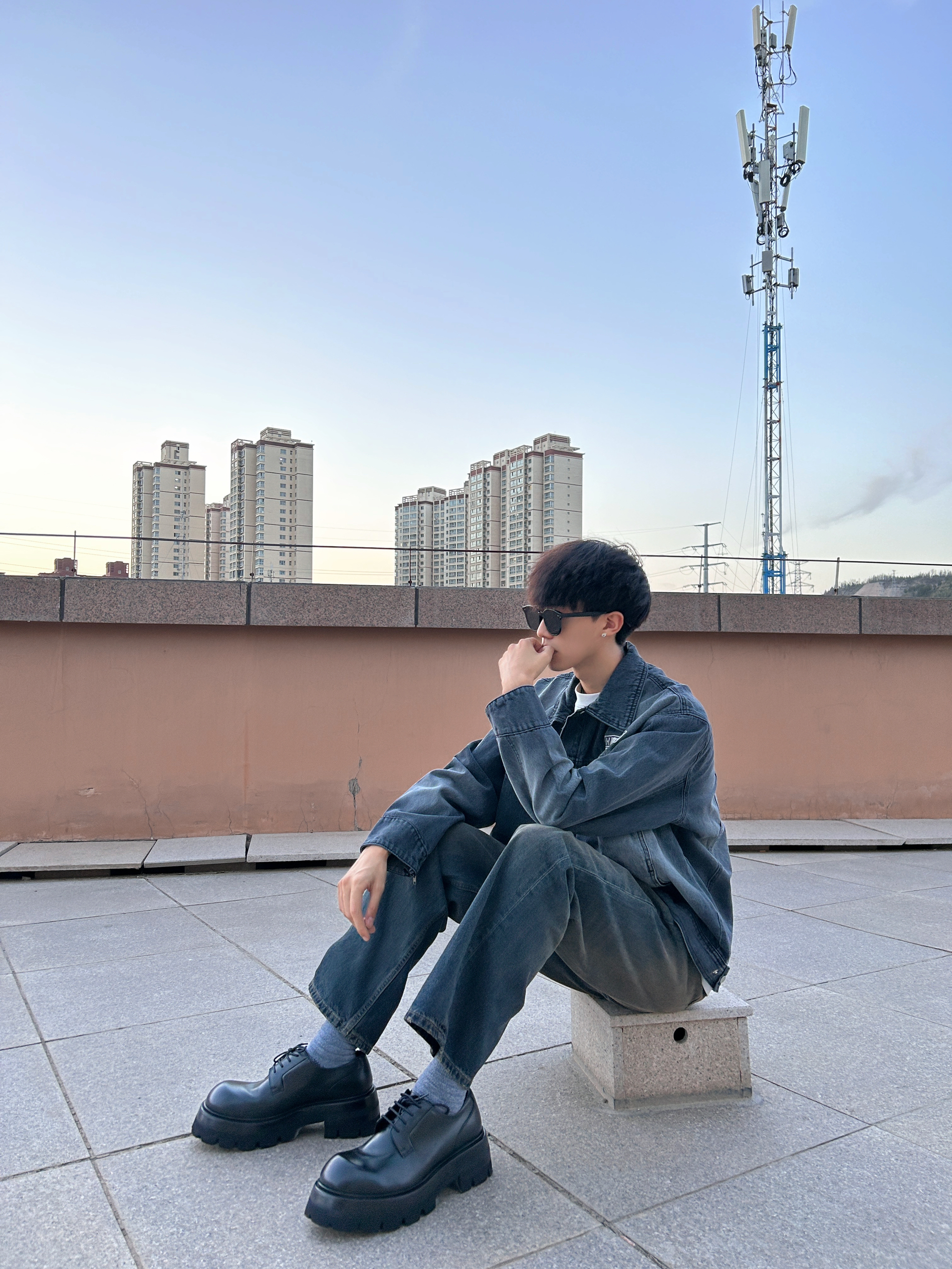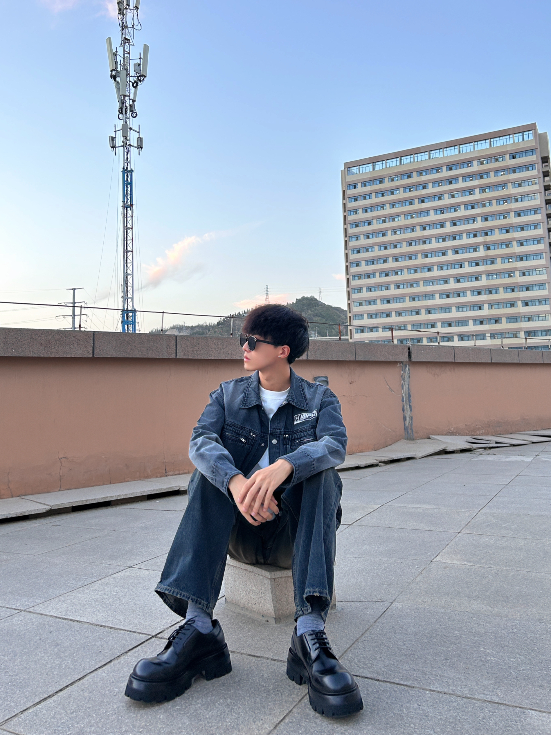 一身牛仔真的很有质感 来来去去总是卫衣短袖也不是事儿 来点不一样的穿搭 这样的一身穿搭当然也少不了德比鞋 即使是在户外这身也仍然可以很帅 就连太阳都自愧不如啦