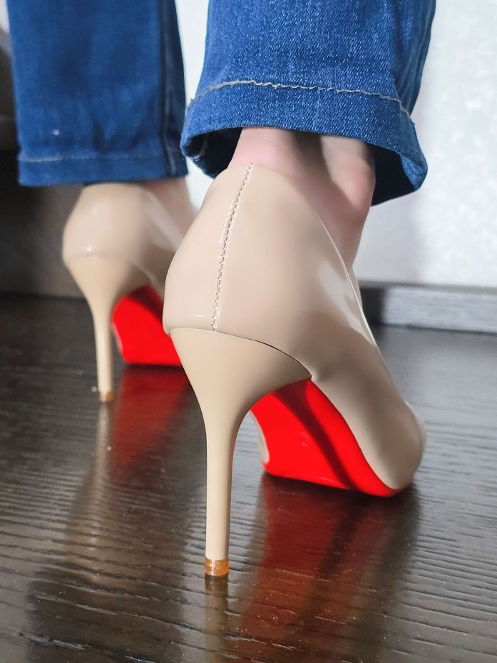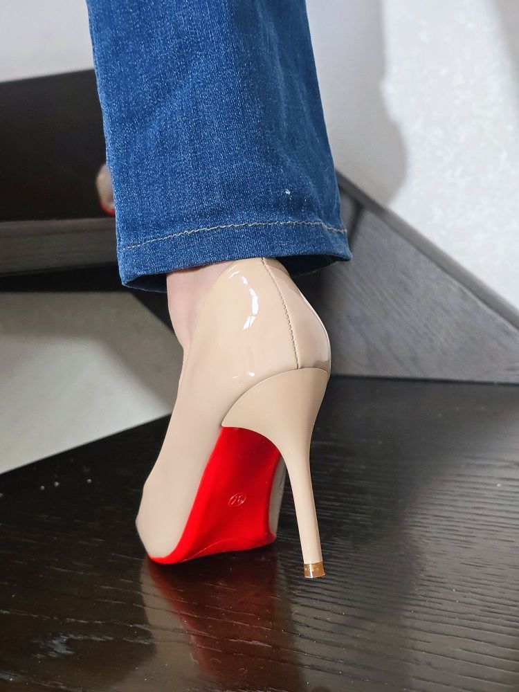 红底单鞋,我的职场通勤神器啊,哈哈!很温柔又很干练的感觉呀!7cm这个高度刚刚好,户外走路不难受哦!