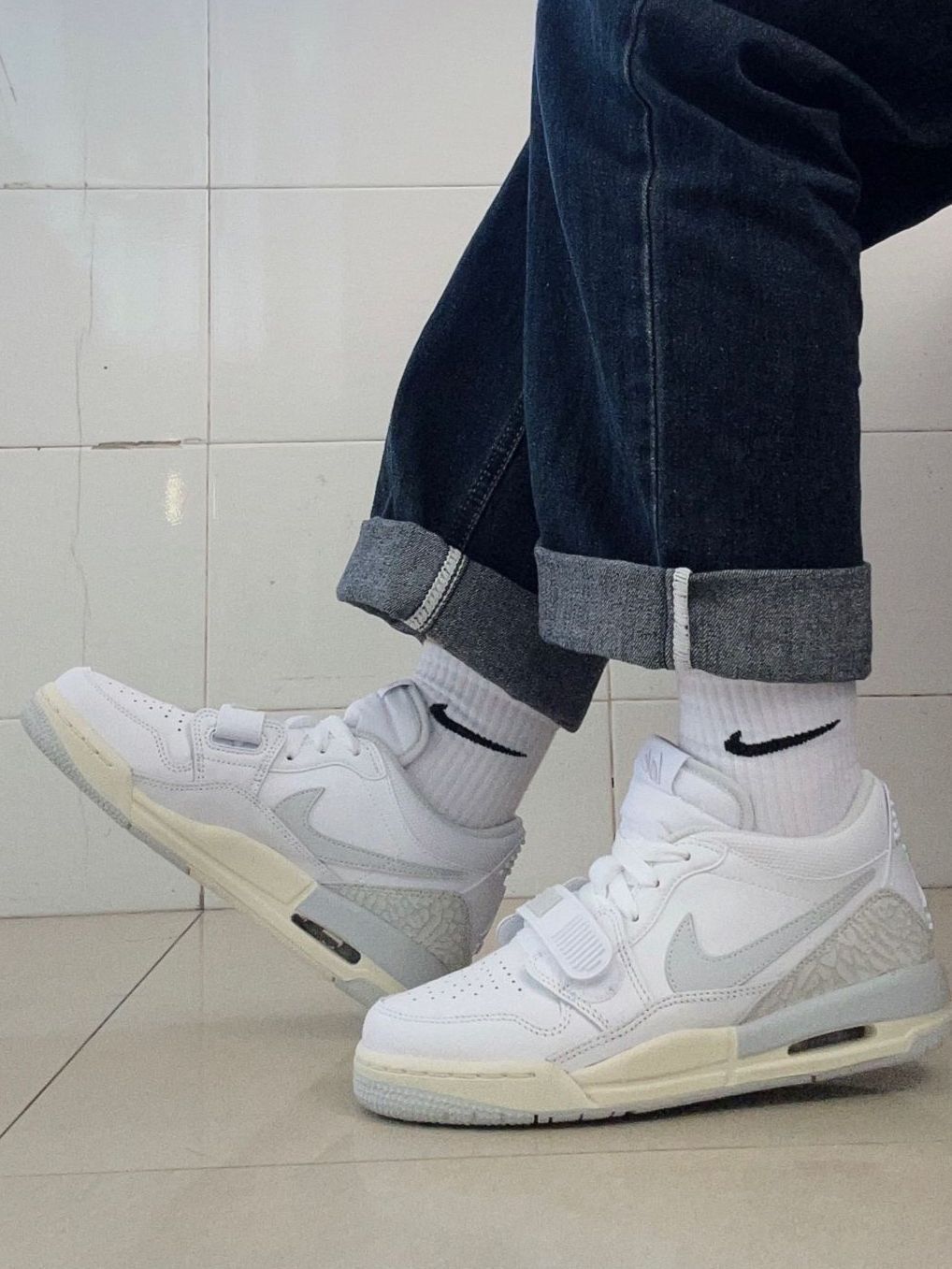 Jordan Legacy 312 Low 白银款真实测评 外观设计 Jordan Legacy 312 Low 白银款真的是低调又高级的存在!白色鞋身搭配银色飞人标志,简洁又不失质感,鞋身的爆裂纹和魔术贴设计更是点睛之笔,瞬间提升了整双鞋的时尚感。这种设计不仅向经典致敬,还赋予了鞋子独特的潮流感,无论是搭配休闲装还是运动装,都能轻松驾驭,妥妥的百搭神器! 🌟🌟🌟🌟🌟(满分5分) 舒适度...