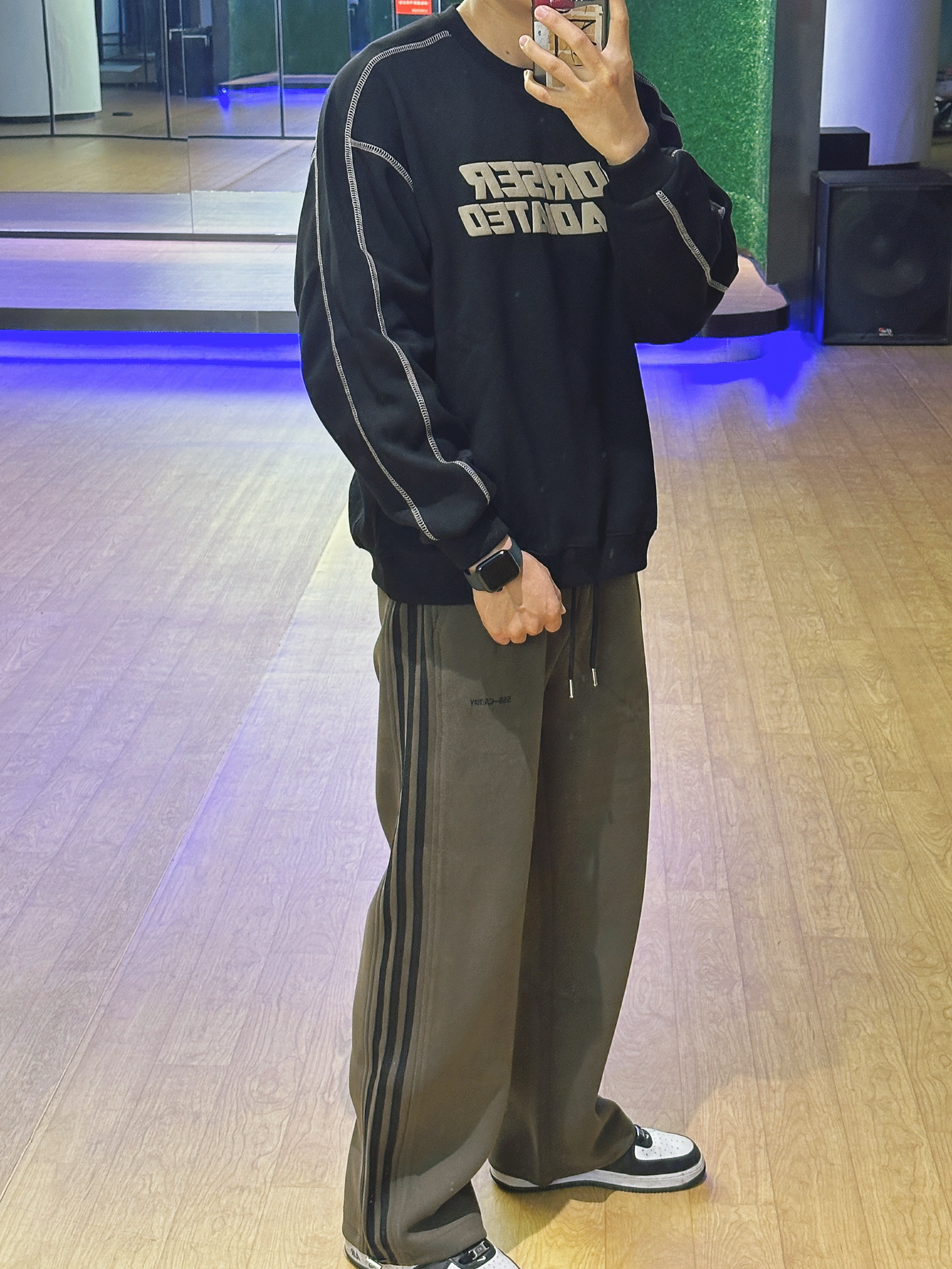 🎽上衣是黑色美式复古潮牌的新款长袖。圆领设计超百搭,不挑脸型还能弱化颈部线条,显得整个人利落又精神。宽松版型简直是慵懒感的神,随便一穿就自带松弛范,而且藏肉效果一流。面料亲肤,贴身穿超舒服,平时窝在图书馆学习一下午也不会觉得勒或难受,学习的幸福感直线上升! 👖搭配这条灰绿色美式直筒潮牌侧条纹运动休闲裤,真的太绝。灰绿色很特别,在一众基础色里脱颖而出,给整体造型增添了一抹亮色,又不会过于张扬,属于...