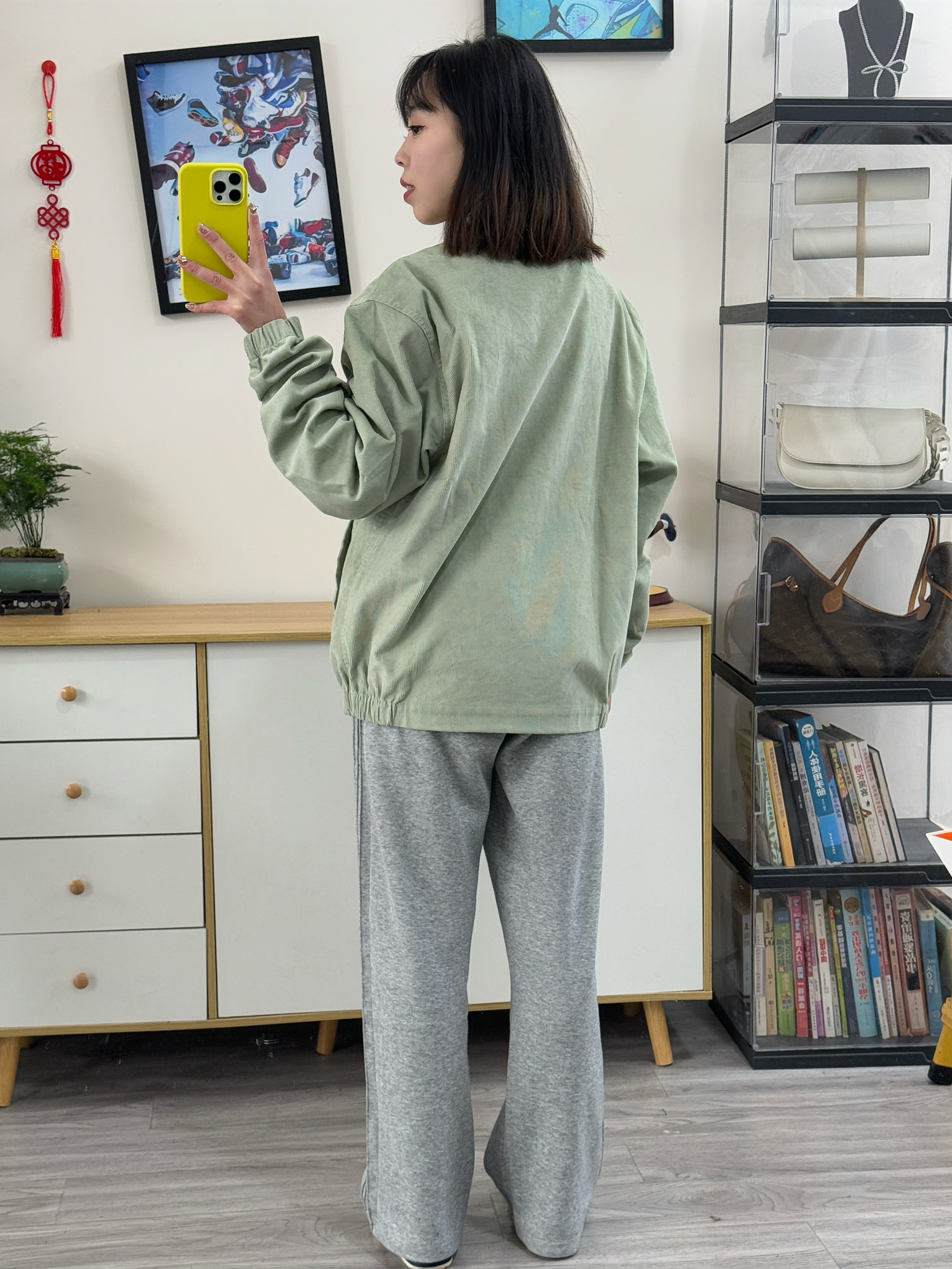 155,86斤穿的s码,男款合身版型,我穿这个码除了袖子长一些之外,其他的还是合适的,是我喜欢的那种宽松上身效果 厚薄度适中不是很厚,内里是单层的,适合春秋穿,里面还可以套卫衣穿,裤子我穿的是灰色卫裤,搭配浅浅的绿色也是有春天气息了,比较清爽的颜色